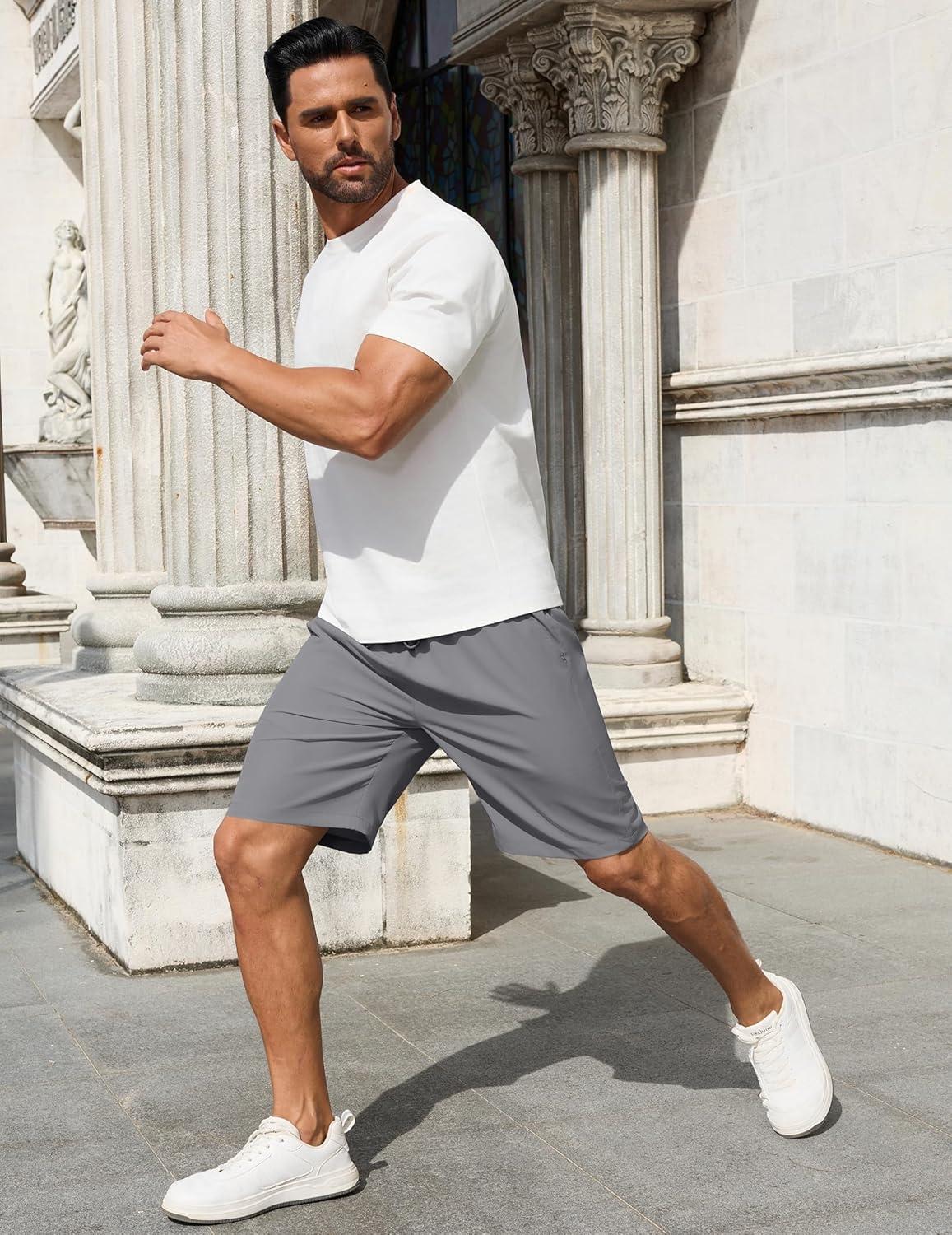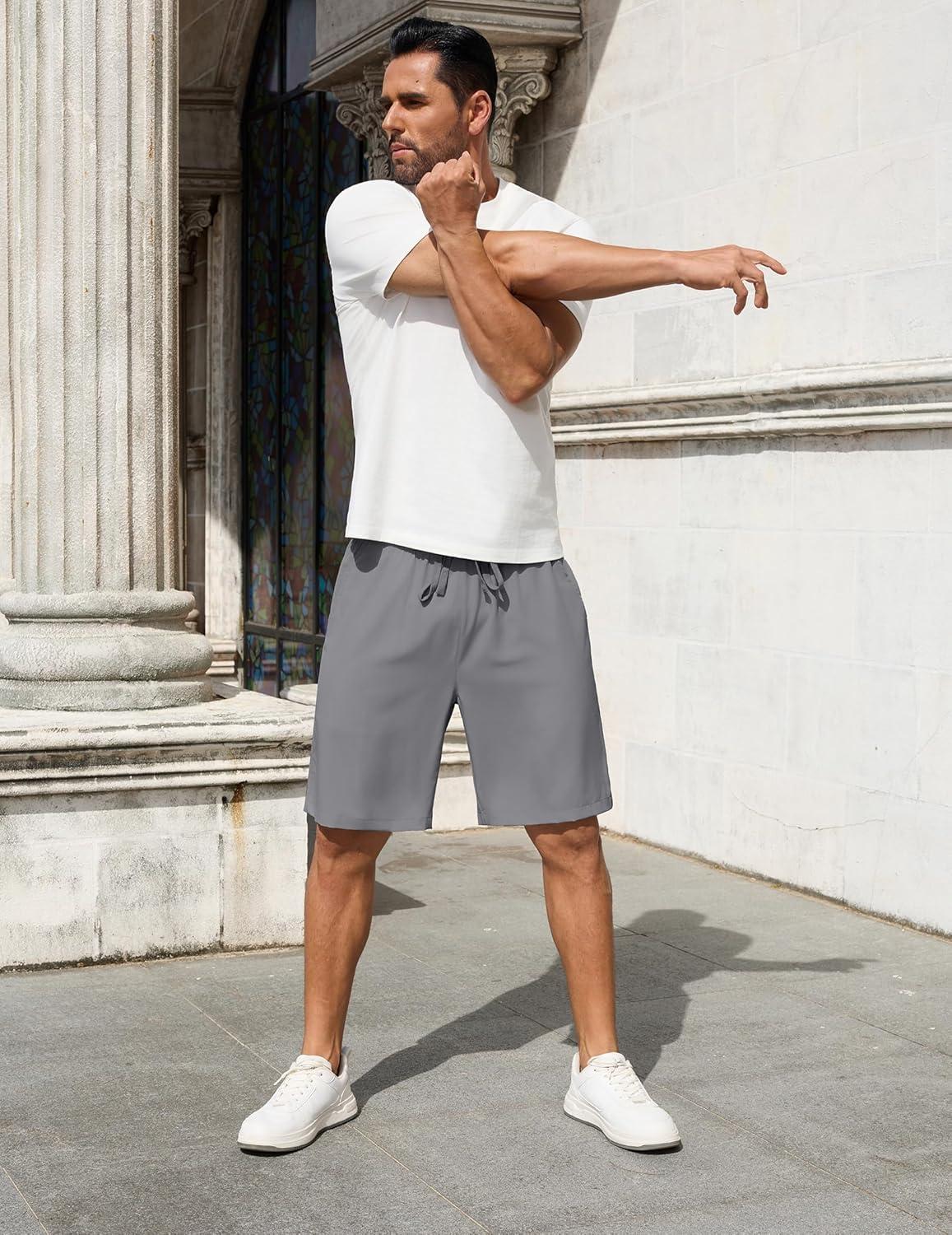 COOFANDY Men’s 2 Pack 9 inch Gym Workout Shorts Lightweight Casual Active Running Shorts with Pockets(Light Grey(1 Pack of 1))