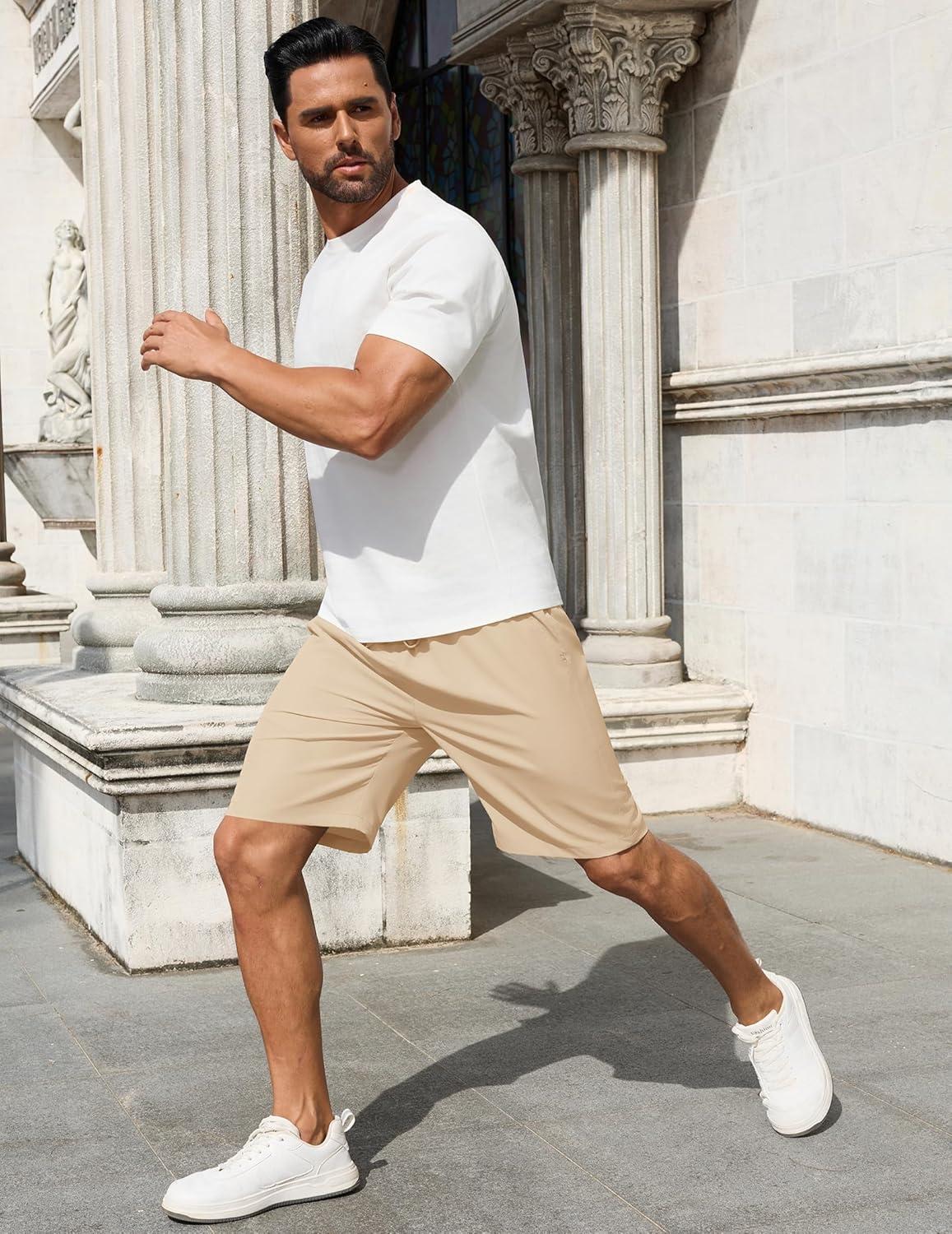 COOFANDY Men’s 7 inch Casual Shorts Drawstring Waist Lightweight Quick Dry Summer Beach Board Shorts with Pockets(Khaki)