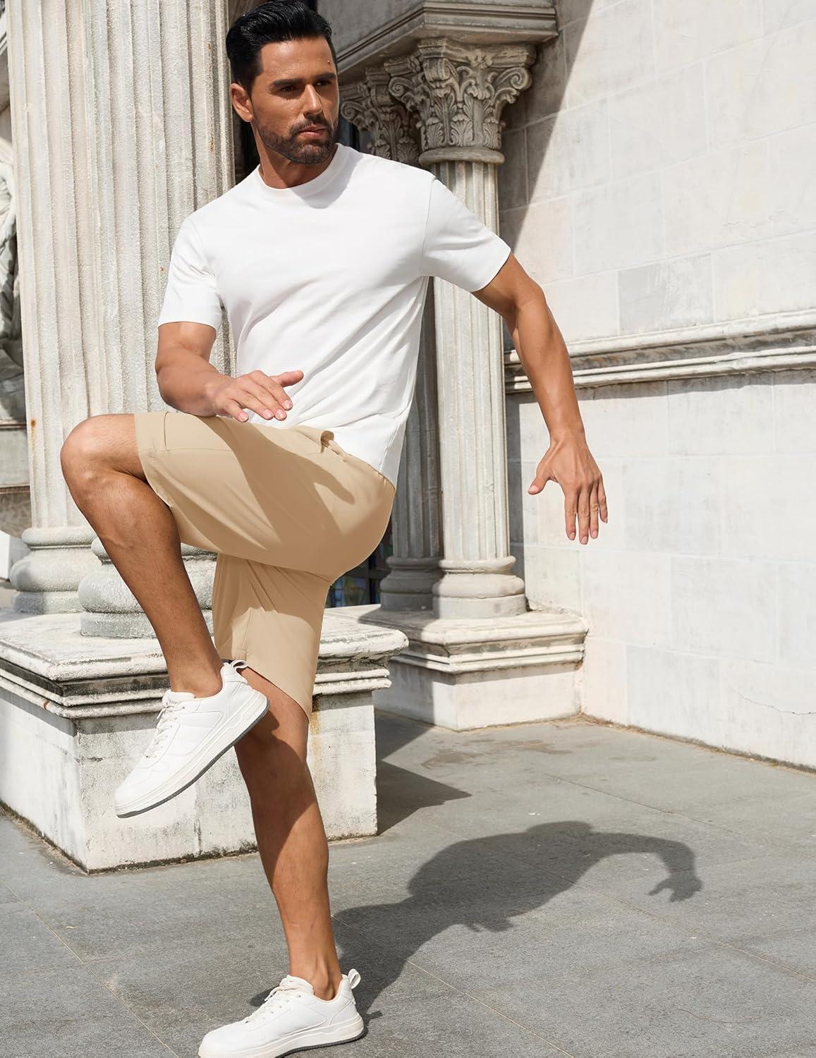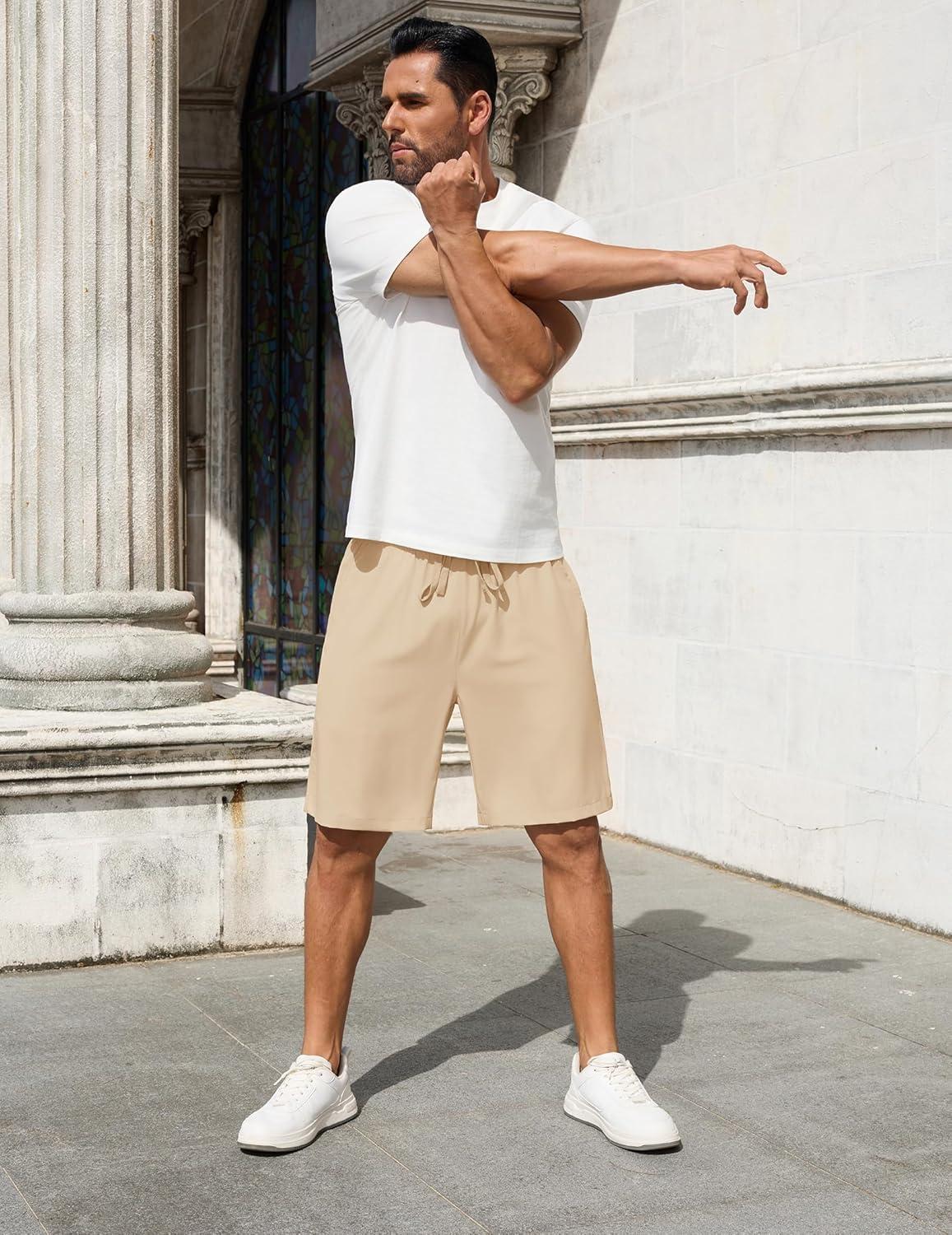 COOFANDY Men Casual Shorts Elastic Waist Drawstring Shorts Stretch Summer Beach Shorts with Pockets(Light Khaki)