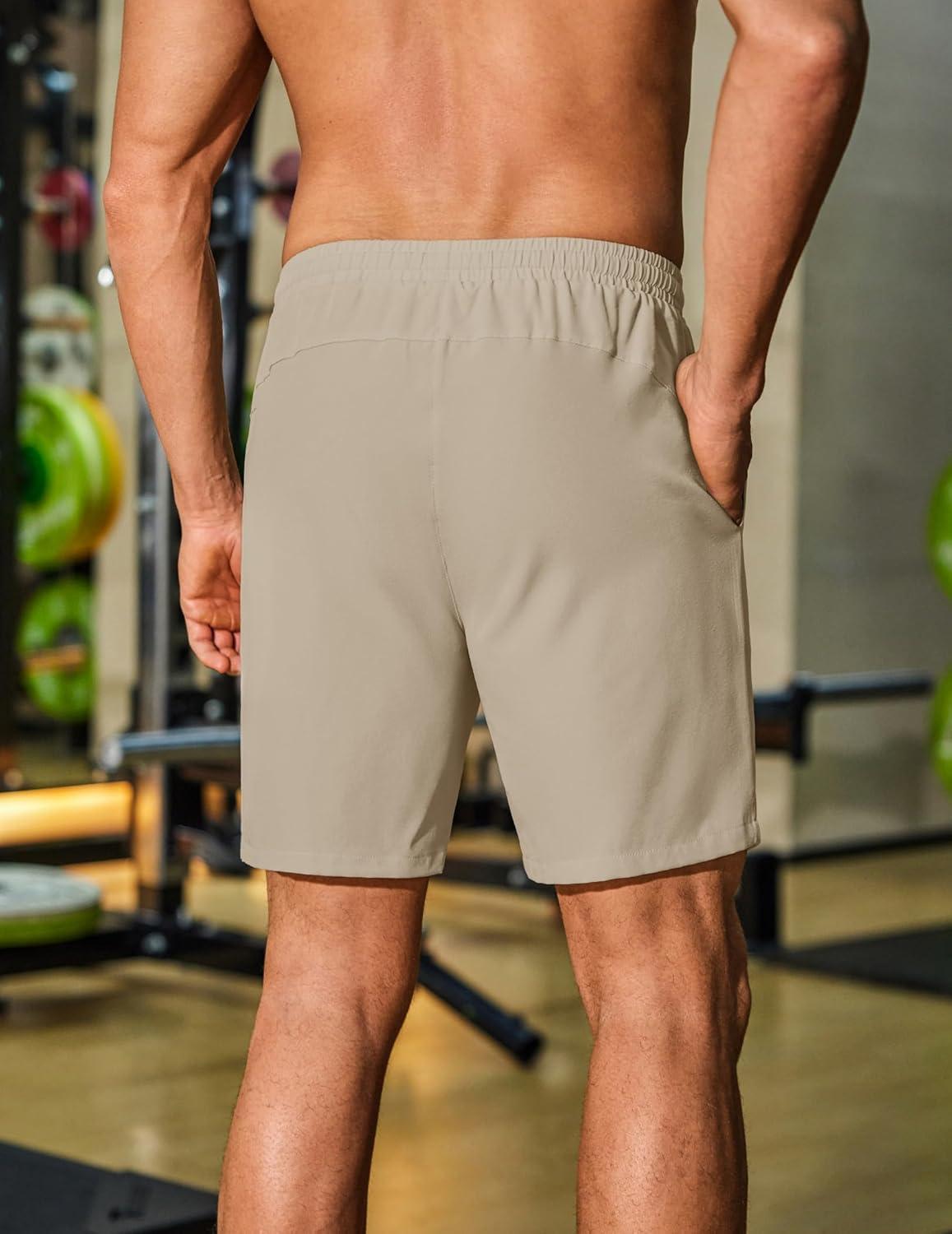 COOFANDY Men’s Gym Workout Shorts 8 Inch Quick Dry Athletic Shorts Lightweight Drawstring Running Shorts(Khaki)