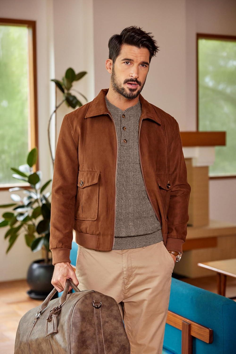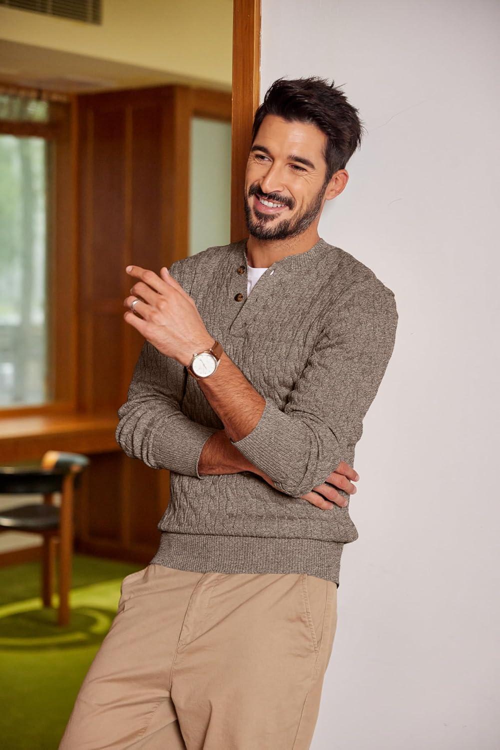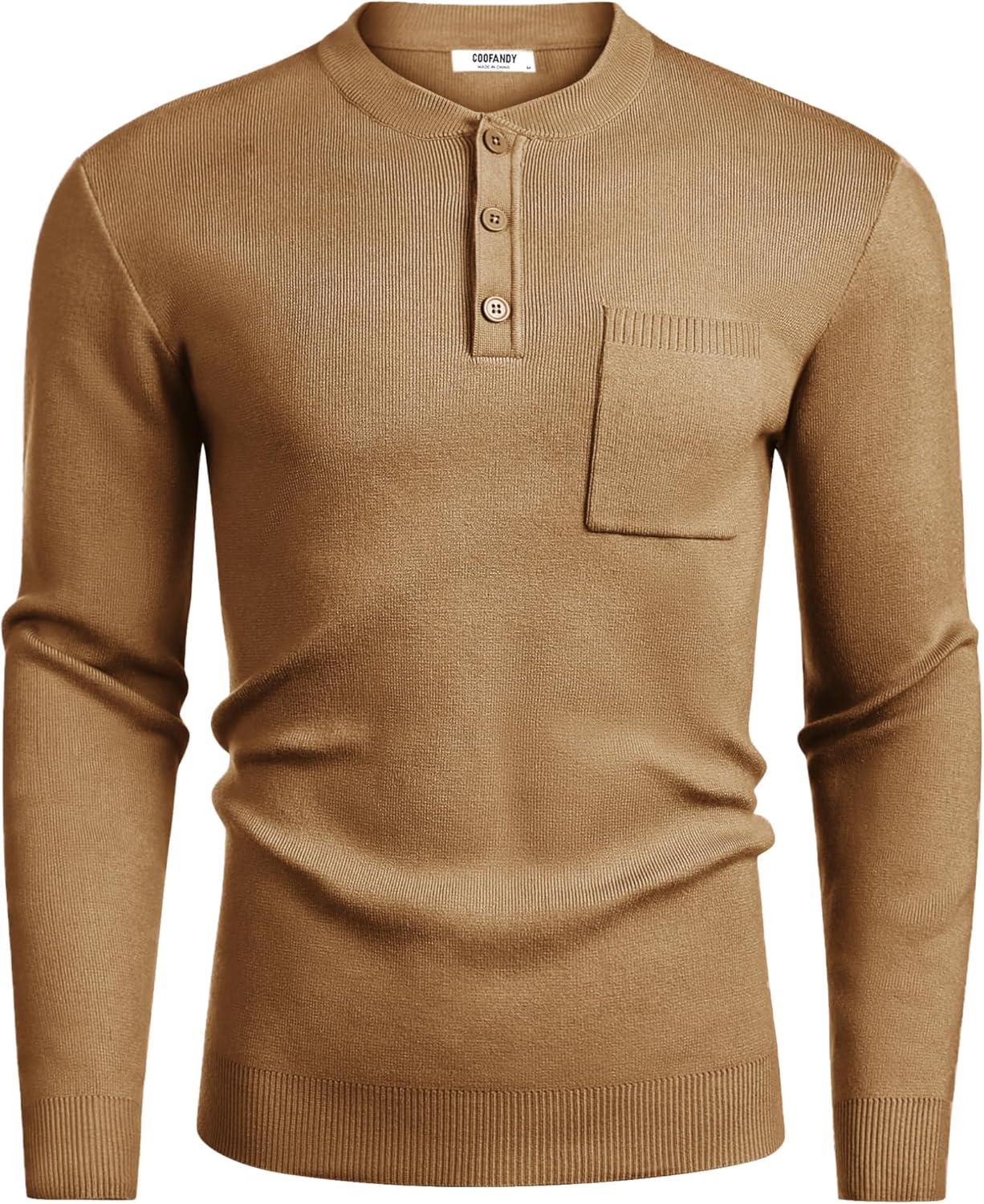 COOFANDY Men’s Henley Knit Sweater Long Sleeve Mid-Weight Soft Pullover Shirt with Chest Pocket(Light Brown)