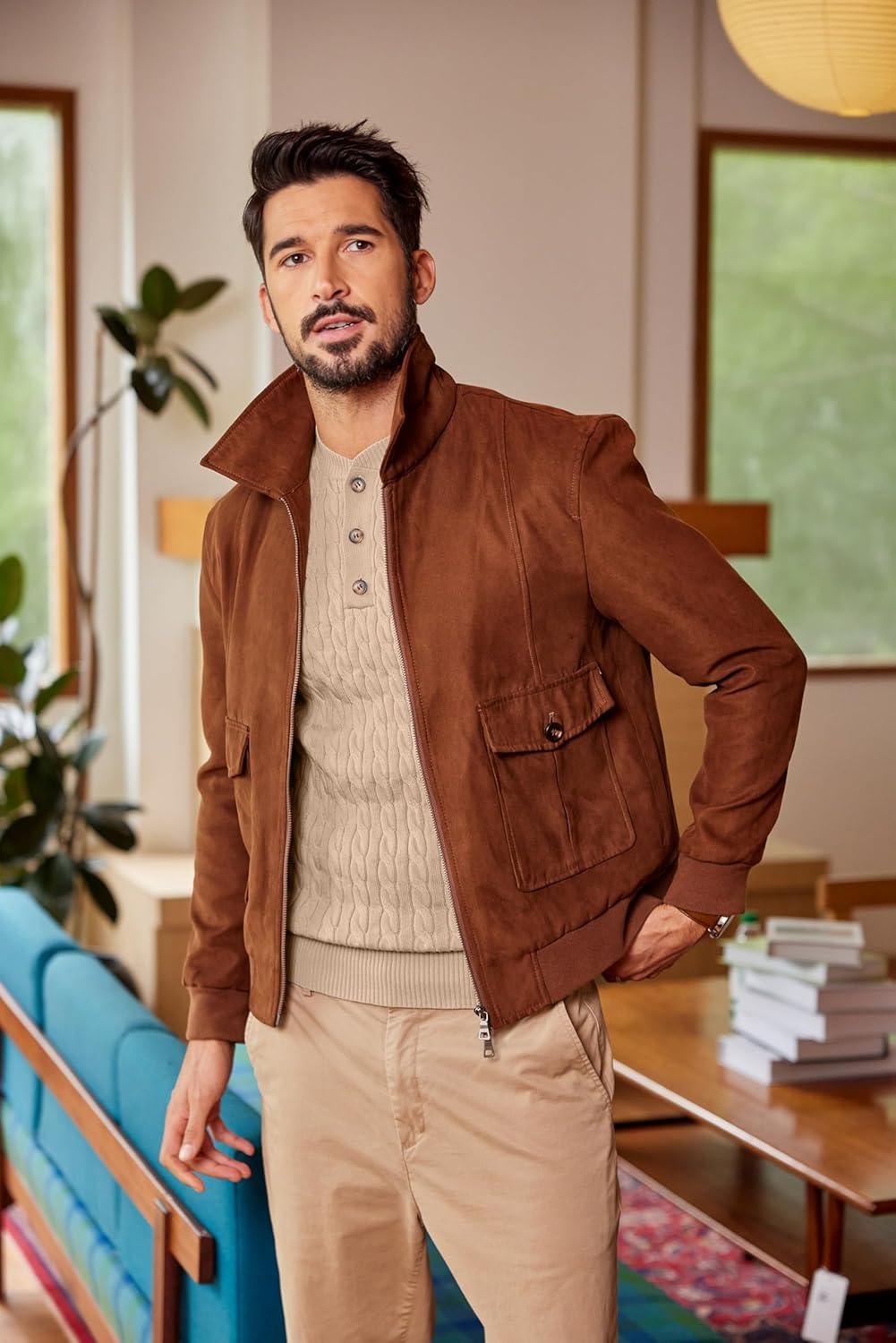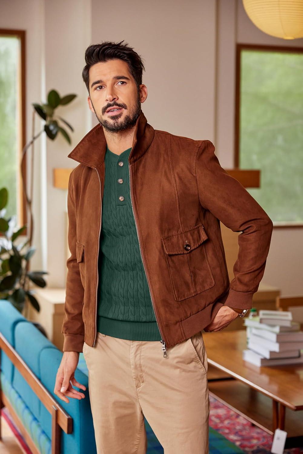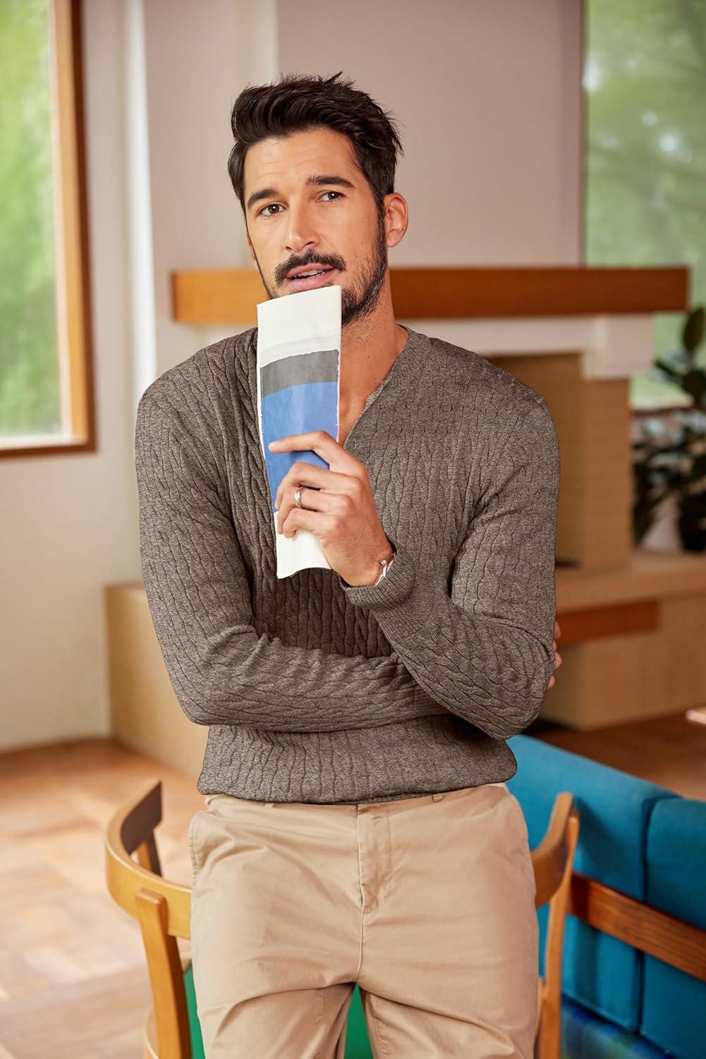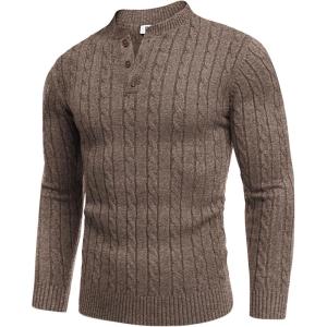 COOFANDY Men’s Henley Knit Sweater Long Sleeve Mid-Weight Soft Pullover Shirt with Chest Pocket(Brown and White)
