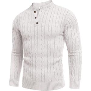 COOFANDY Men’s Henley Knit Sweater Long Sleeve Mid-Weight Soft Pullover Shirt with Chest Pocket(White)