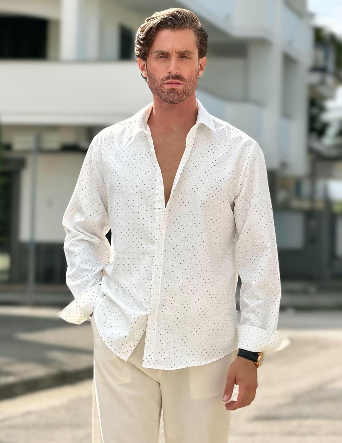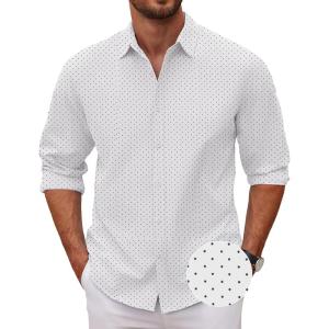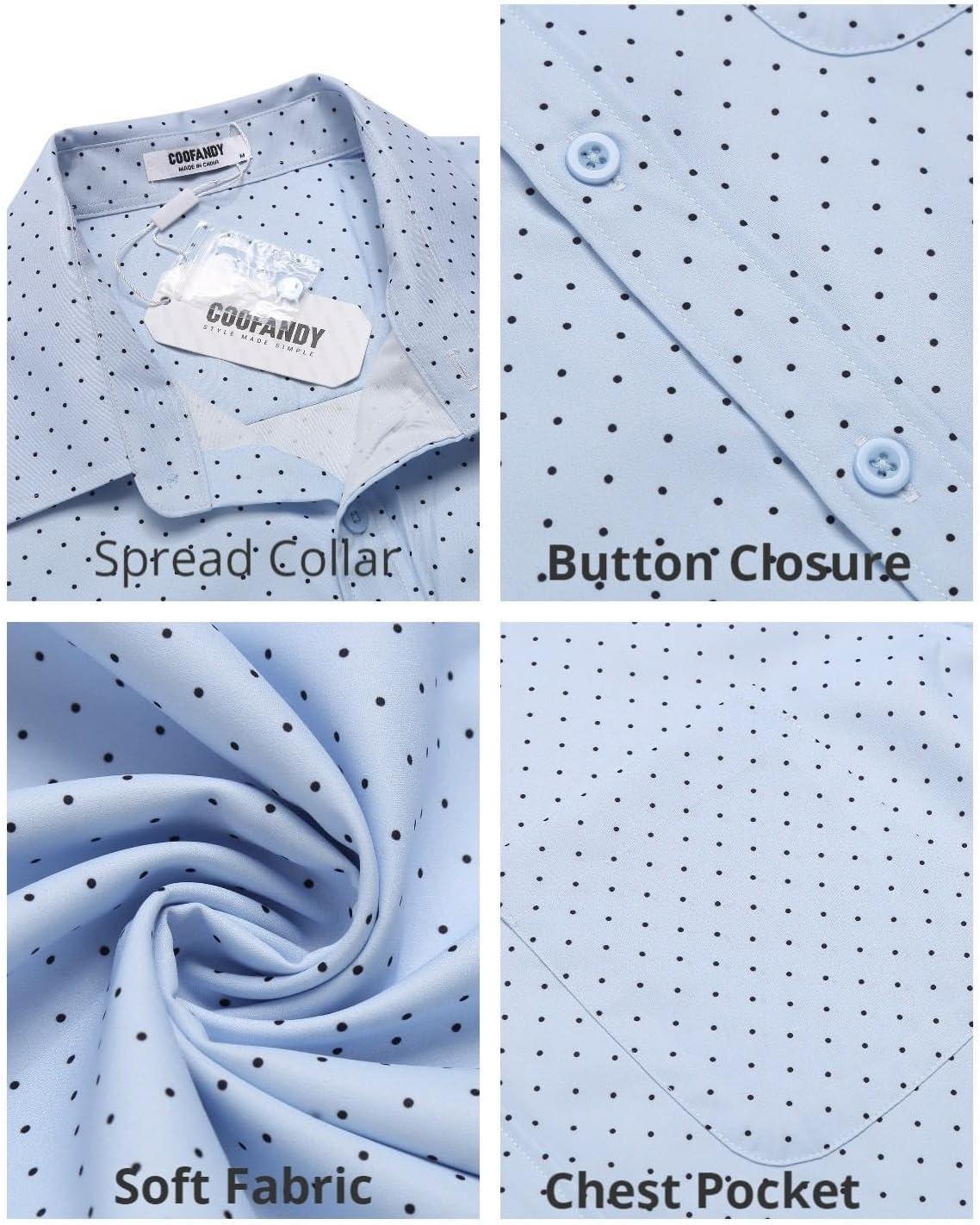 COOFANDY Men’s Long Sleeve Dress Shirt Casual Button Down Shirts Wrinkle Free Untucked Shirt(Printed-white Dots)