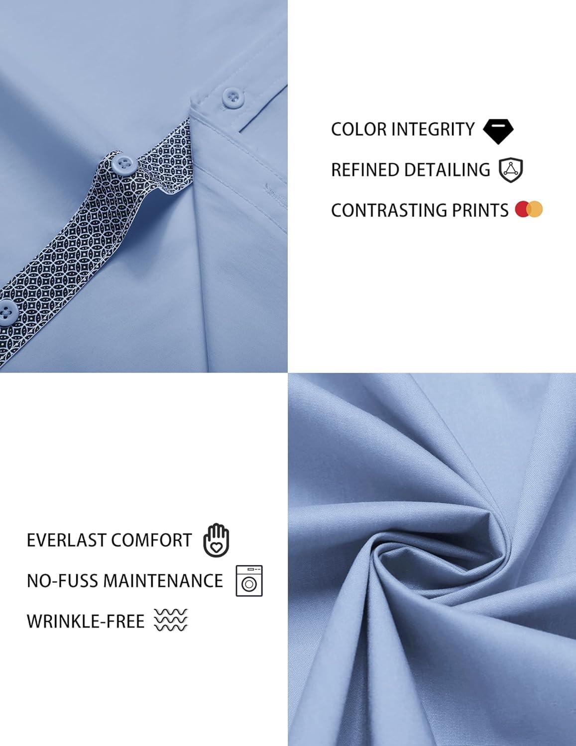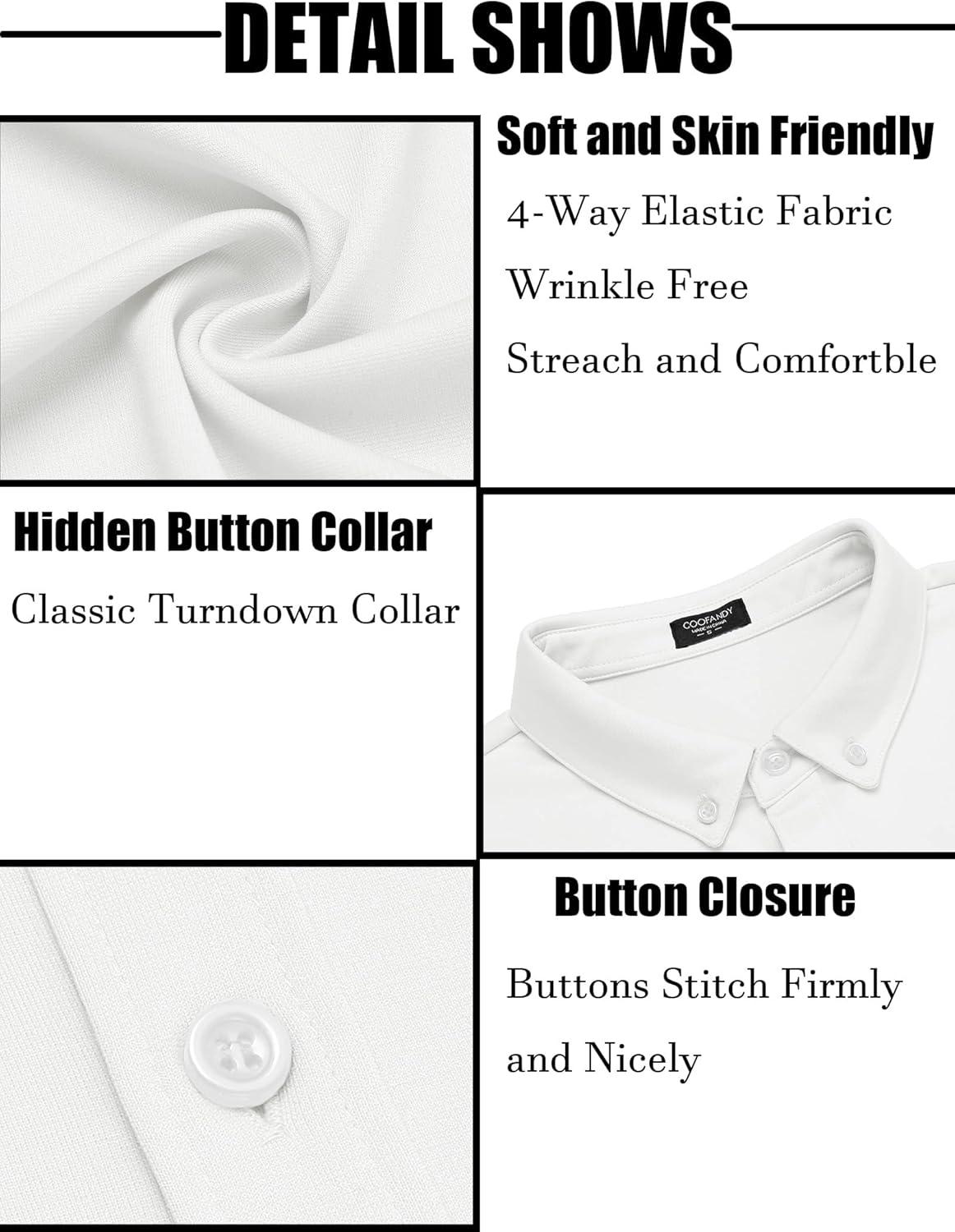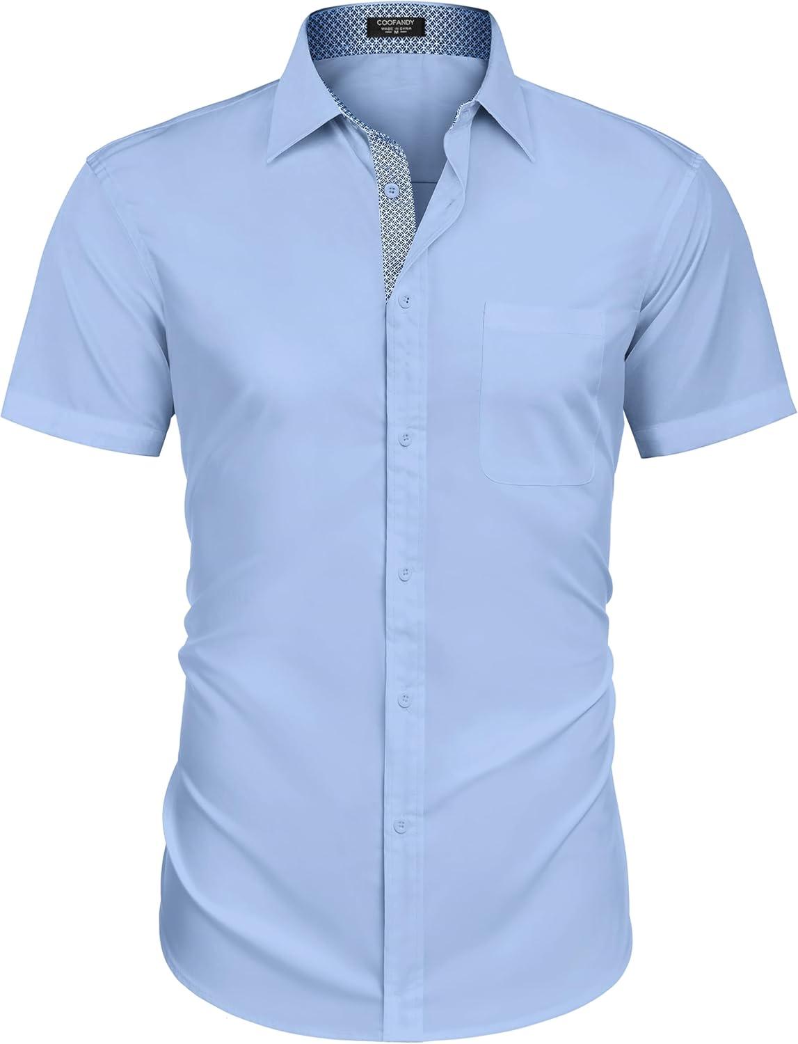COOFANDY Men’s Muscle Fit Dress Shirts Wrinkle-Free Short Sleeve Casual Button Down Shirt(Angel Falls)
