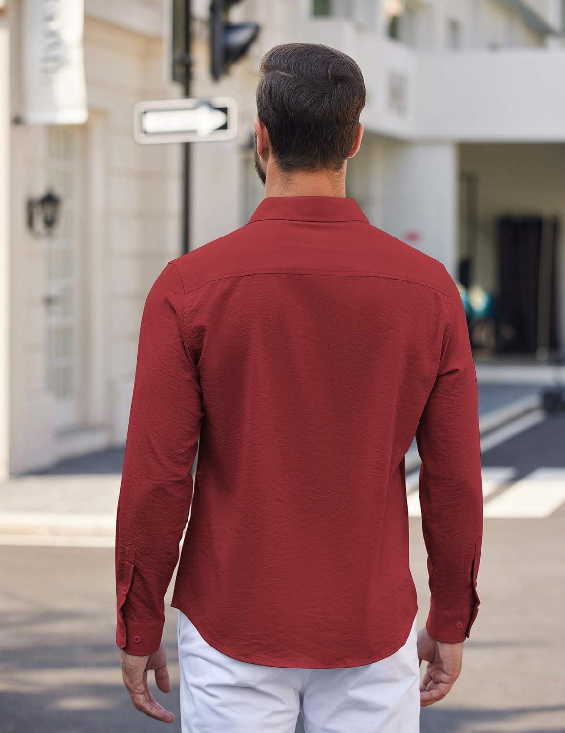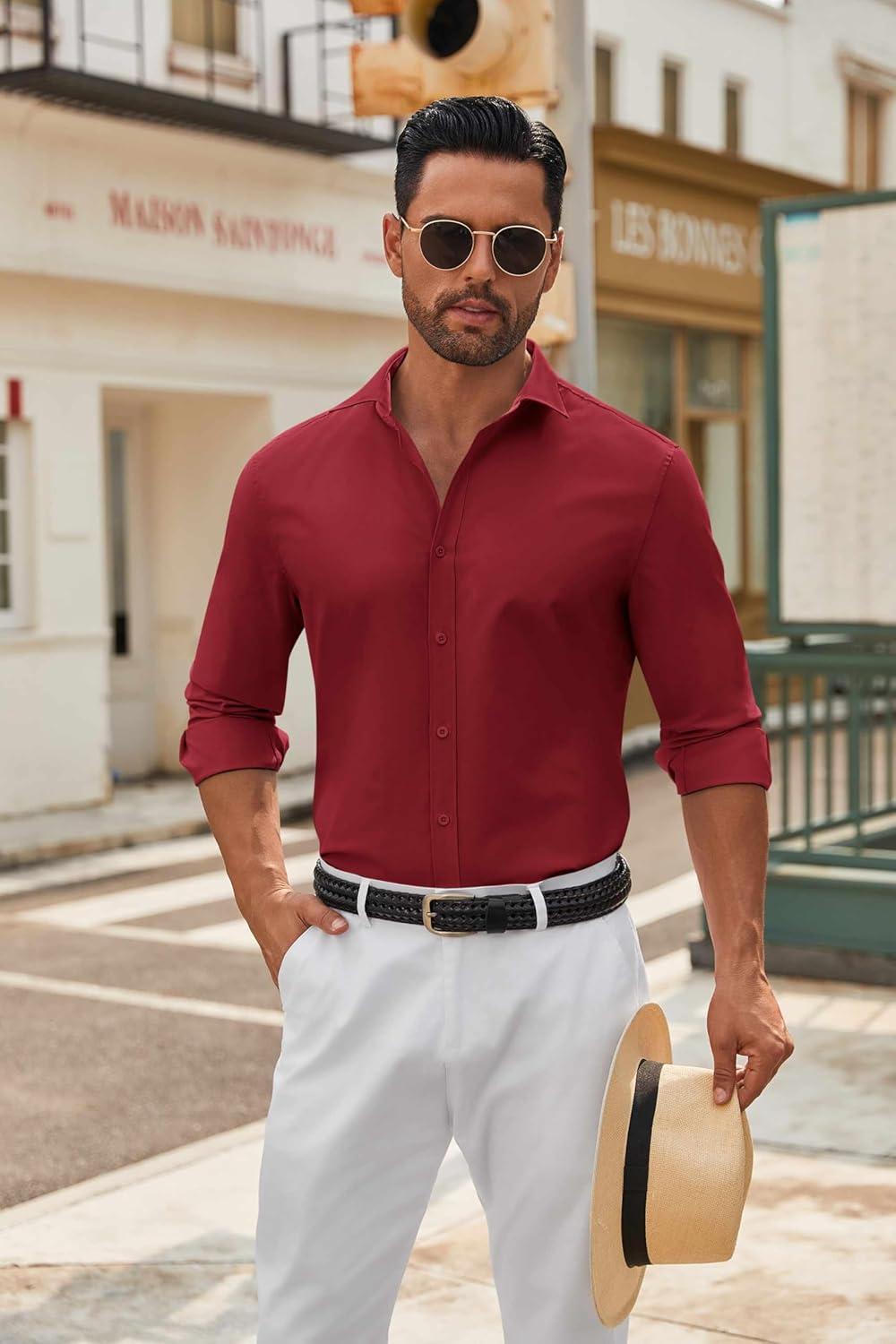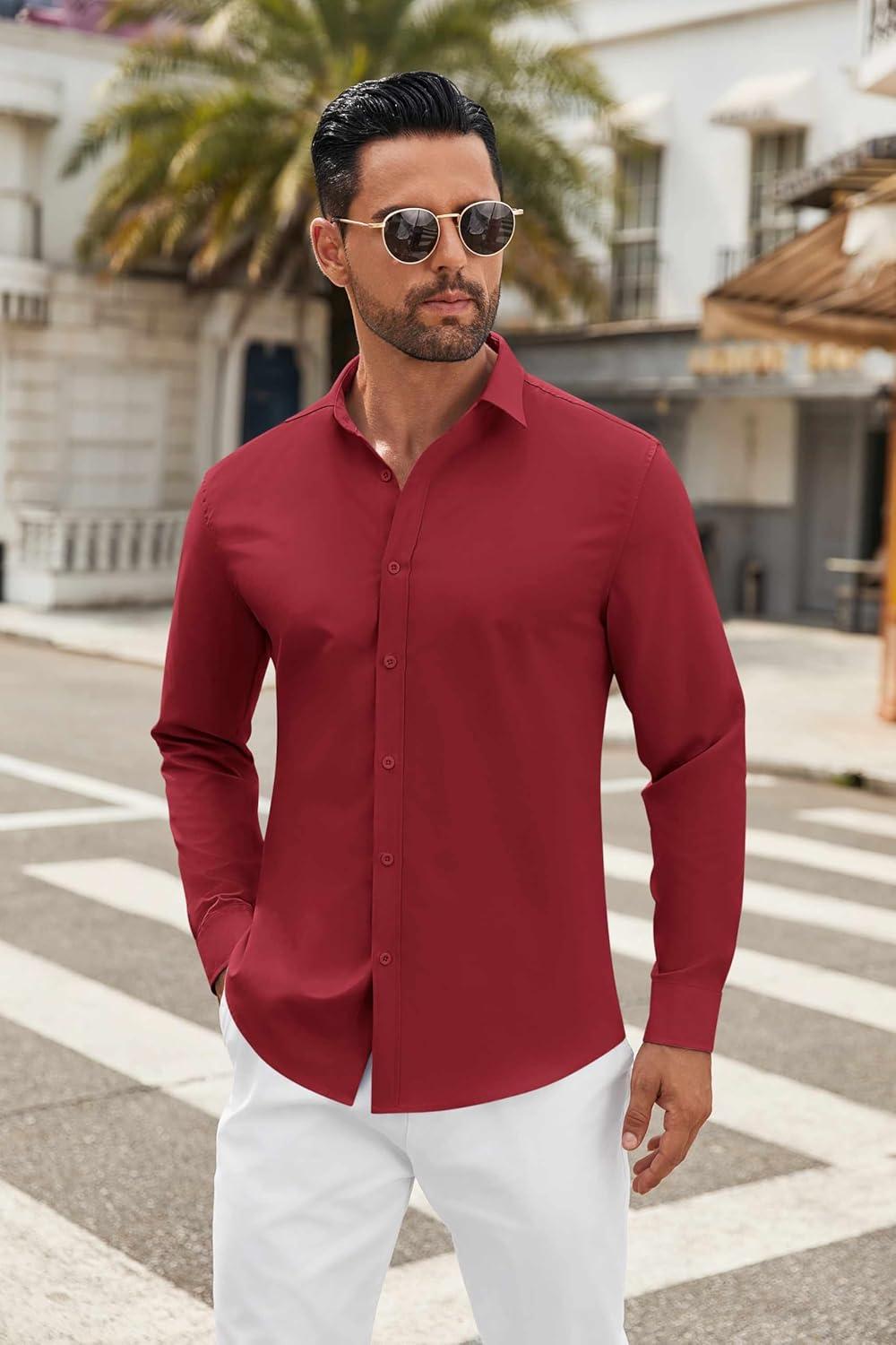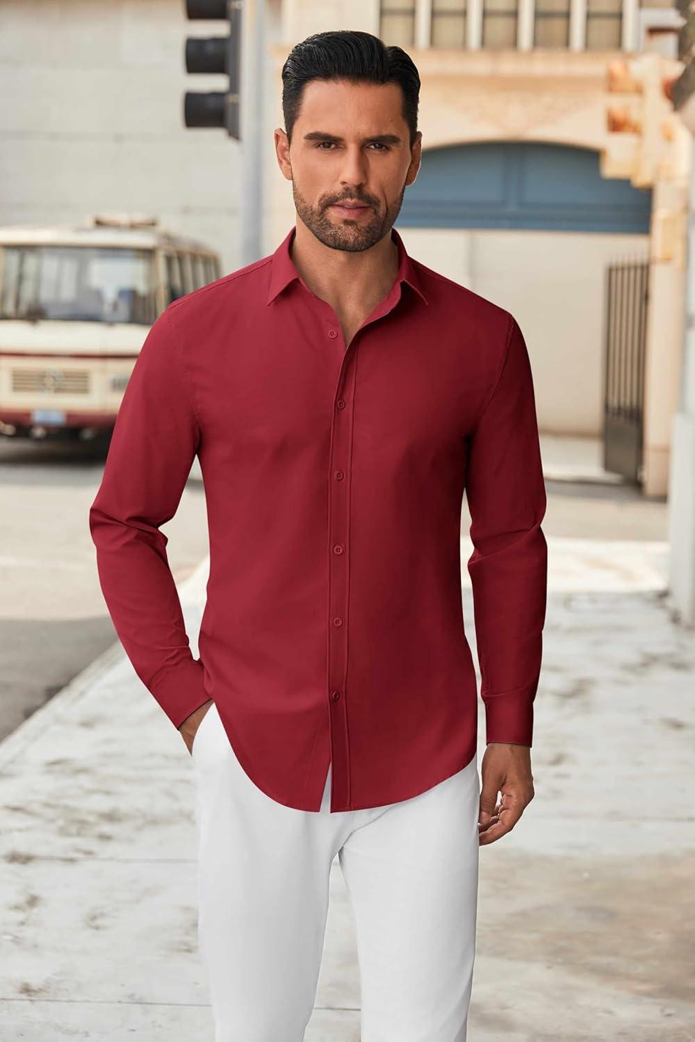 COOFANDY Men’s Long Sleeve Dress Shirt Casual Button Down Shirts Wrinkle Free Untucked Shirt(Wine Red)