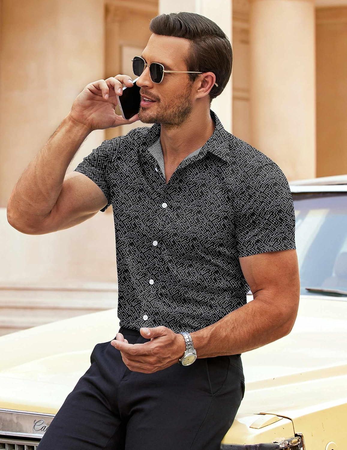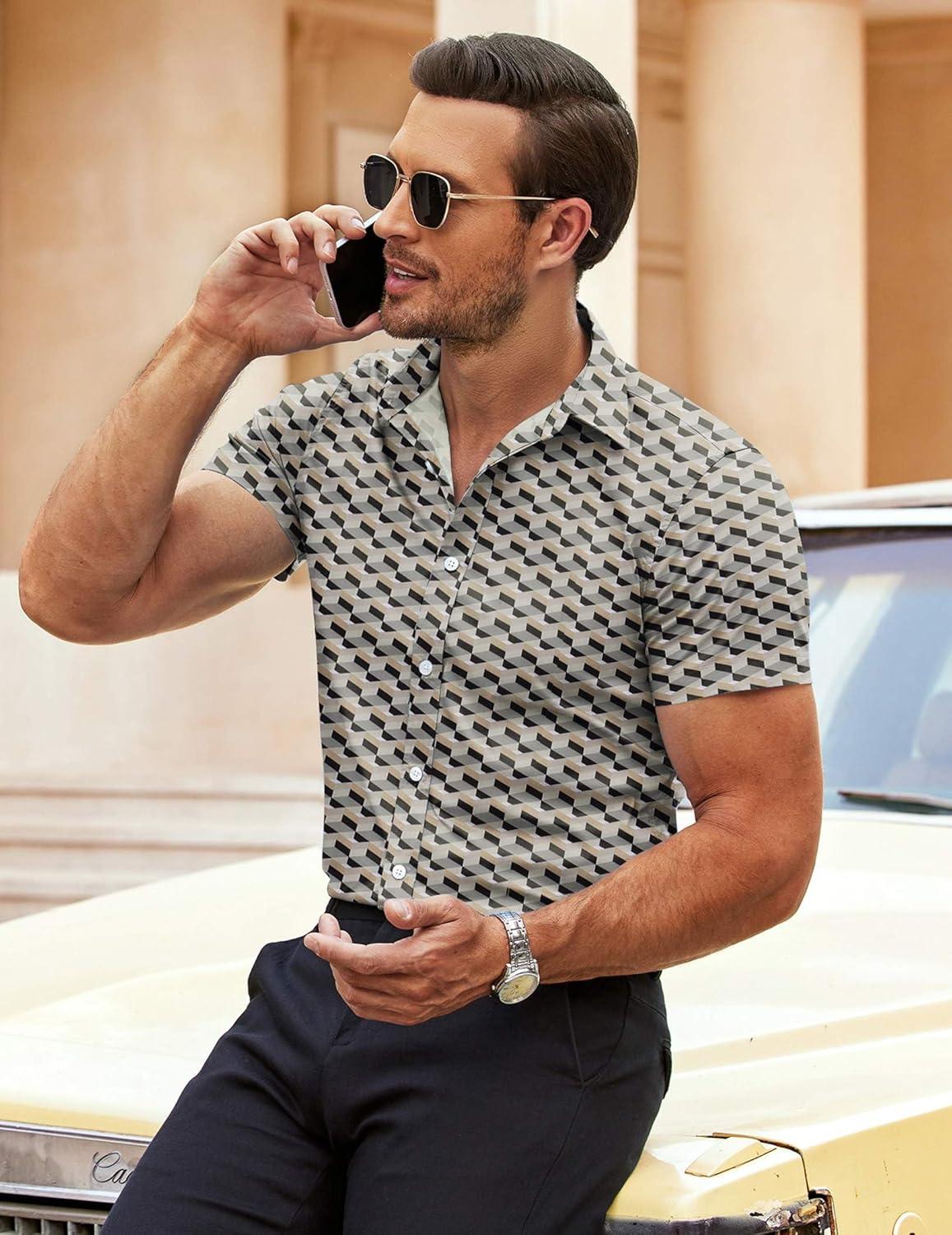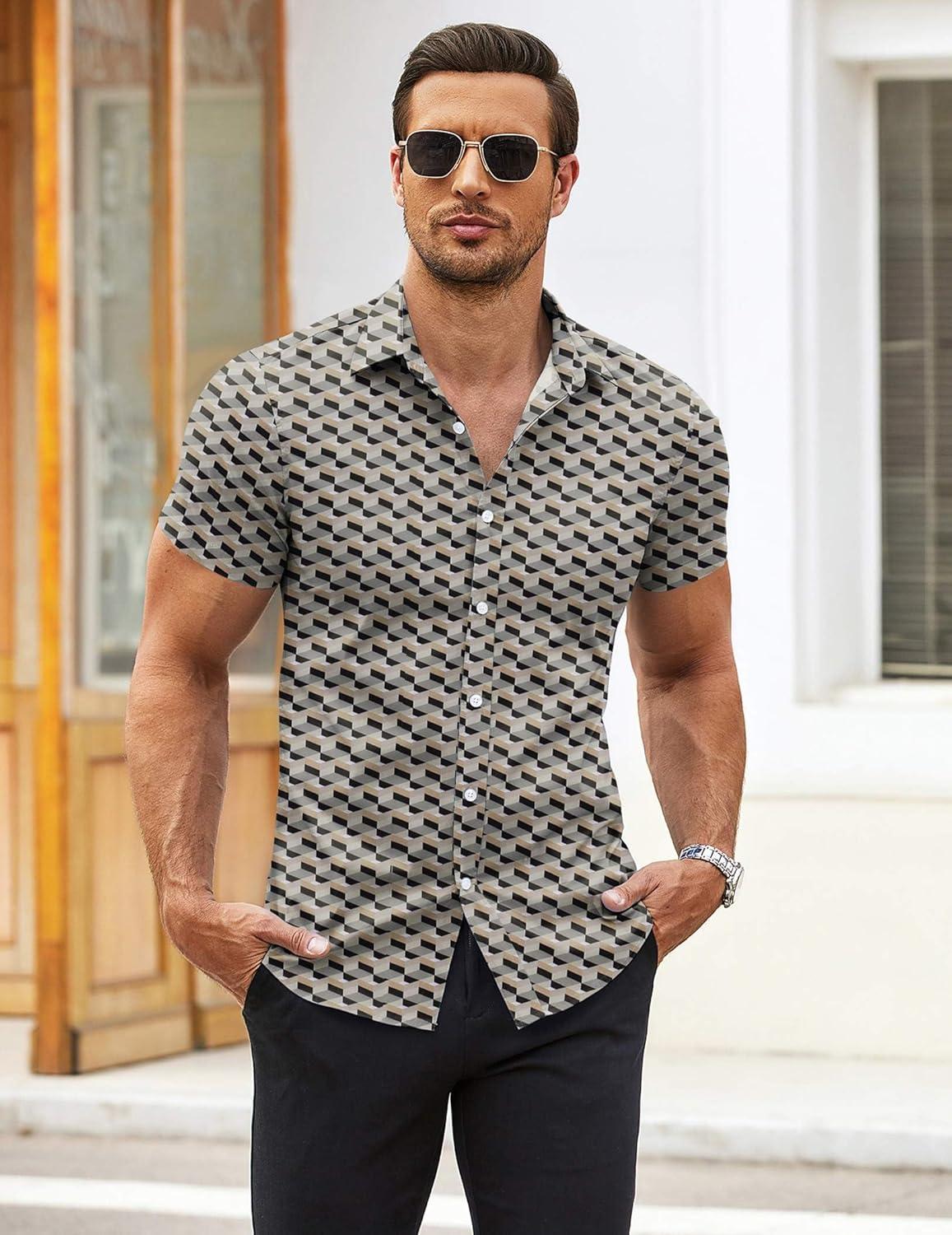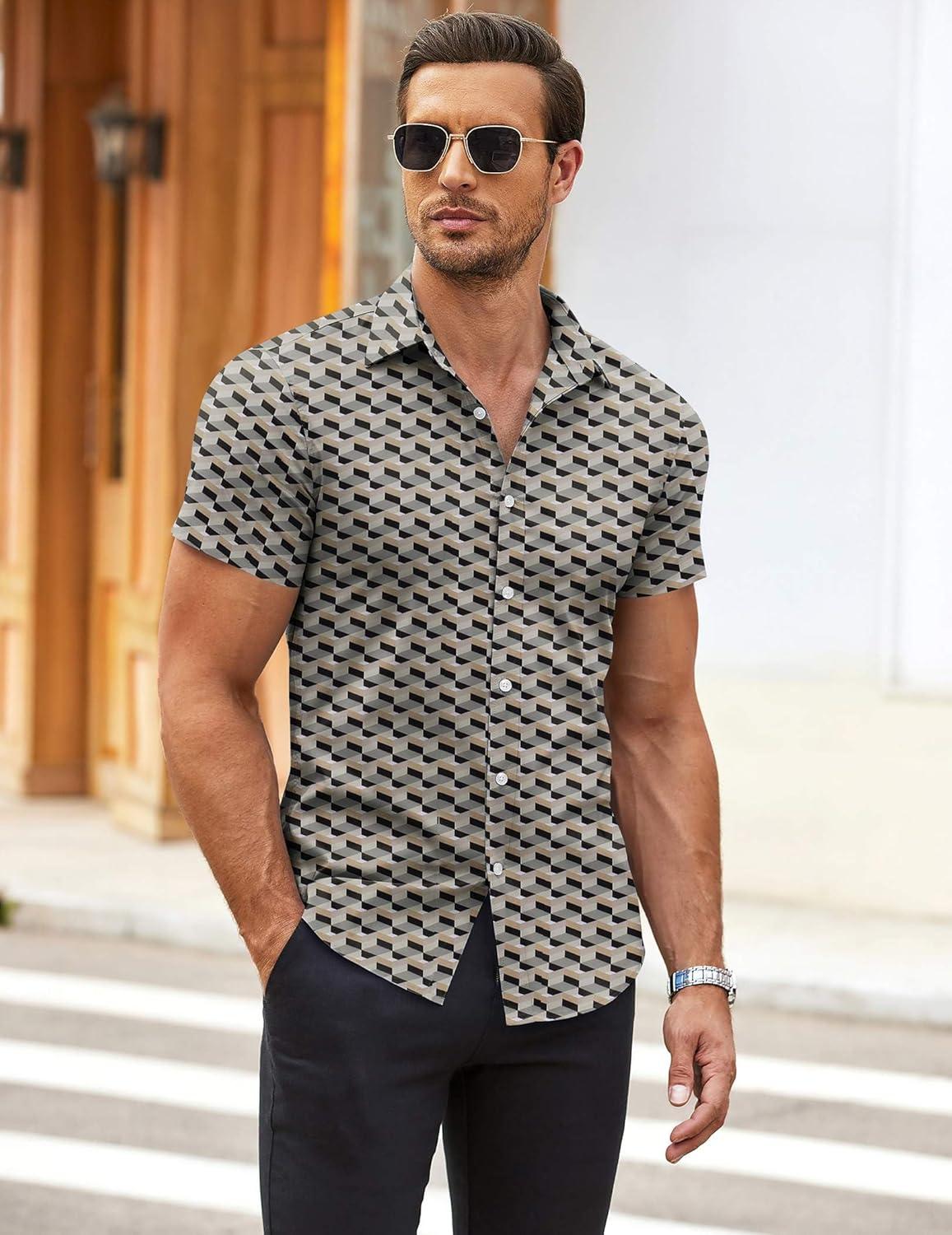 COOFANDY Men’s Muscle Fit Dress Shirts Wrinkle-Free Short Sleeve Casual Button Down Shirt(3d Blocks)