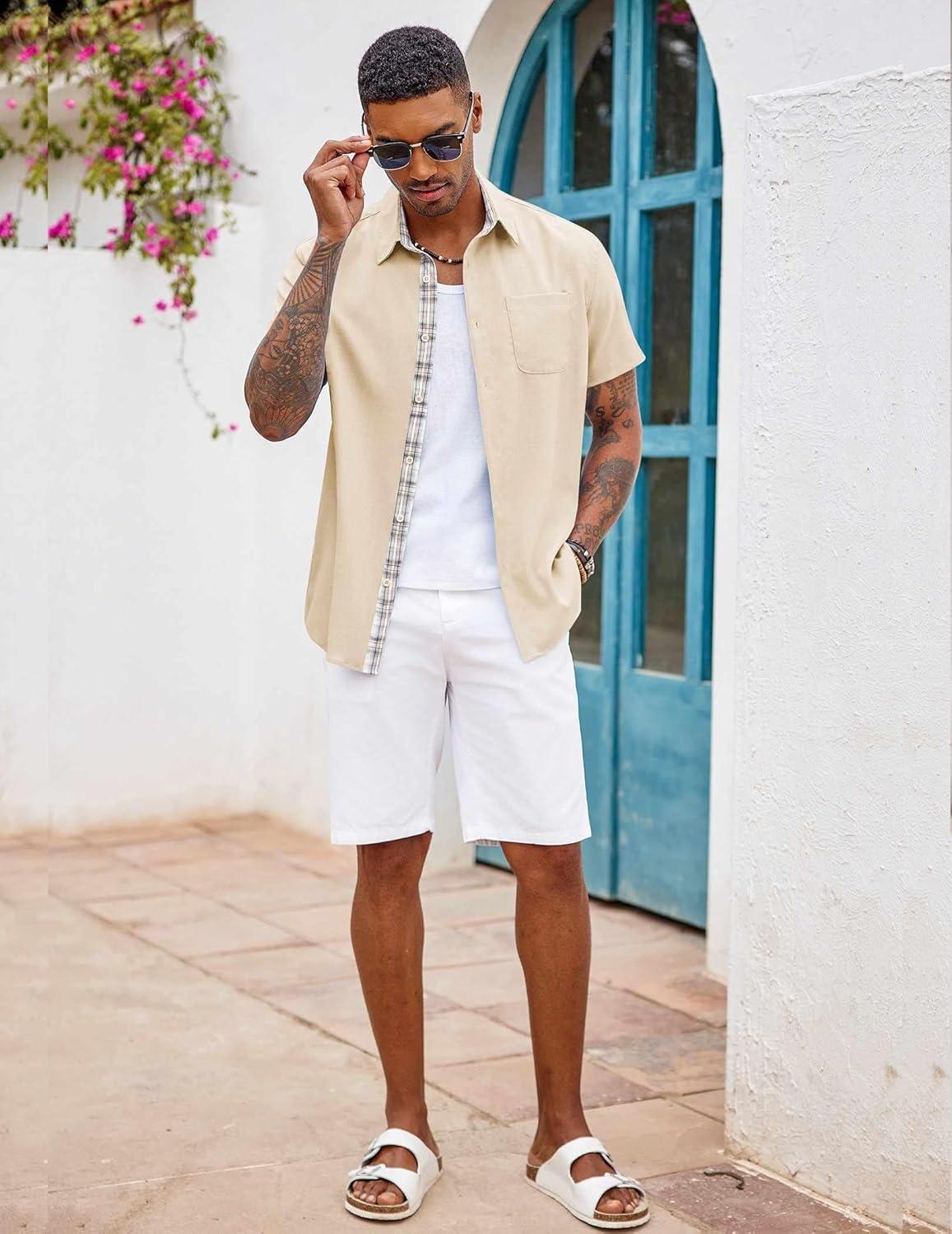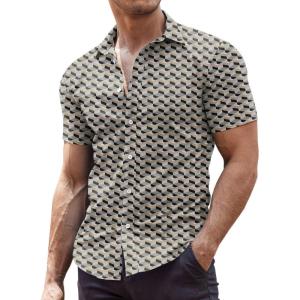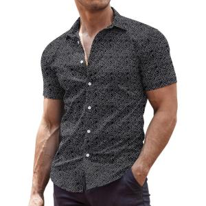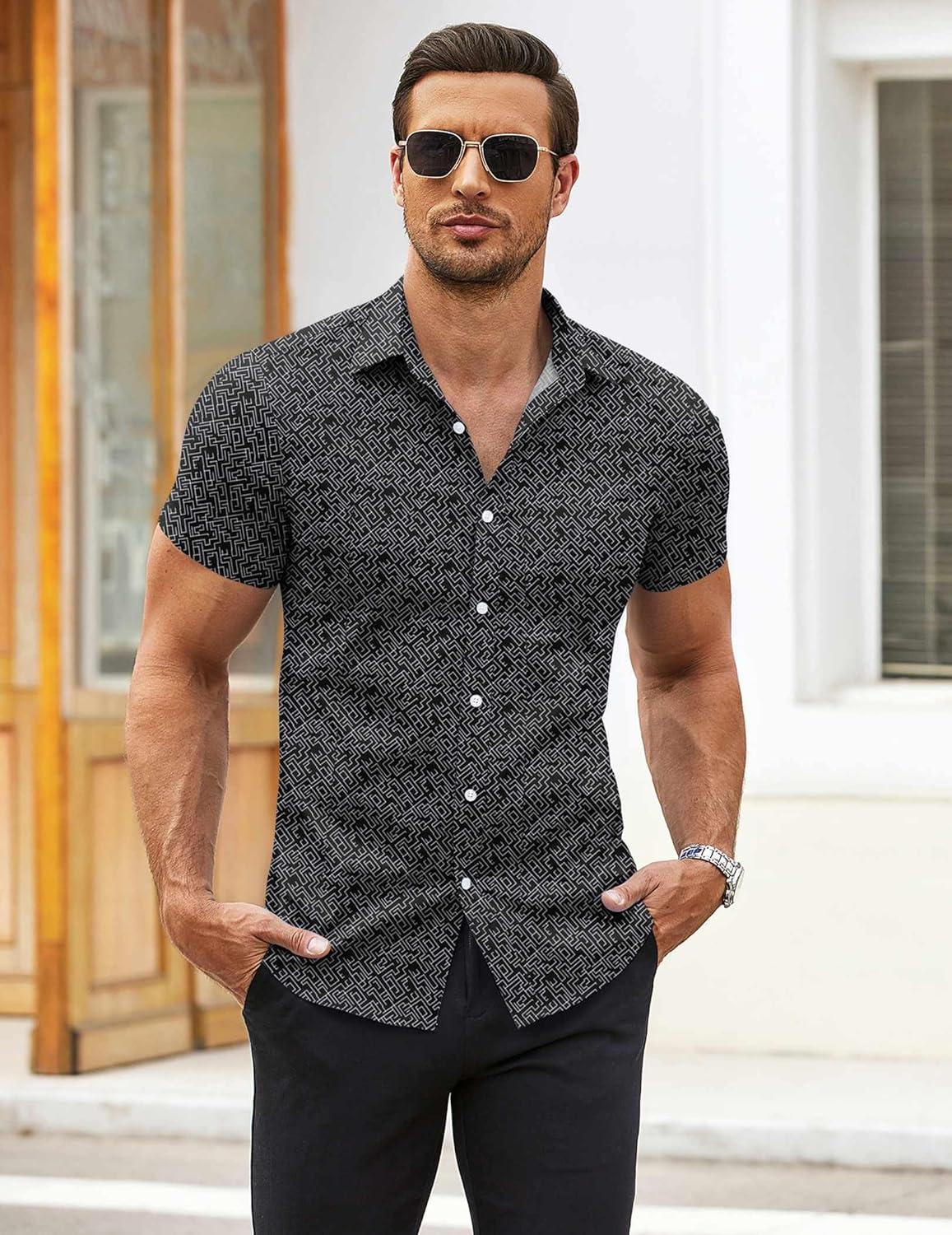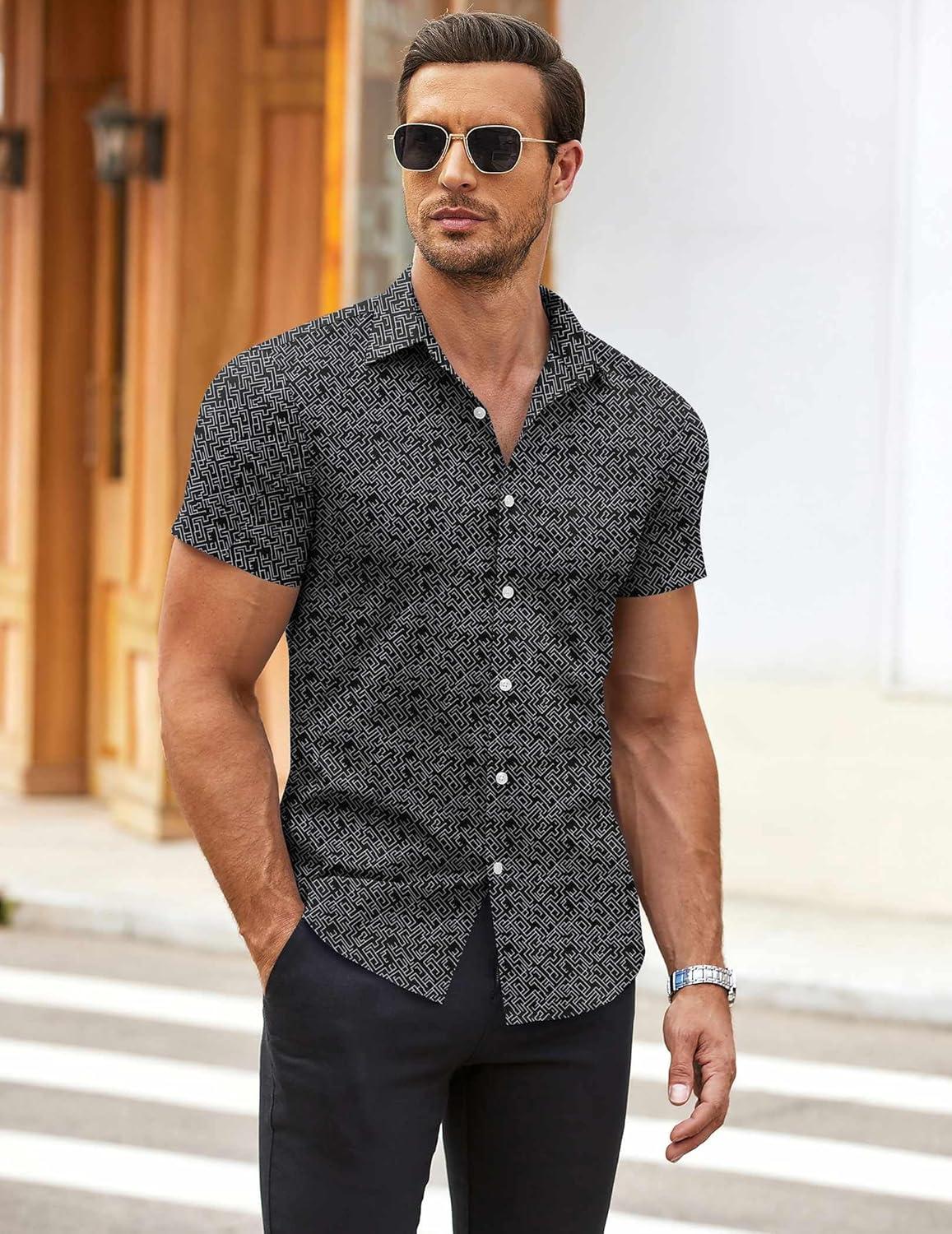 COOFANDY Men’s Muscle Fit Dress Shirts Wrinkle-Free Short Sleeve Casual Button Down Shirt(3d Blocks)