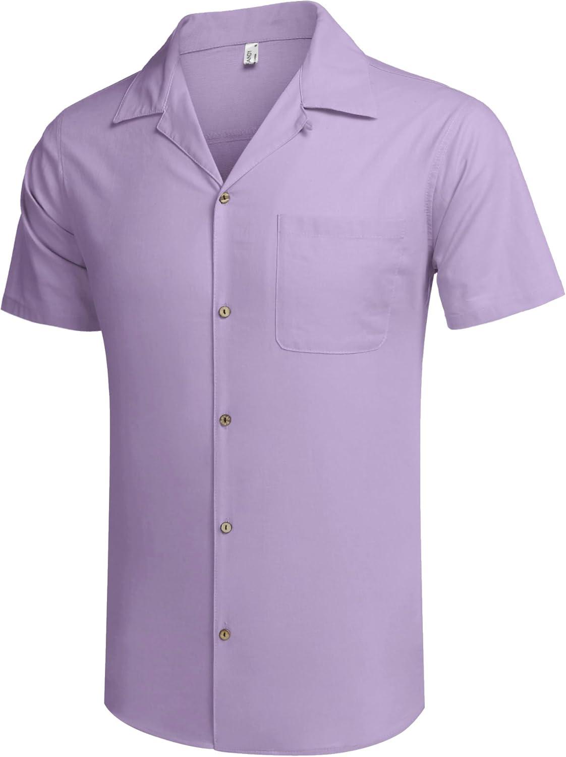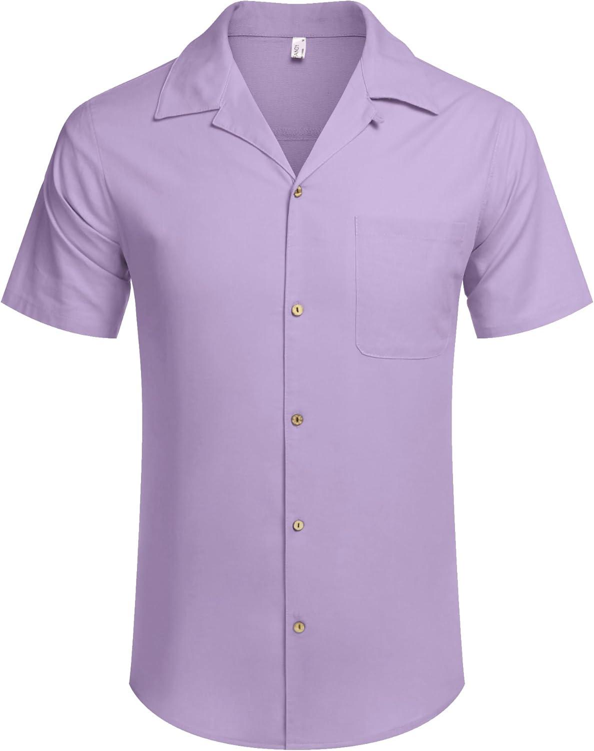 COOFANDY Men’s Muscle Fit Dress Shirts Wrinkle-Free Short Sleeve Casual Button Down Shirt(A- Purple)