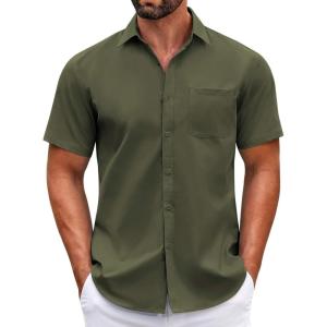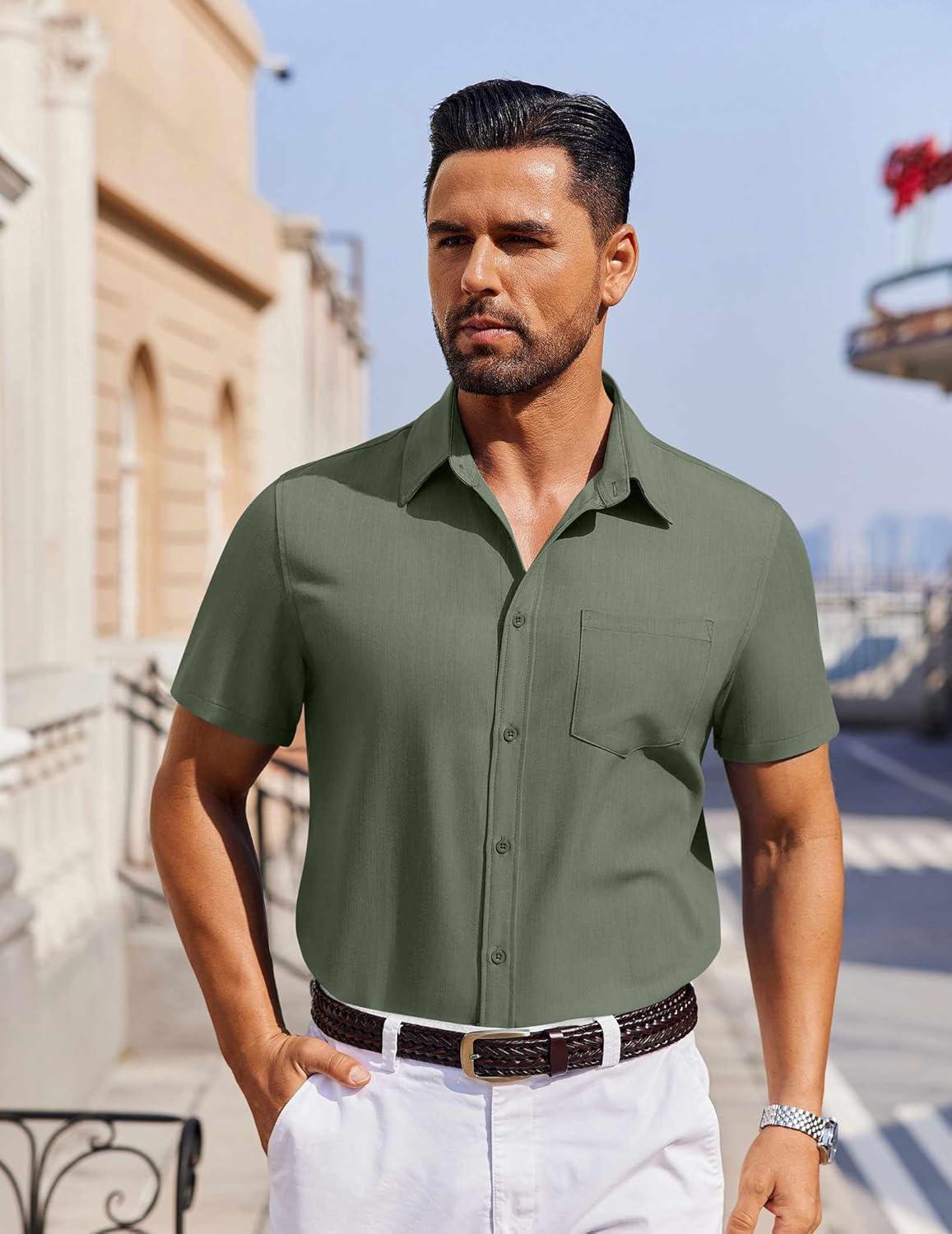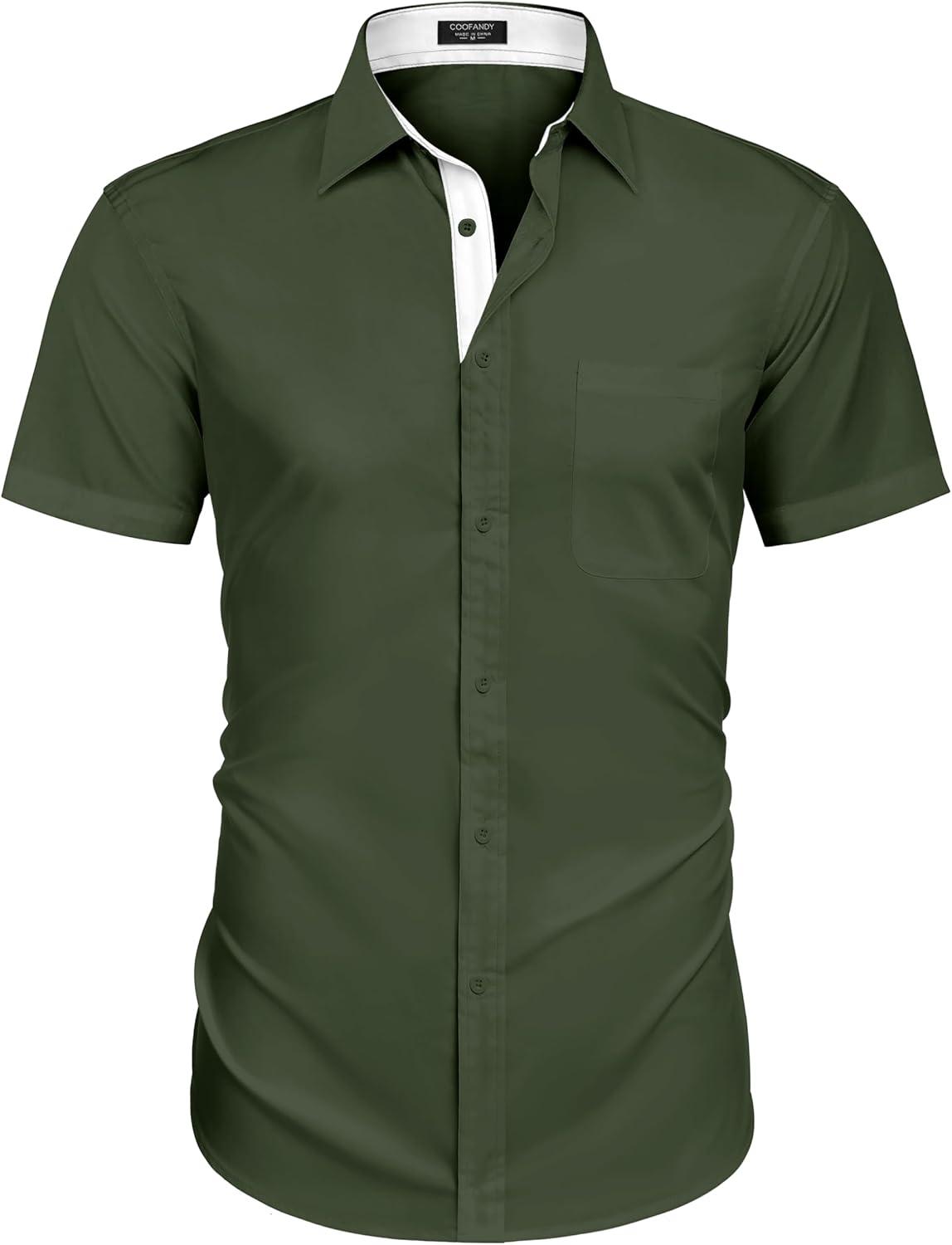 COOFANDY Men’s Muscle Fit Dress Shirts Wrinkle-Free Short Sleeve Casual Button Down Shirt(A-army Green)
