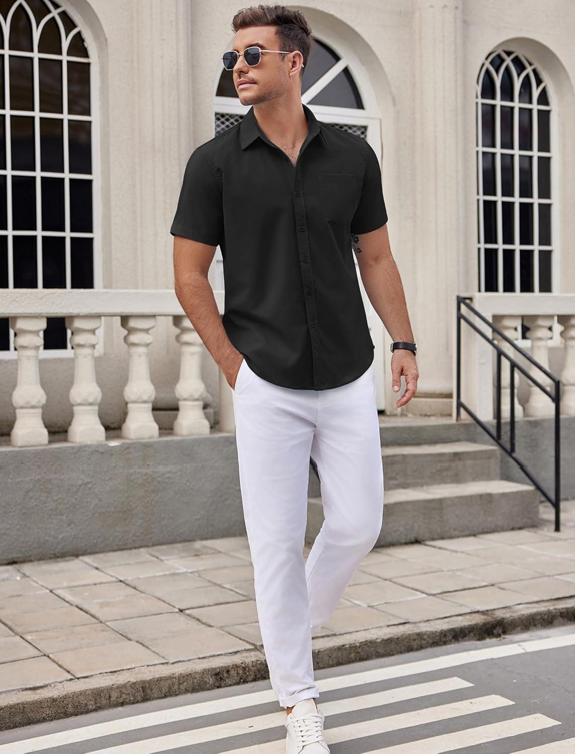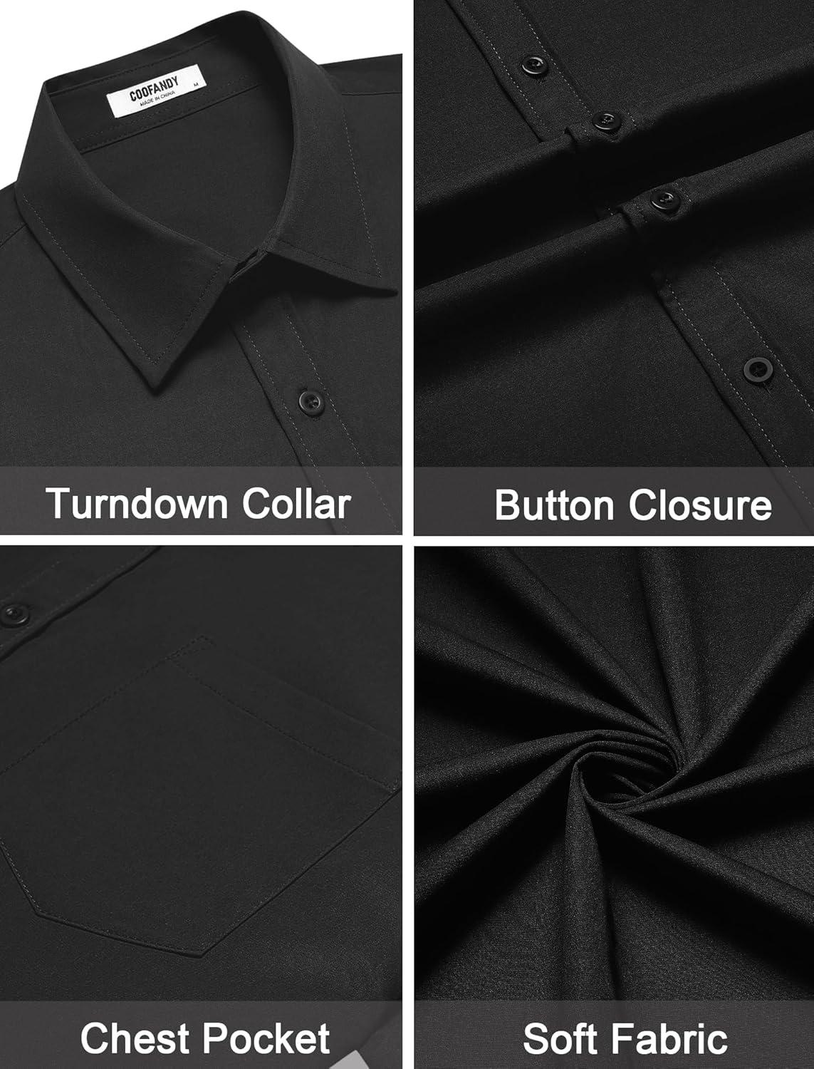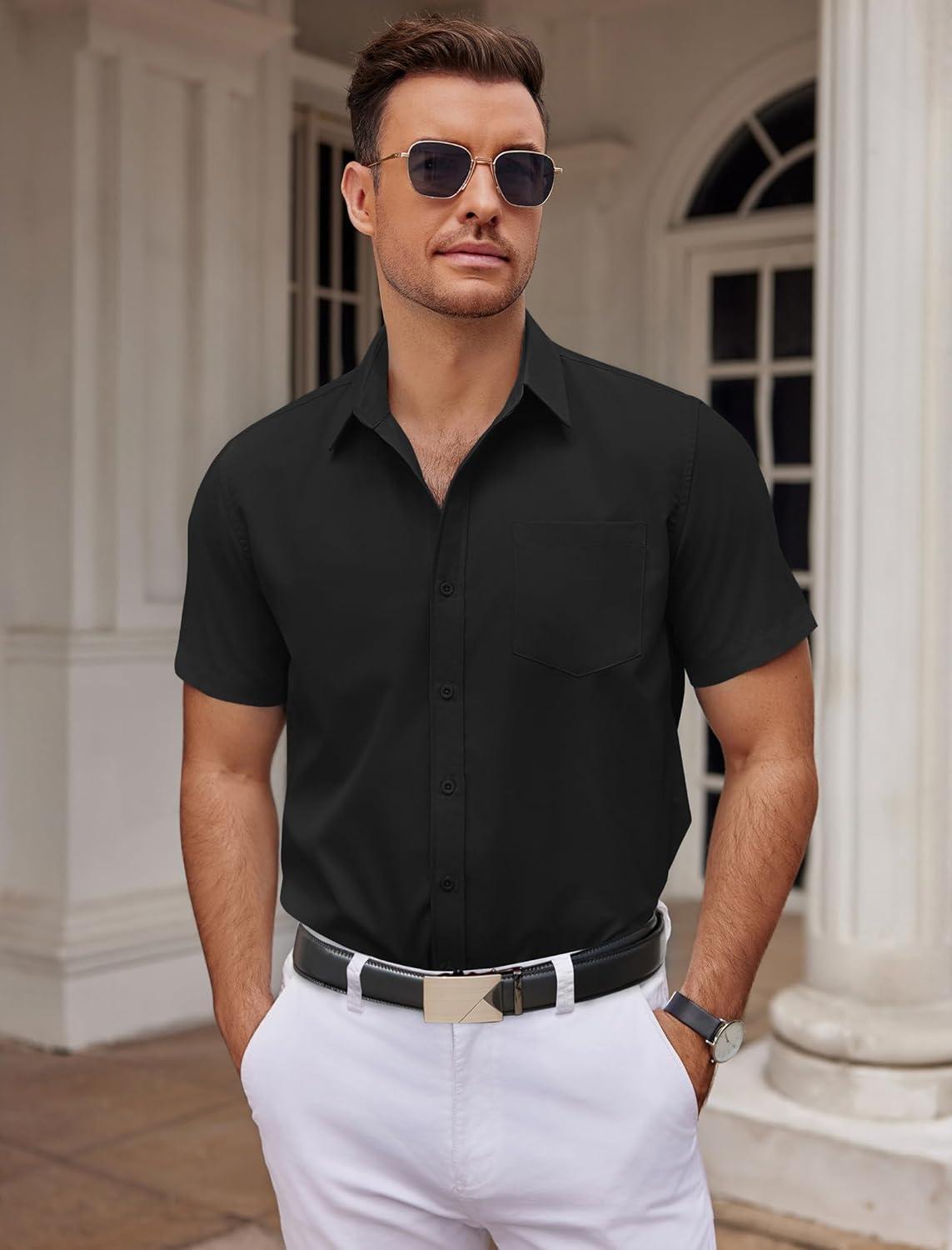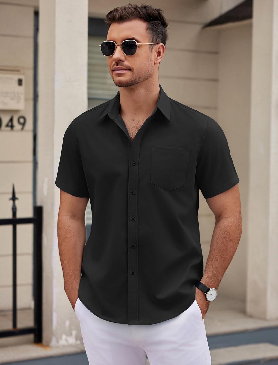 COOFANDY Men’s Muscle Fit Dress Shirts Wrinkle-Free Short Sleeve Casual Button Down Shirt(B-black)
