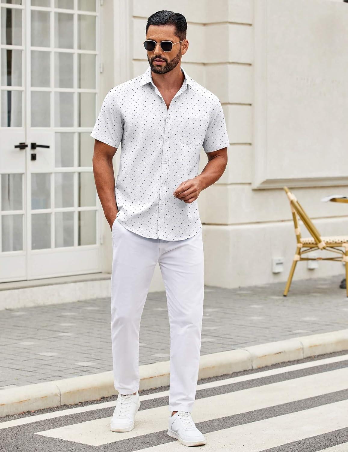 COOFANDY Men’s Muscle Fit Dress Shirts Wrinkle-Free Short Sleeve Casual Button Down Shirt(Black Dot-white)