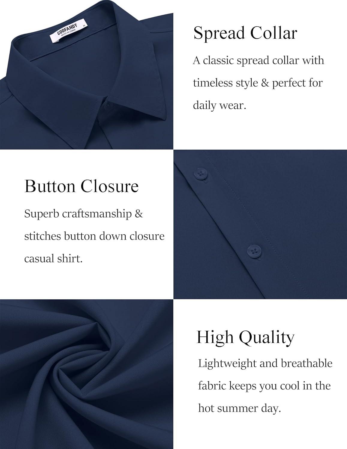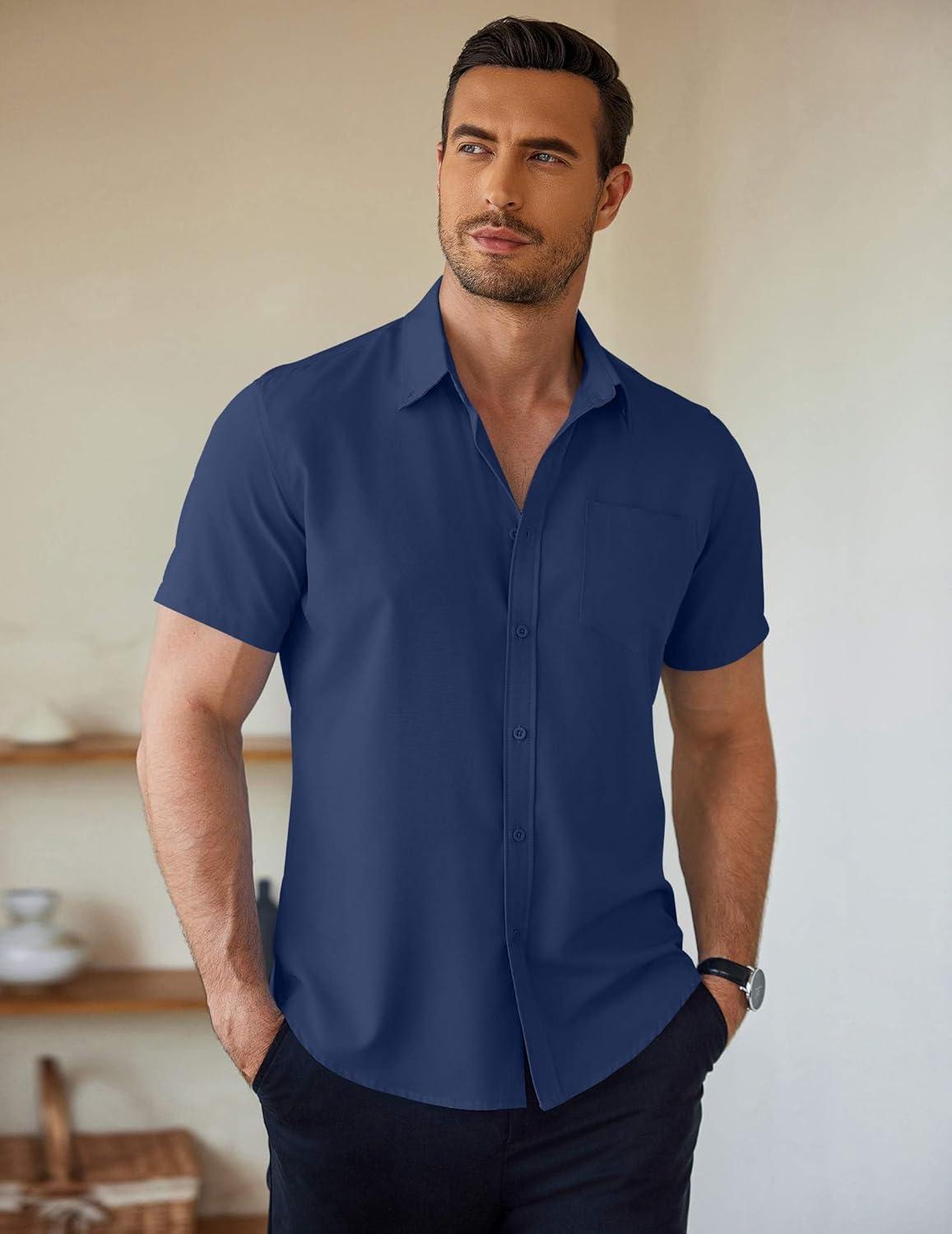 COOFANDY Men’s Muscle Fit Dress Shirts Wrinkle-Free Short Sleeve Casual Button Down Shirt(Black Iris)