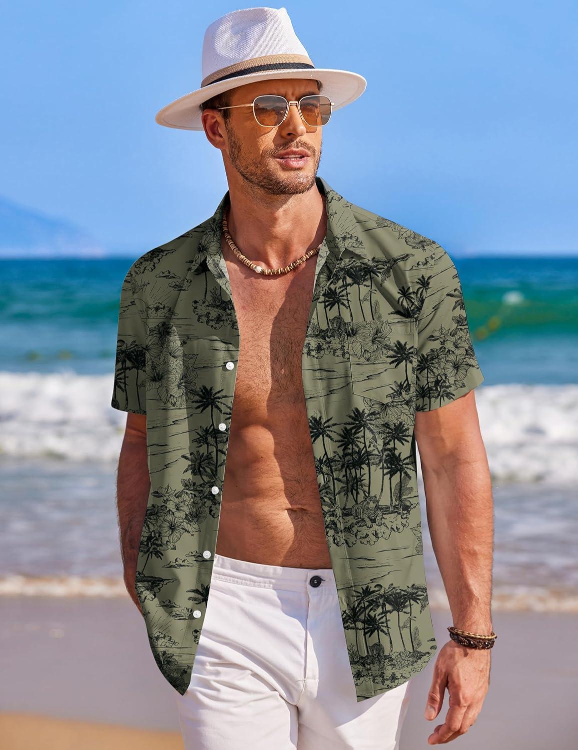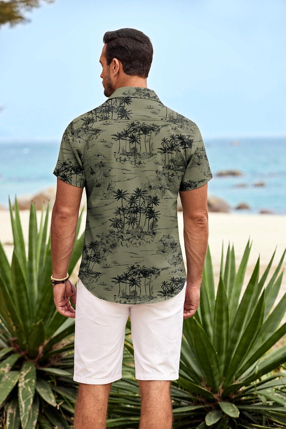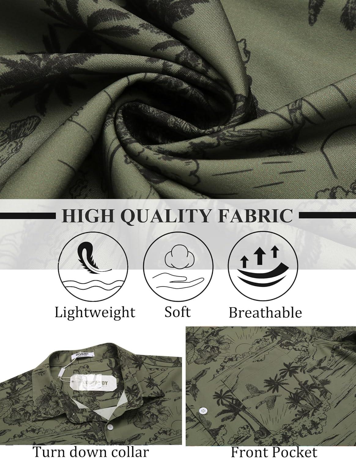COOFANDY Men’s Muscle Fit Dress Shirts Wrinkle-Free Short Sleeve Casual Button Down Shirt(Black Tree-green)