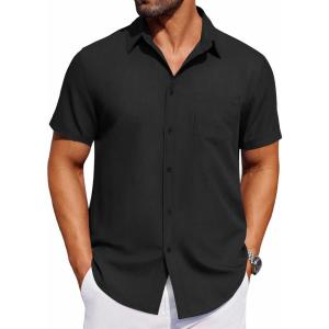 COOFANDY Men’s Muscle Fit Dress Shirts Wrinkle-Free Short Sleeve Casual Button Down Shirt(Black)