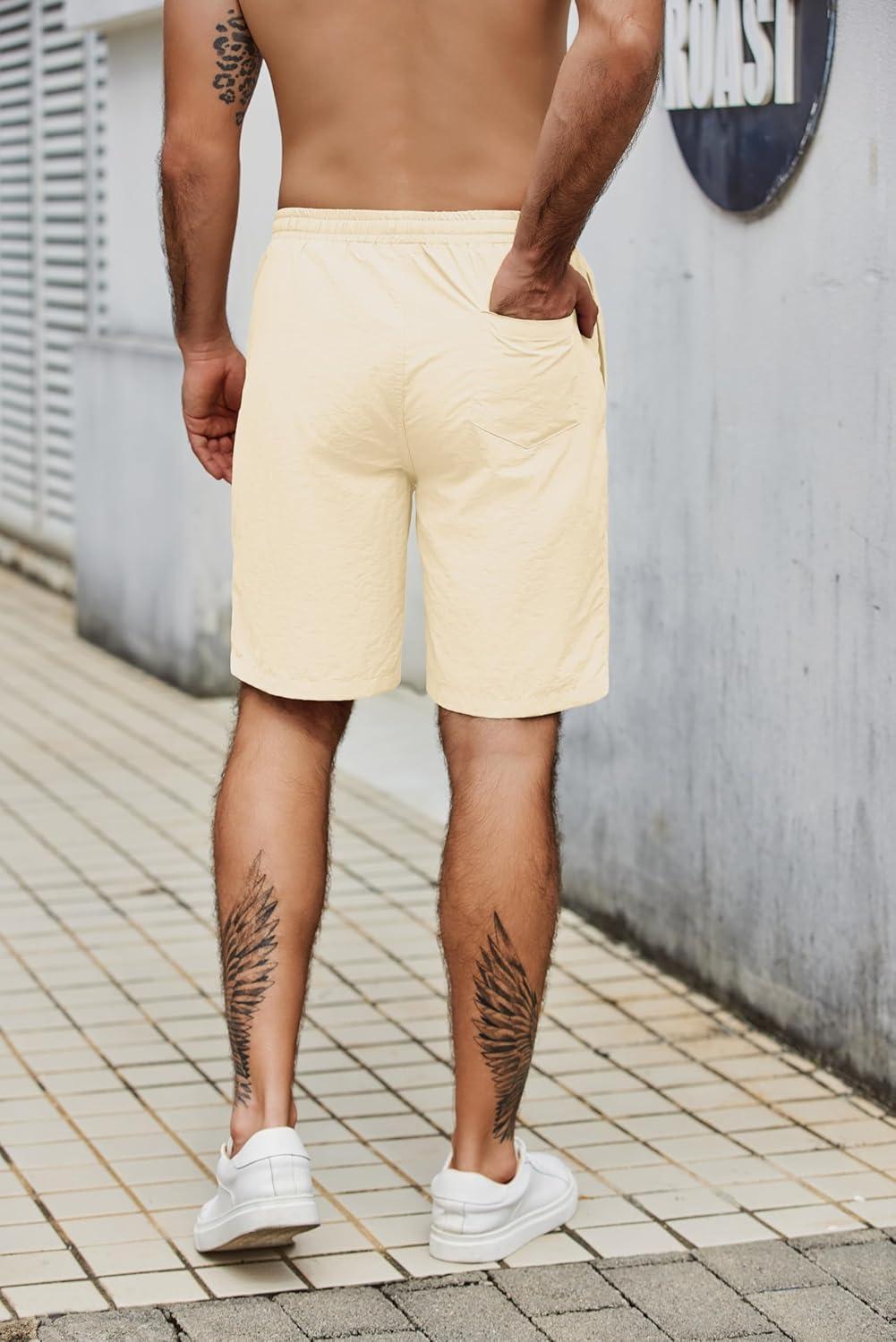 COOFANDY Mens Casual Beach Shorts Summer Elastic Waist Shorts Lightweight Drawstring Golf Shorts(Beige)