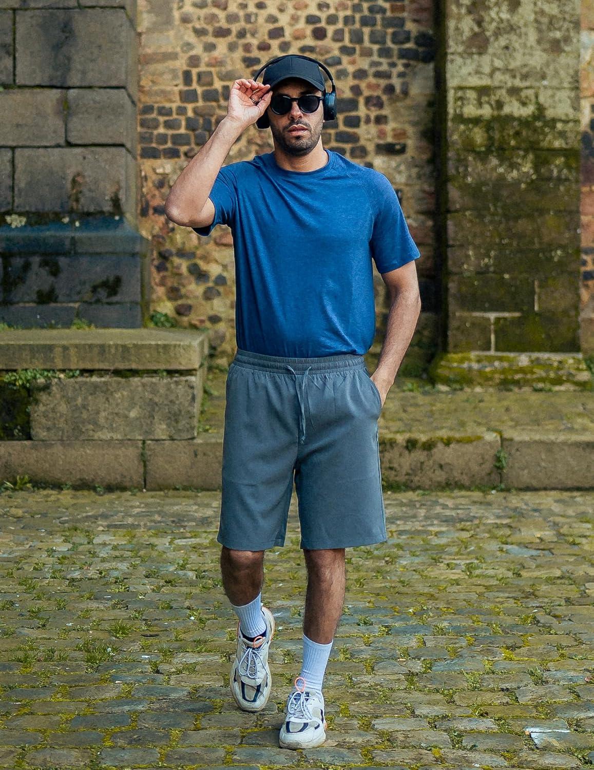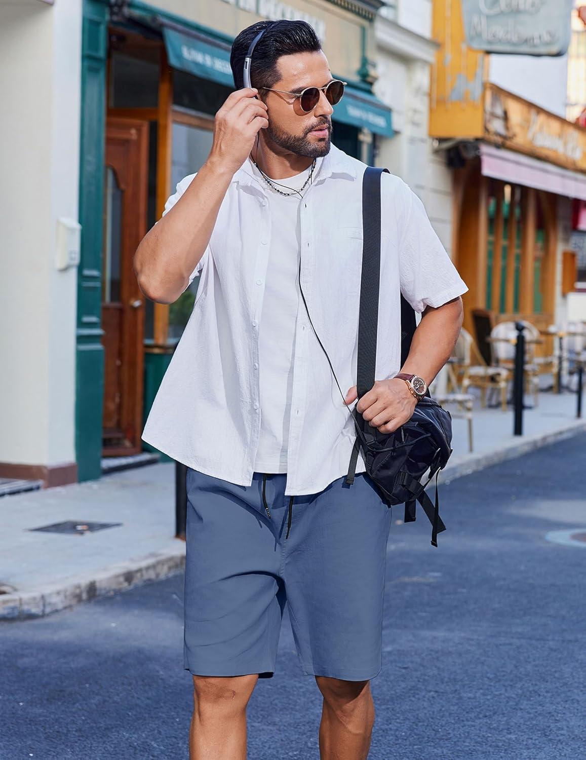 COOFANDY Mens Casual Beach Shorts Summer Elastic Waist Shorts Lightweight Drawstring Golf Shorts(Blue)