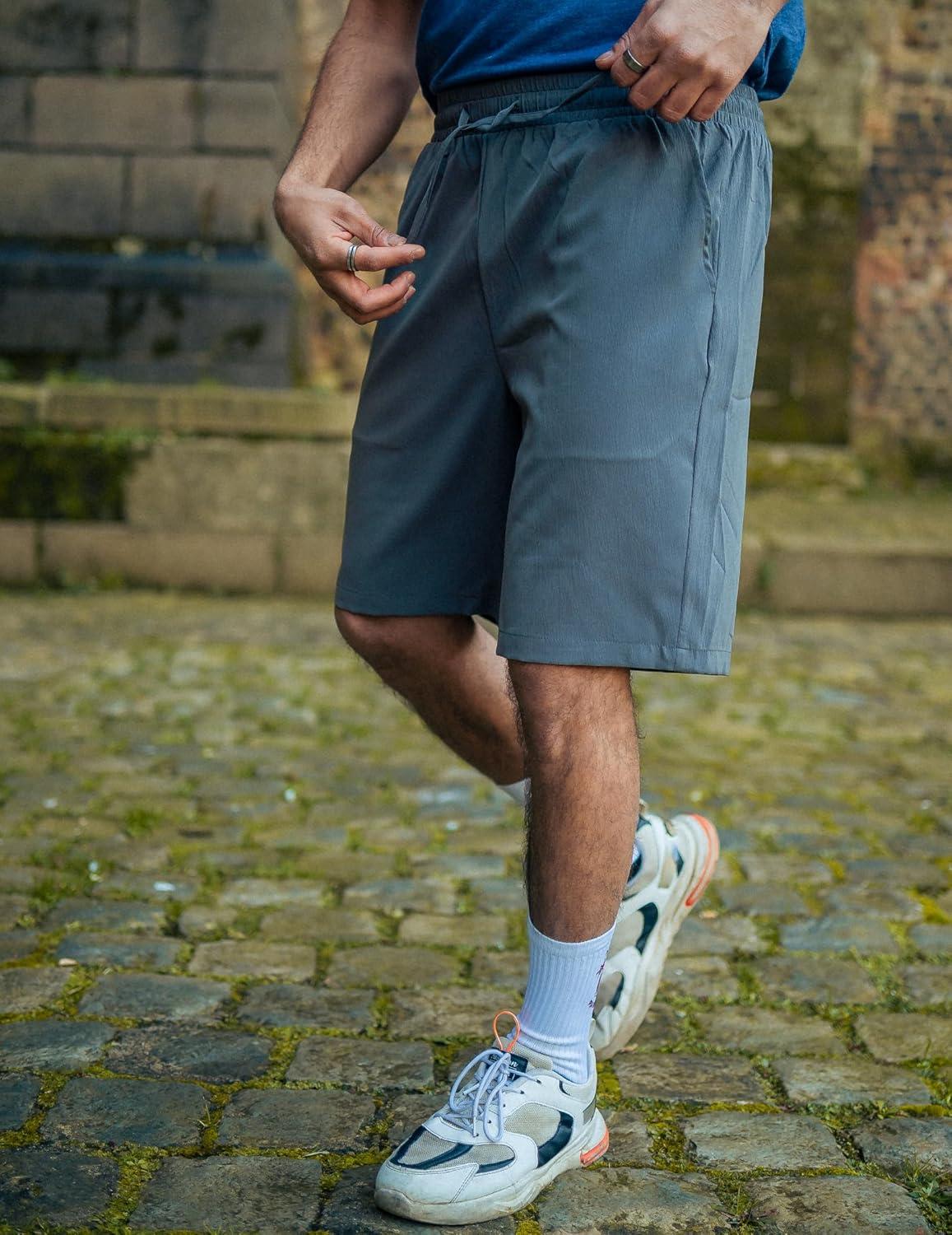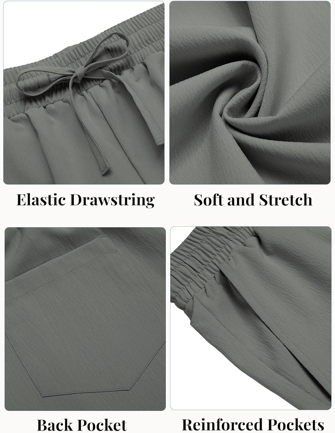 COOFANDY Mens Casual Beach Shorts Summer Elastic Waist Shorts Lightweight Drawstring Golf Shorts(Grey)