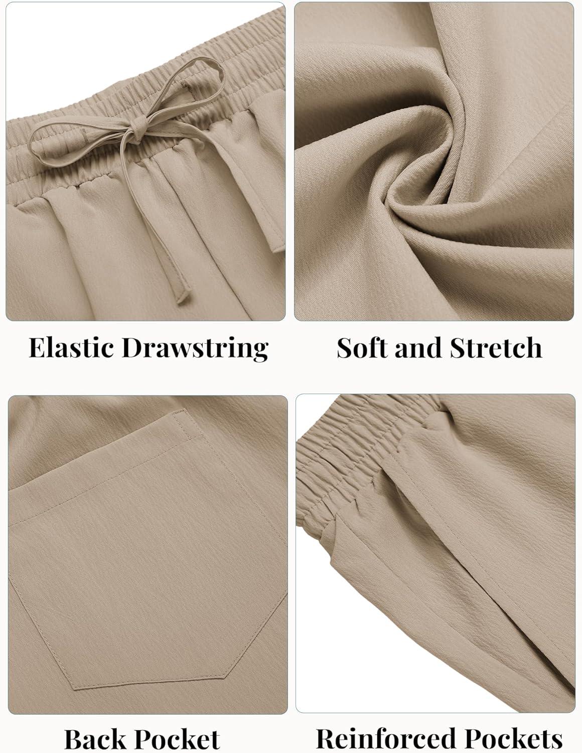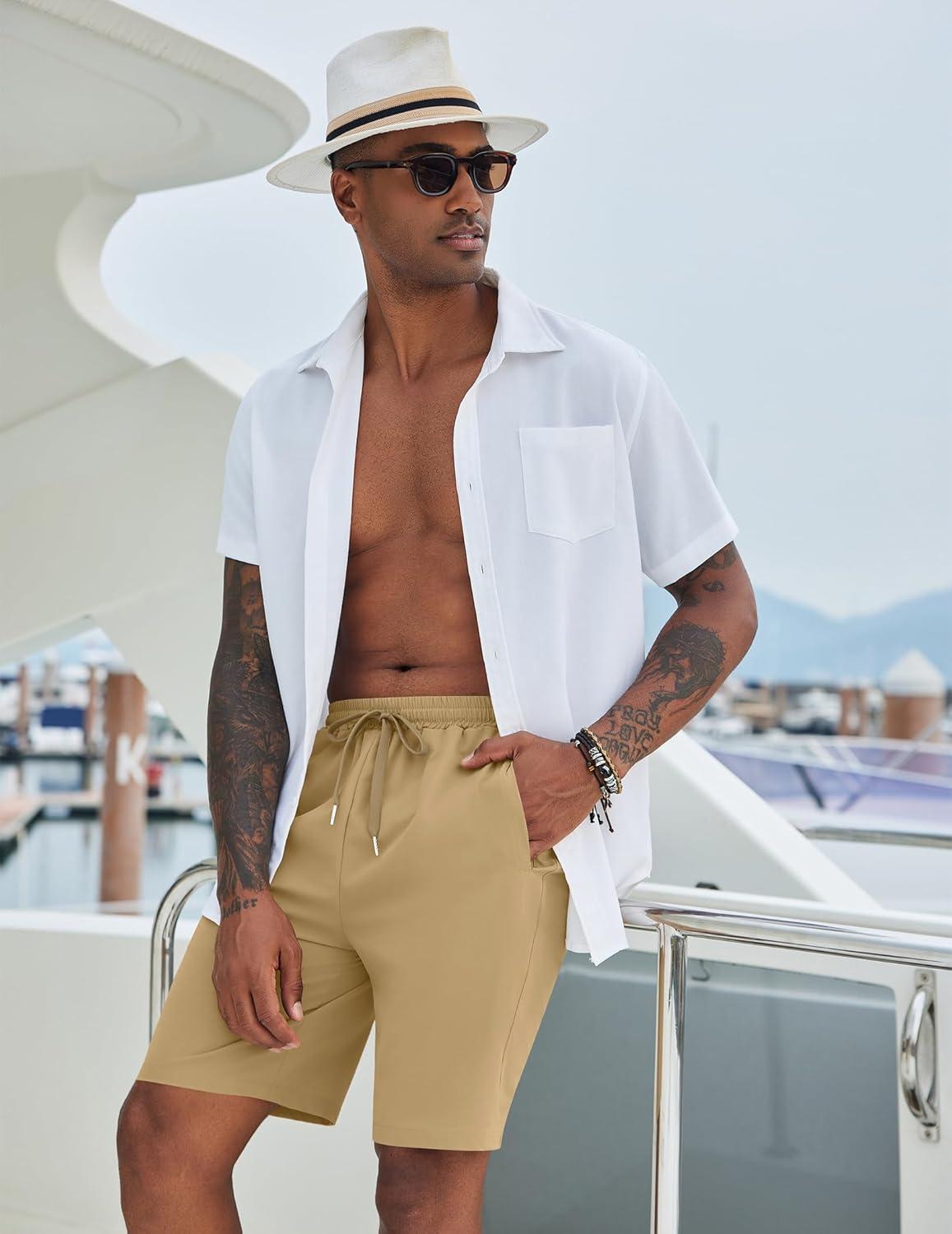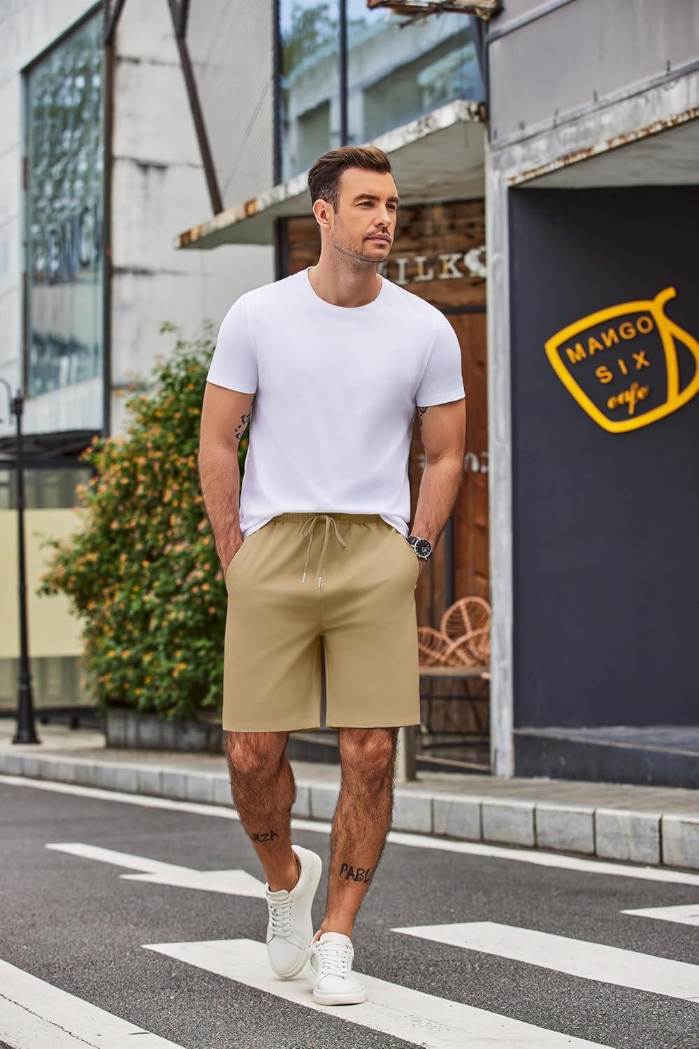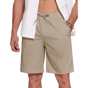 COOFANDY Mens Casual Beach Shorts Summer Elastic Waist Shorts Lightweight Drawstring Golf Shorts(Khaki)