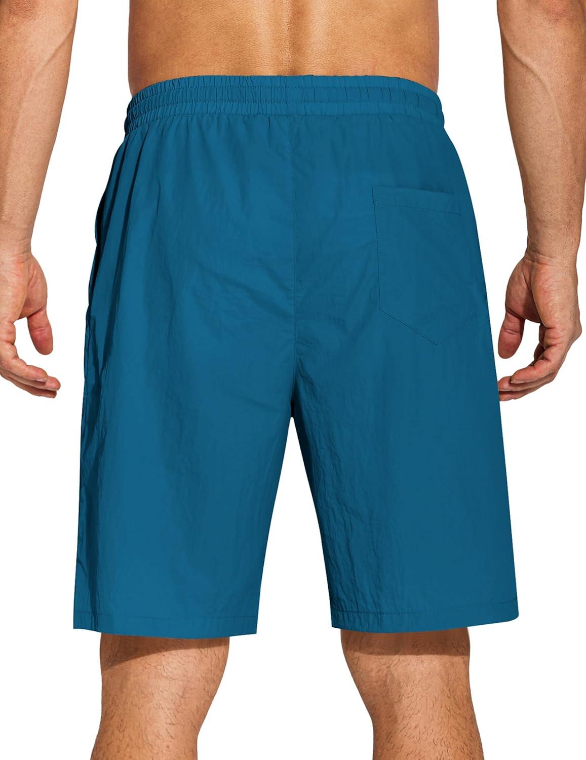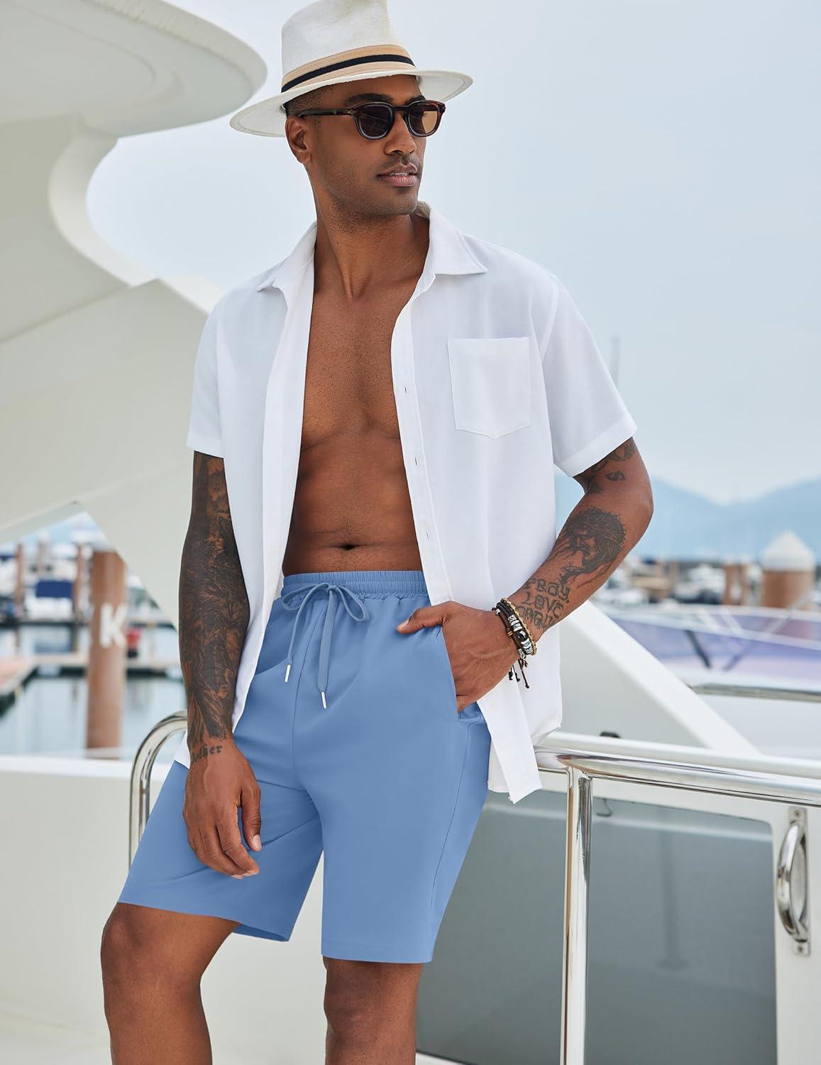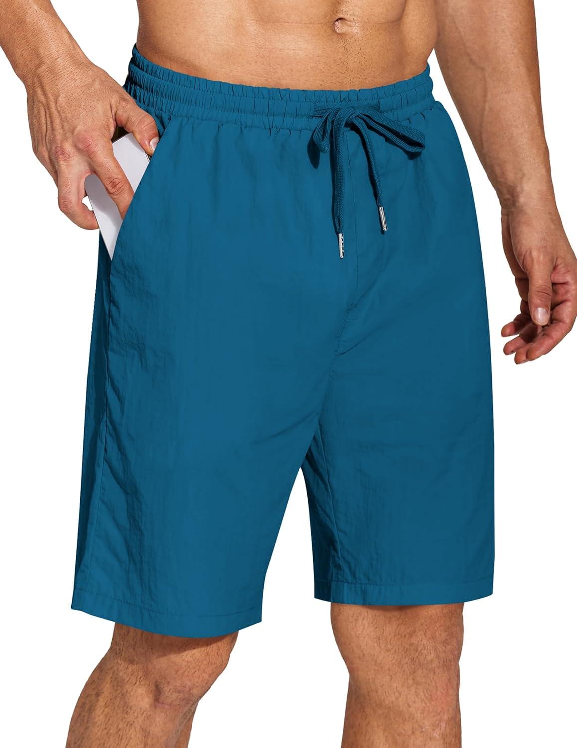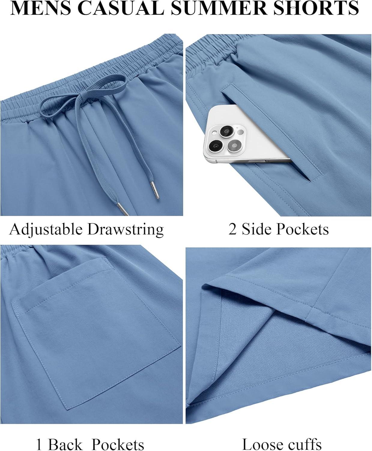 COOFANDY Mens Casual Beach Shorts Summer Elastic Waist Shorts Lightweight Drawstring Golf Shorts(Lake Blue)