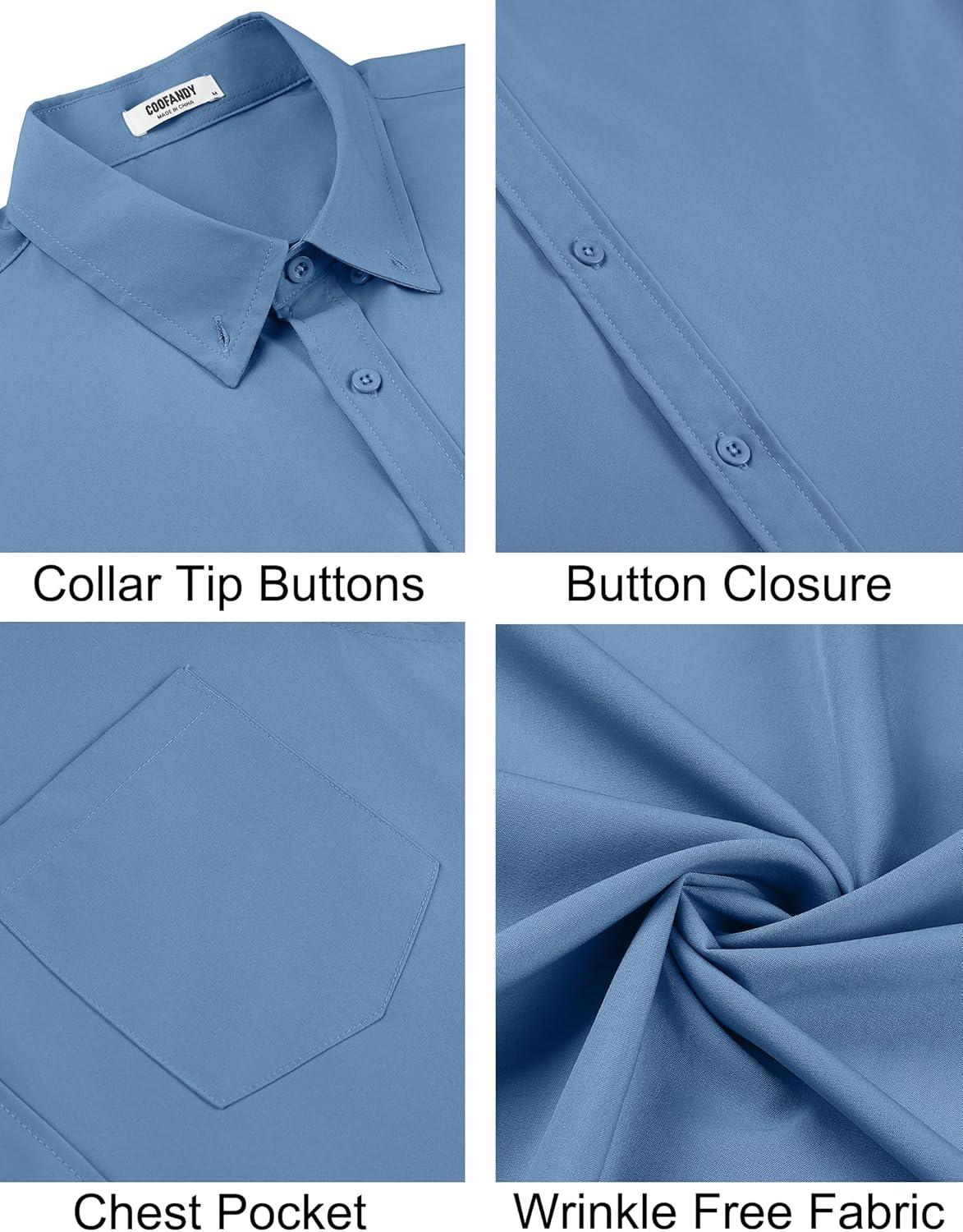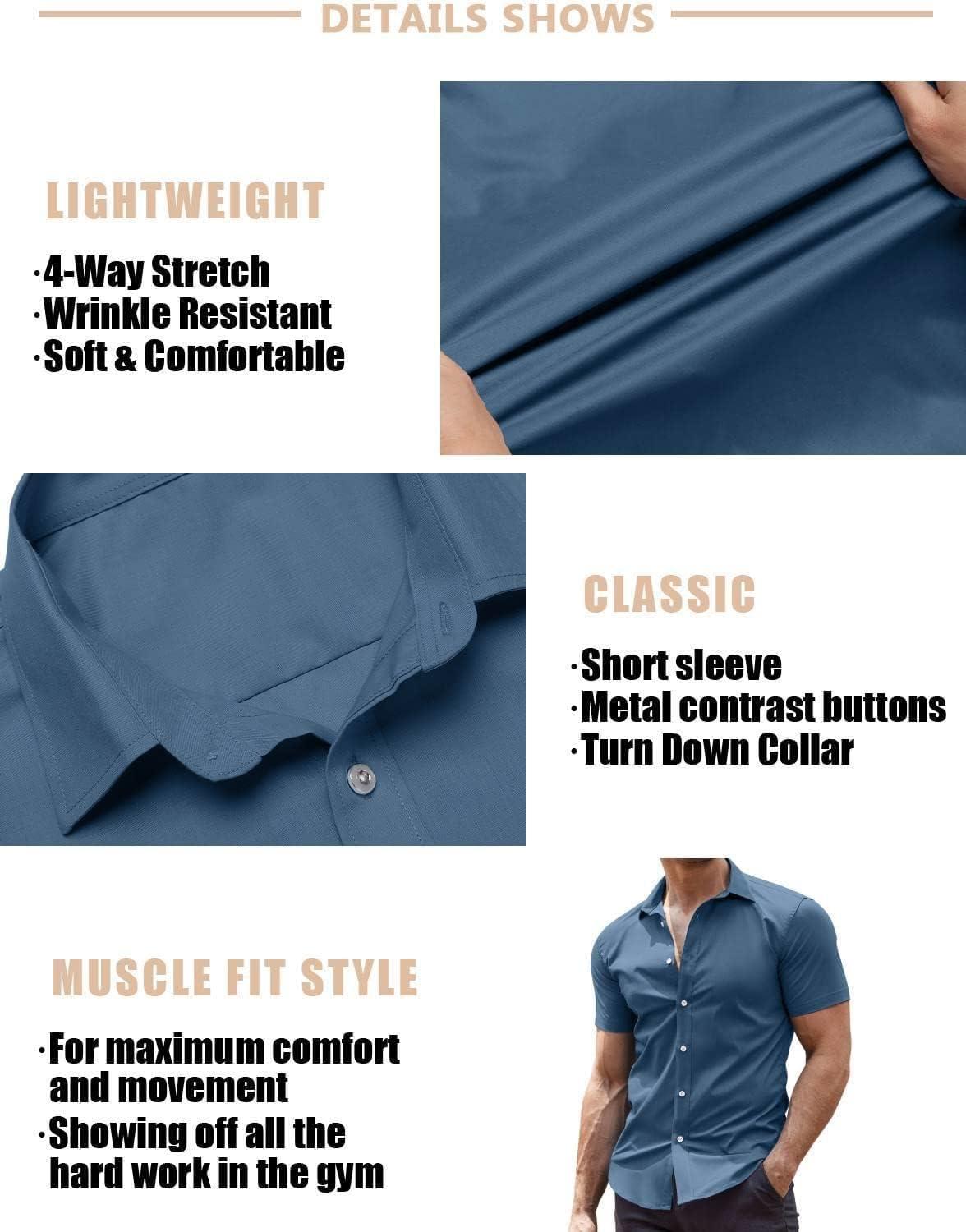 COOFANDY Men’s Muscle Fit Dress Shirts Wrinkle-Free Short Sleeve Casual Button Down Shirt(Grey Blue)