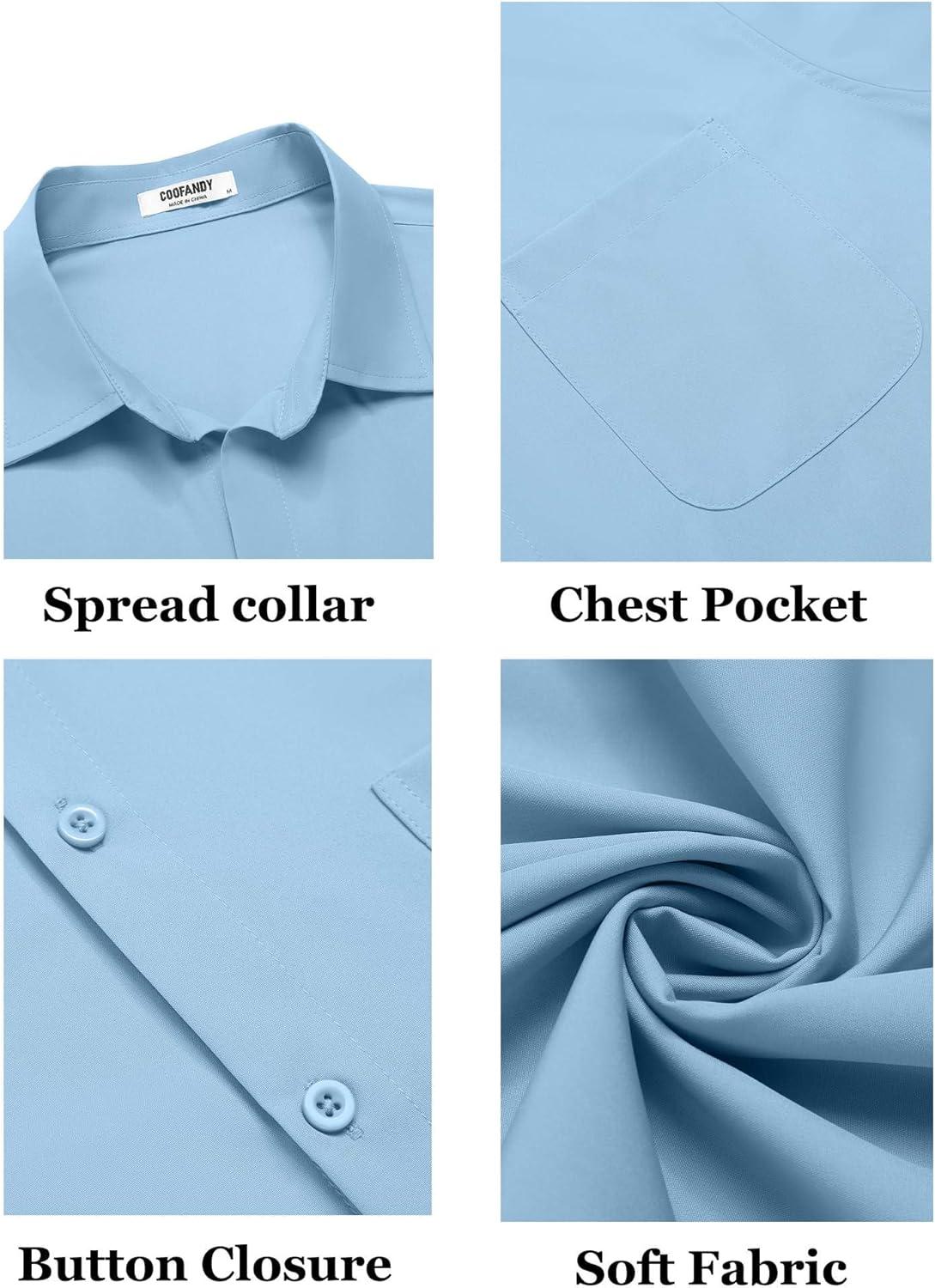 COOFANDY Men’s Muscle Fit Dress Shirts Wrinkle-Free Short Sleeve Casual Button Down Shirt(Clear Blue)
