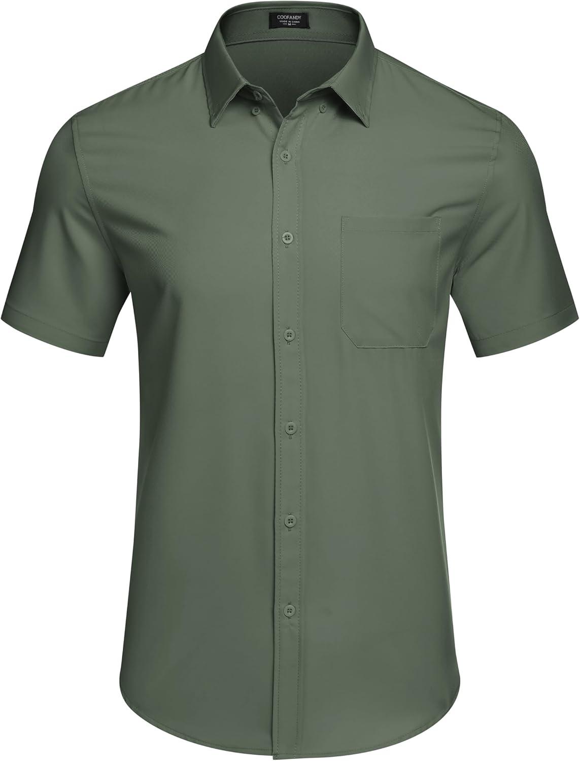 COOFANDY Men’s Muscle Fit Dress Shirts Wrinkle-Free Short Sleeve Casual Button Down Shirt(Chive)