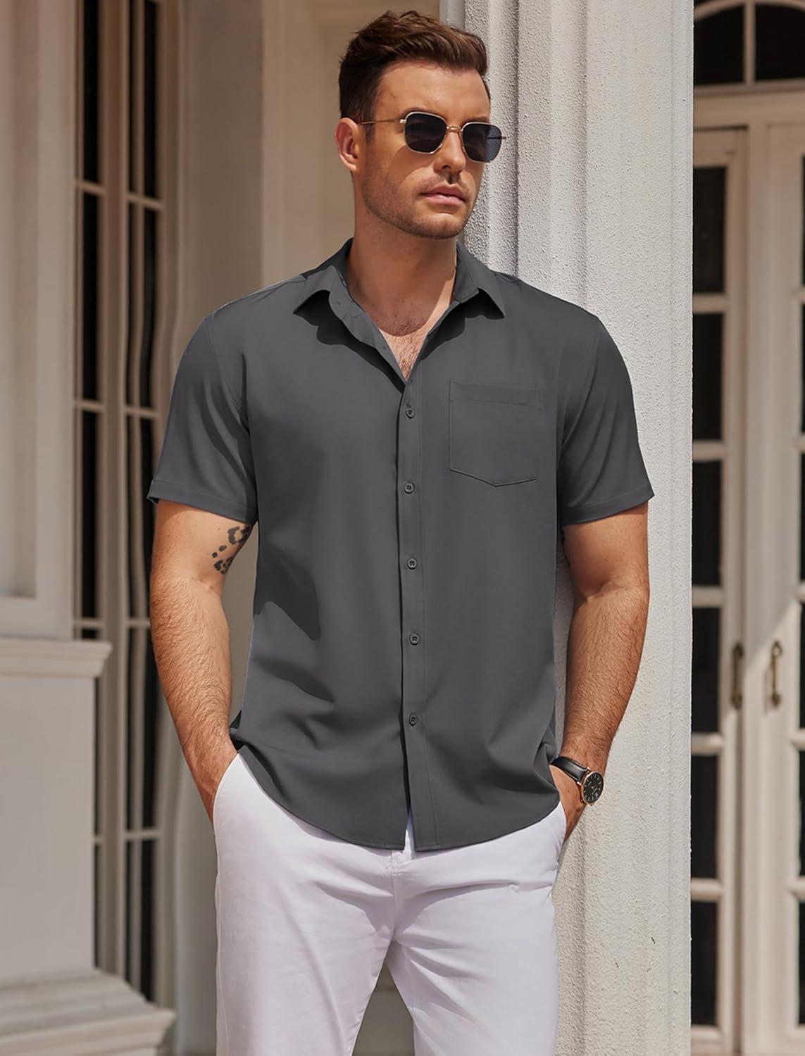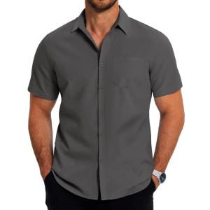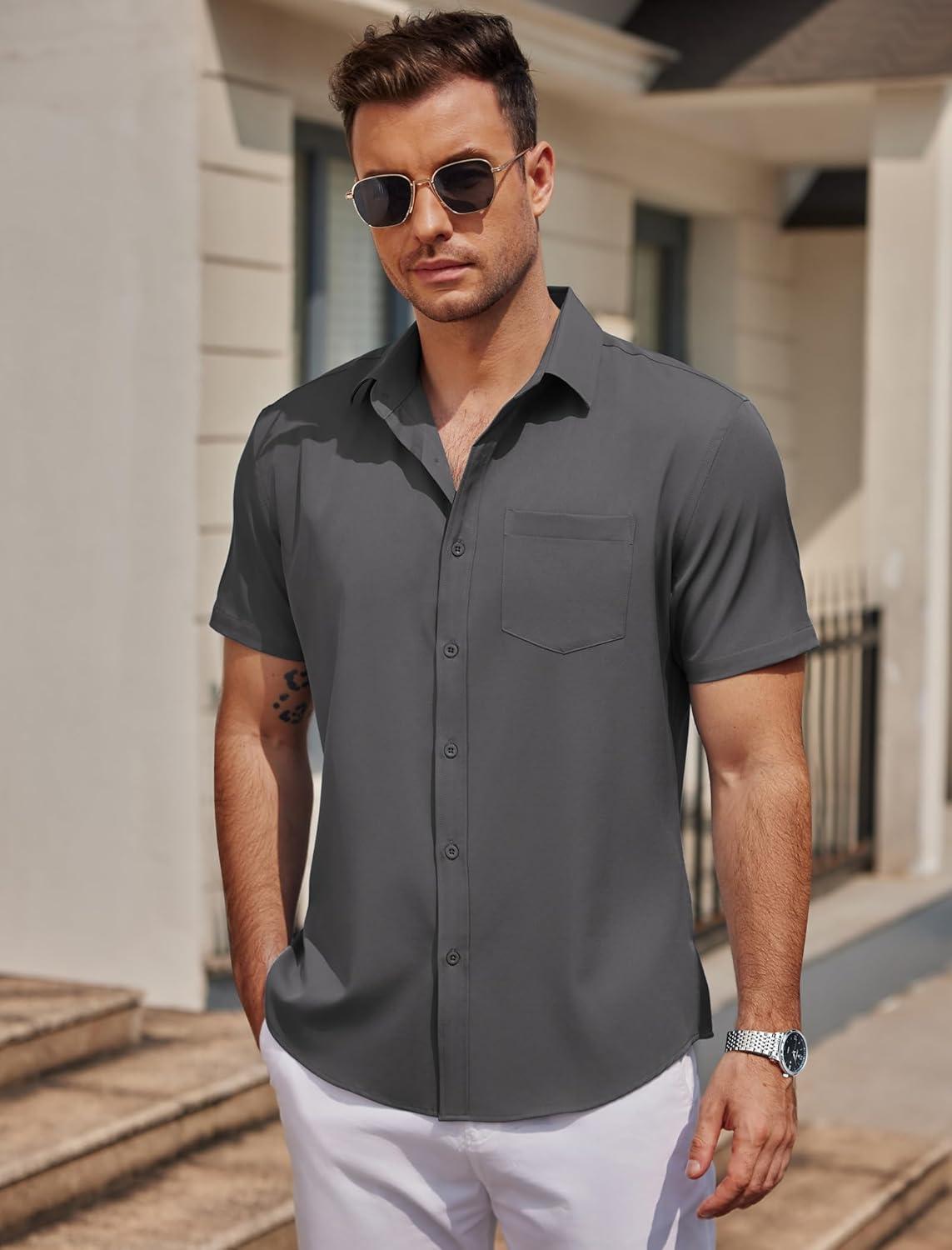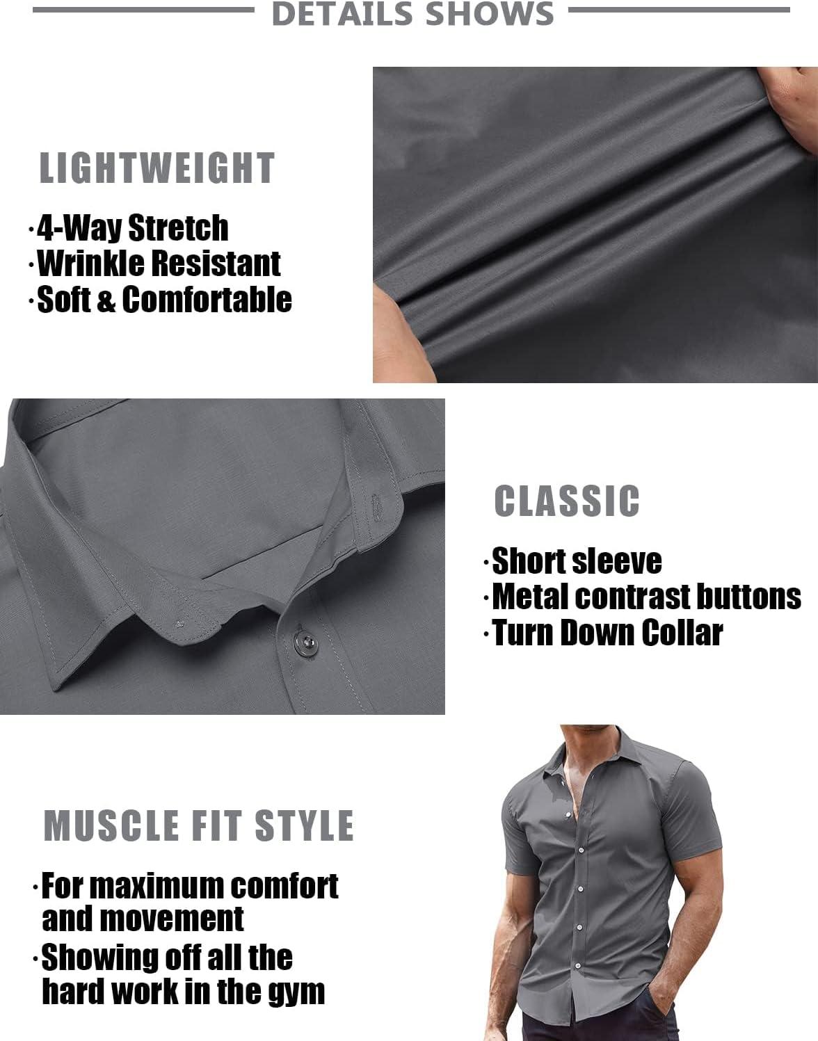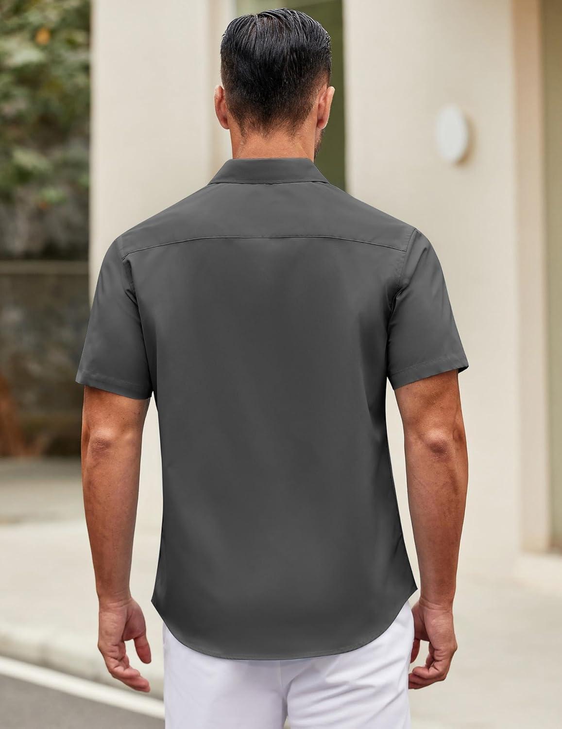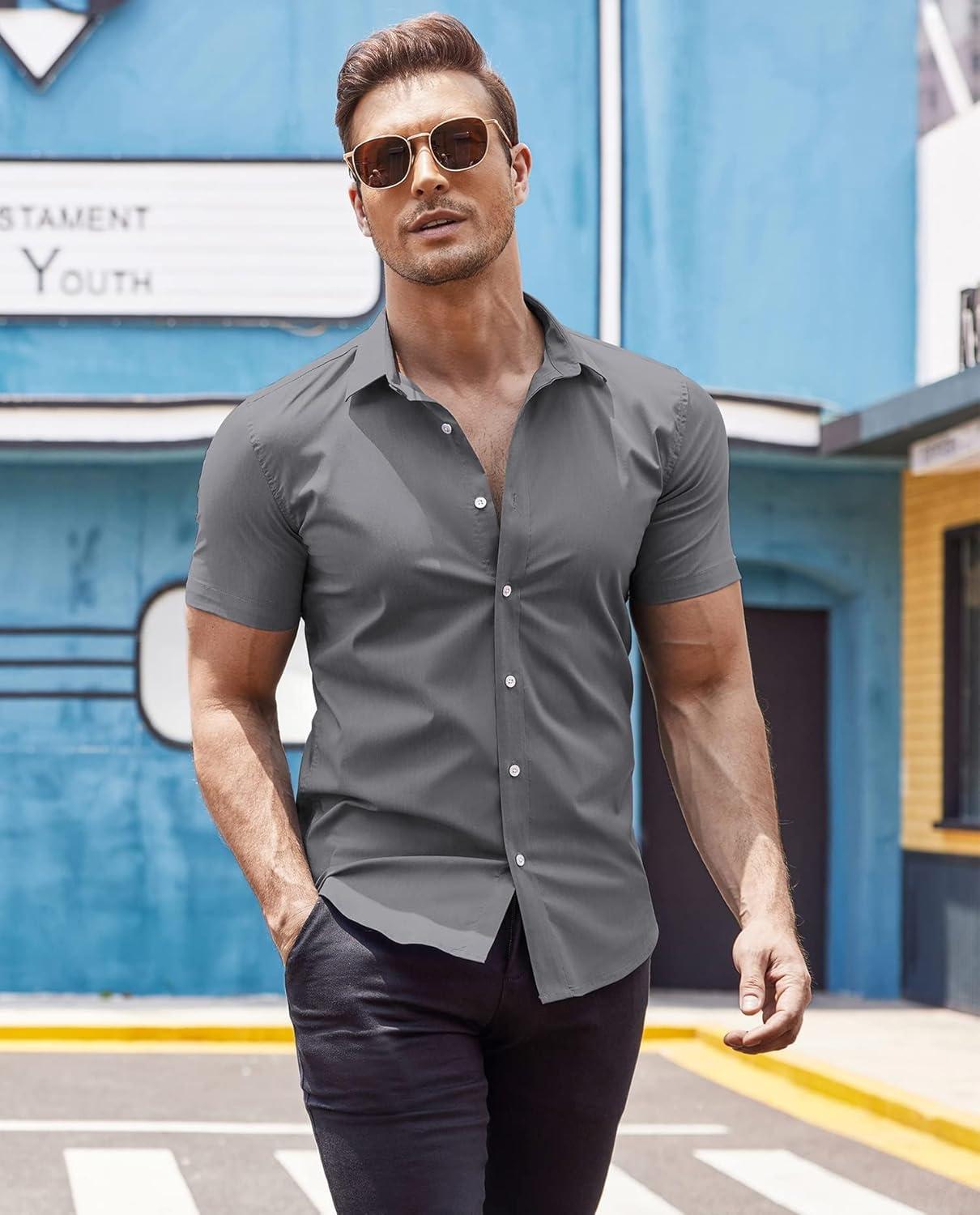 COOFANDY Men’s Muscle Fit Dress Shirts Wrinkle-Free Short Sleeve Casual Button Down Shirt(Dark Gray)