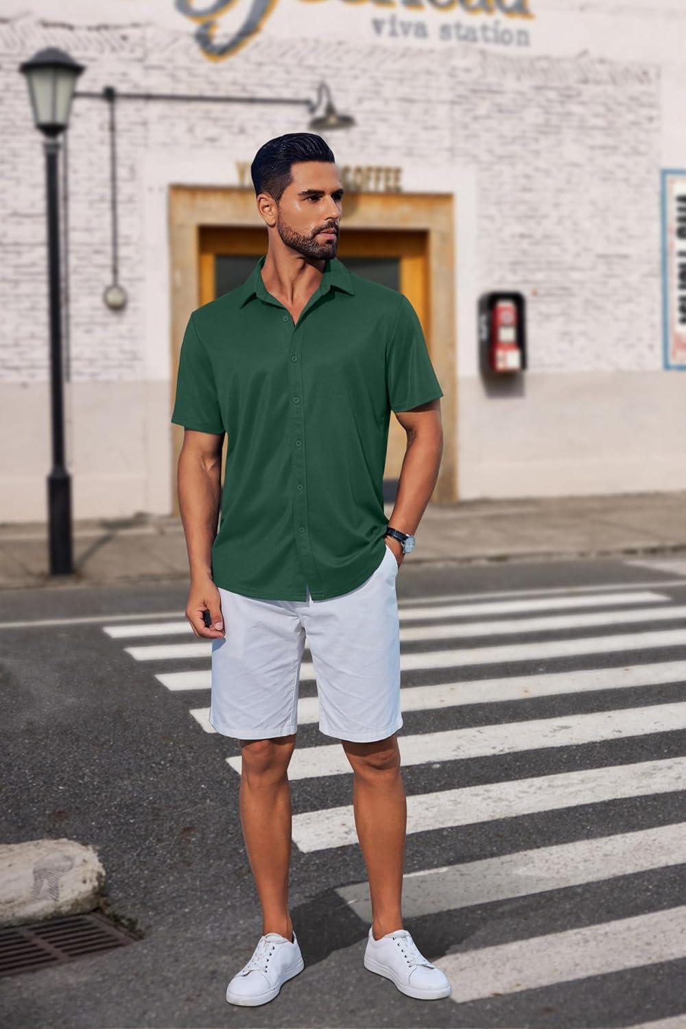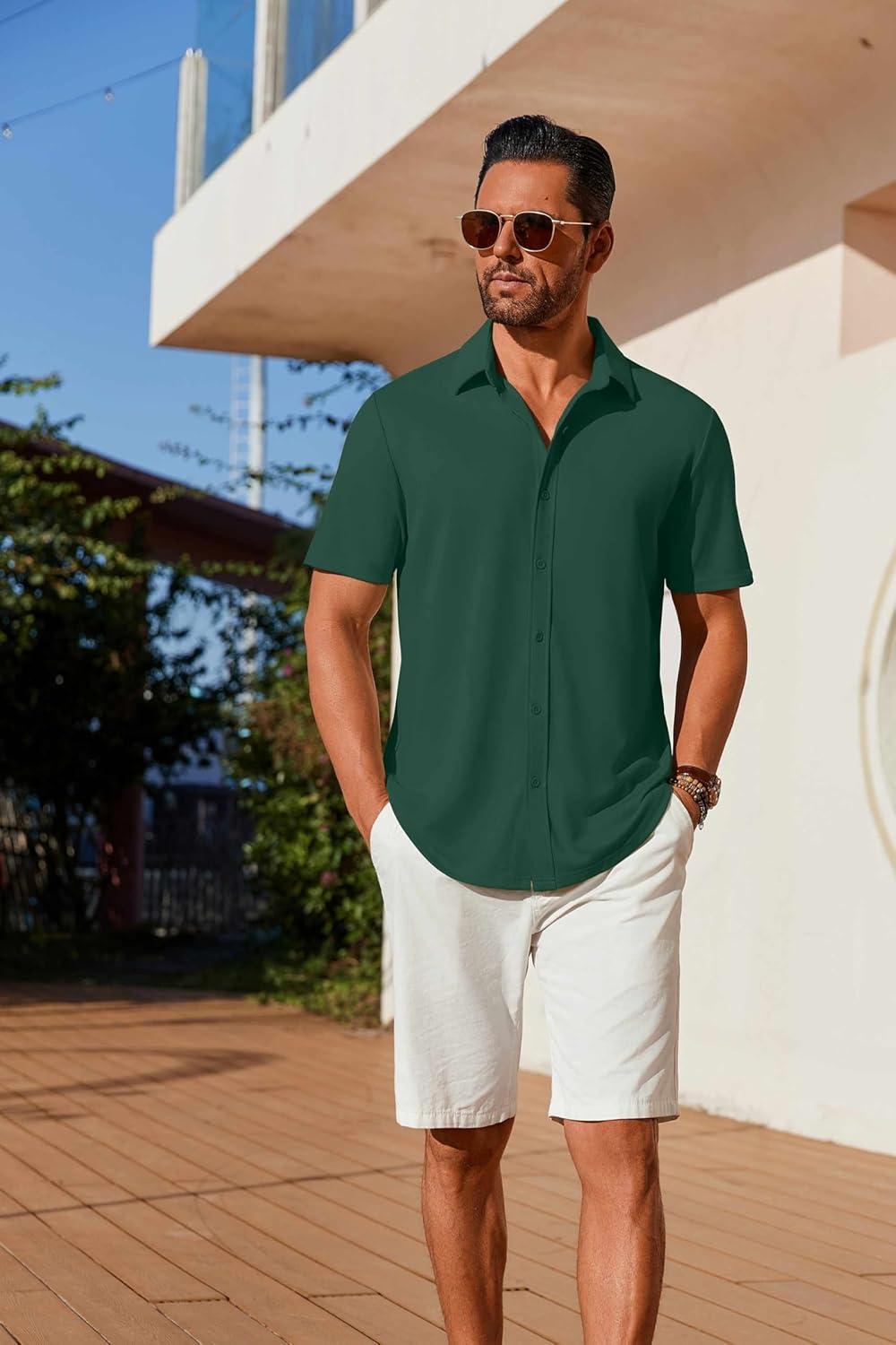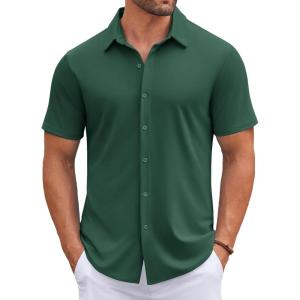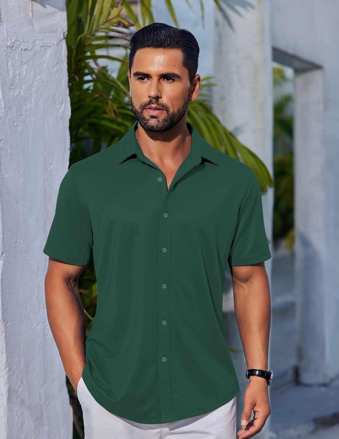 COOFANDY Men’s Muscle Fit Dress Shirts Wrinkle-Free Short Sleeve Casual Button Down Shirt(Evergreen)