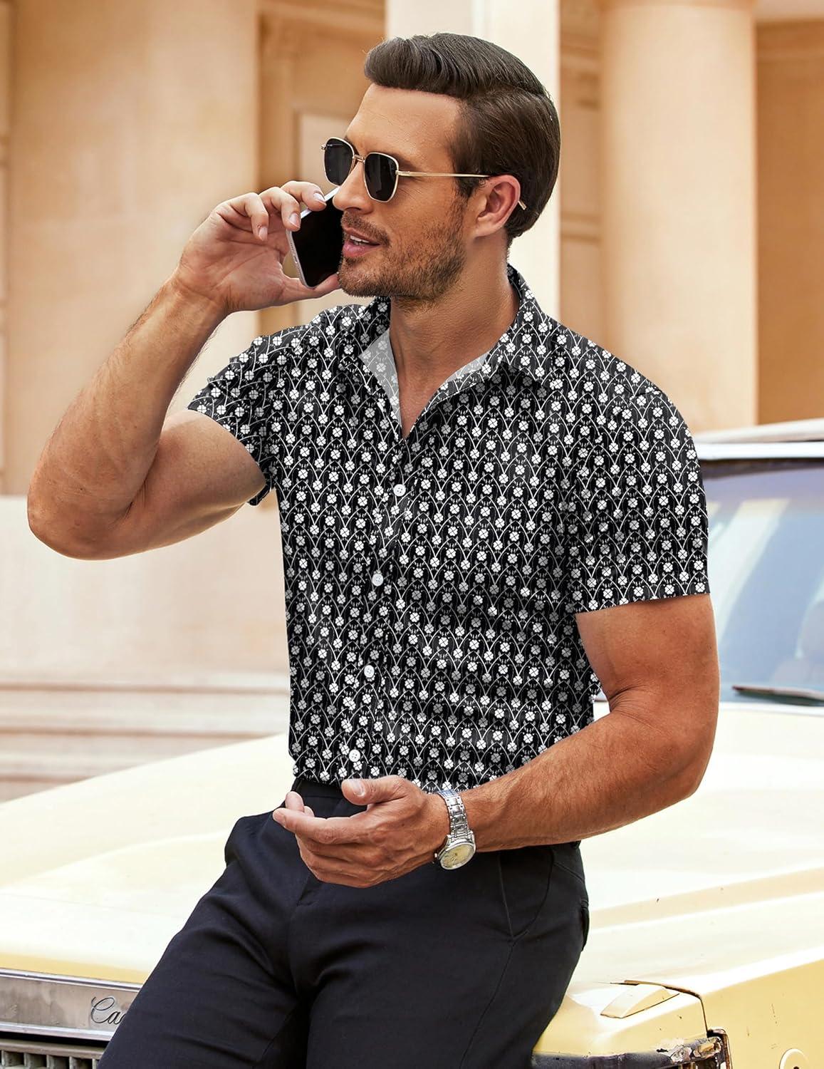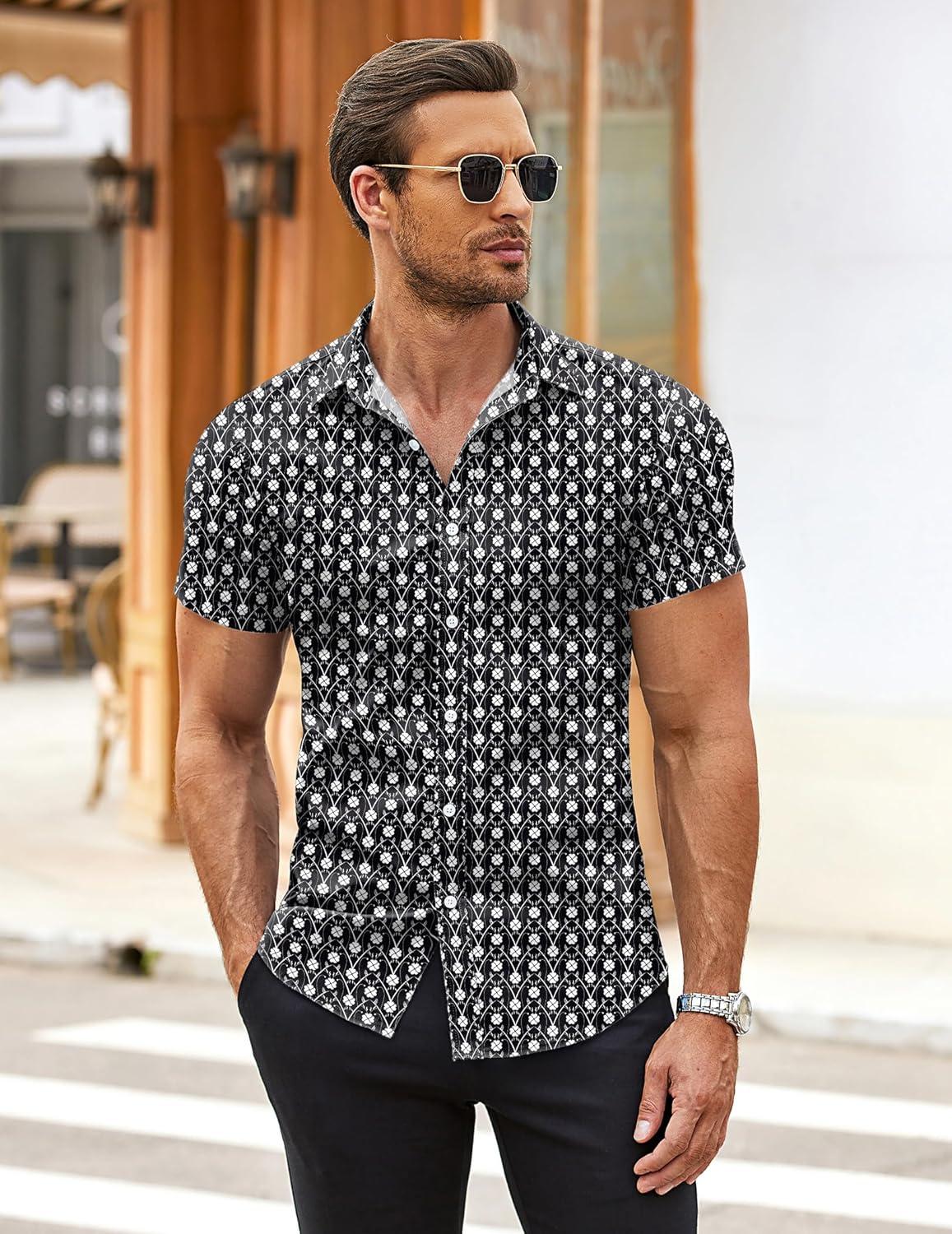 COOFANDY Men’s Muscle Fit Dress Shirts Wrinkle-Free Short Sleeve Casual Button Down Shirt(Floral Black-2)