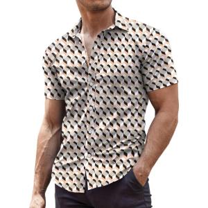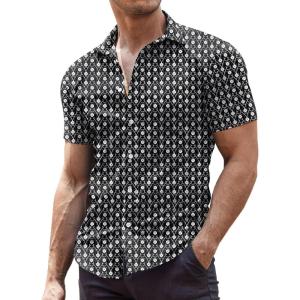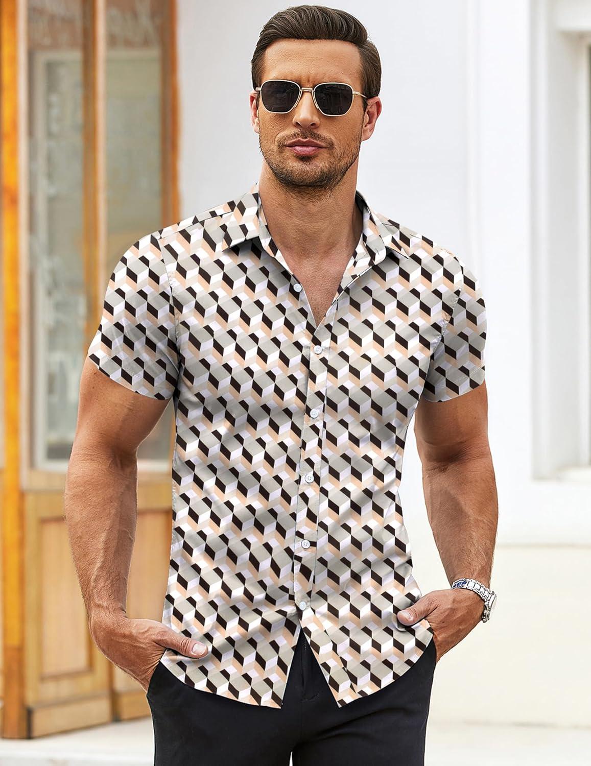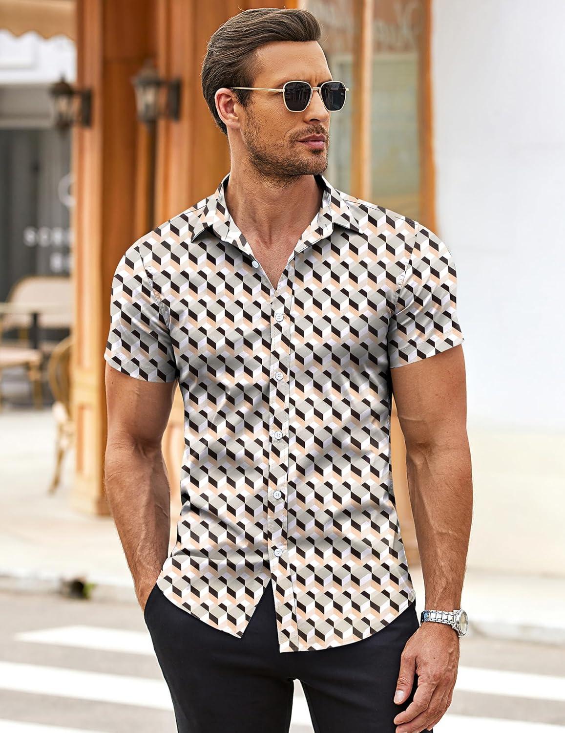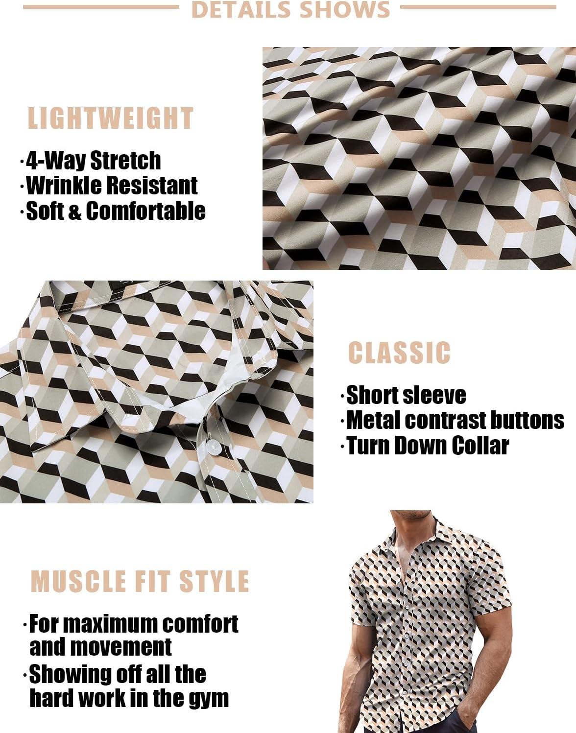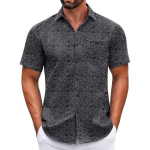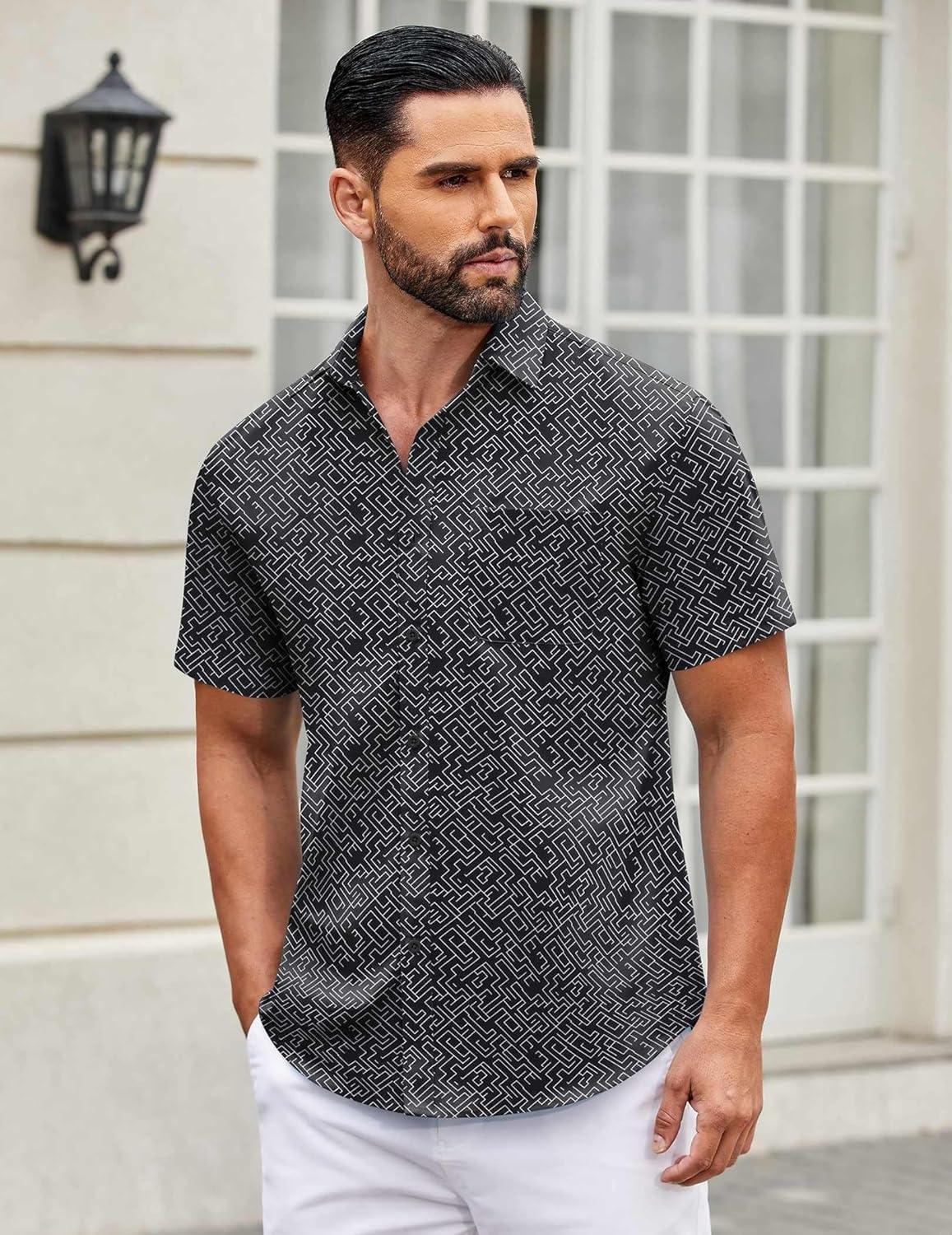 COOFANDY Men’s Muscle Fit Dress Shirts Wrinkle-Free Short Sleeve Casual Button Down Shirt(Geometry Black)