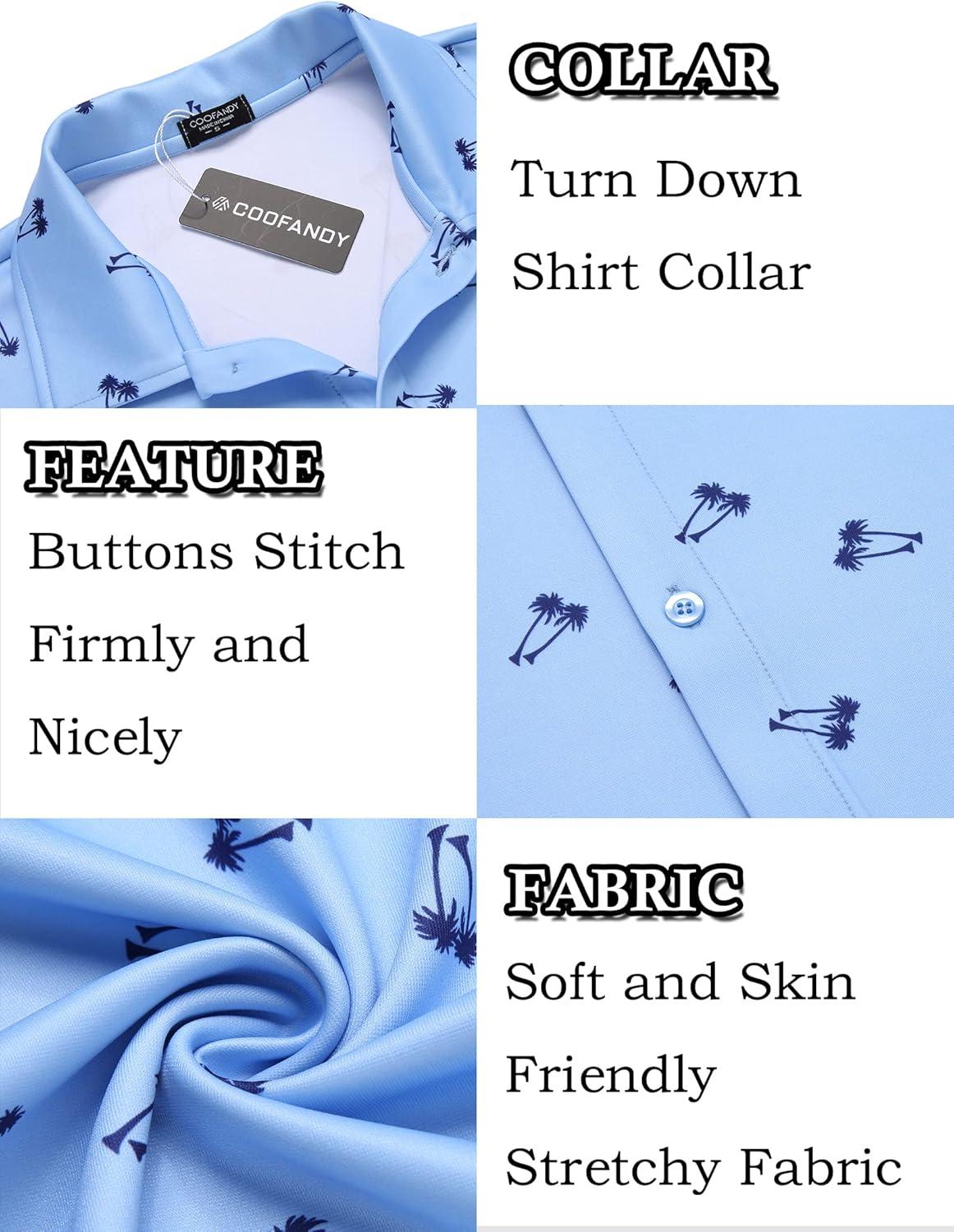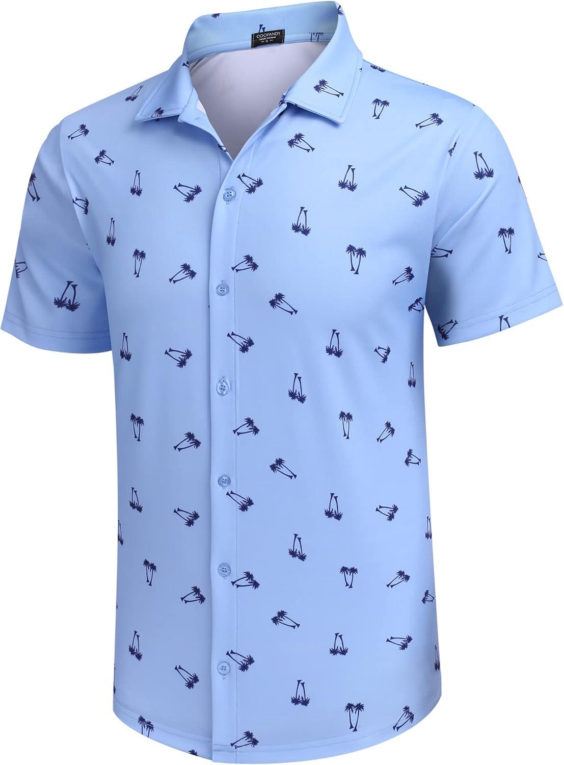 COOFANDY Men’s Muscle Fit Dress Shirts Wrinkle-Free Short Sleeve Casual Button Down Shirt(Light Blue Palm Tree)