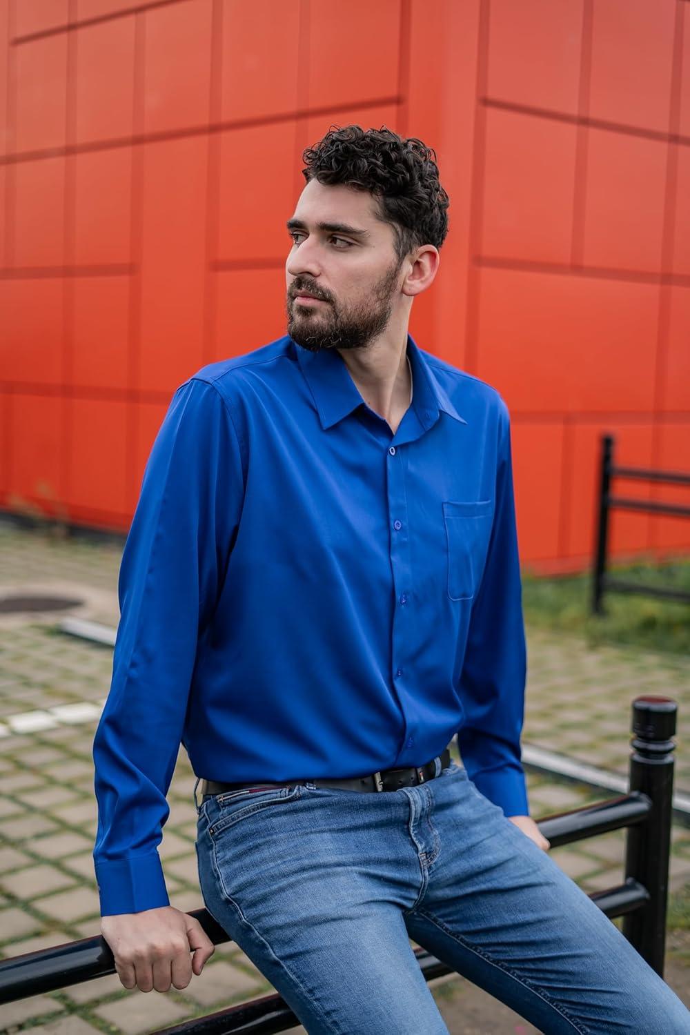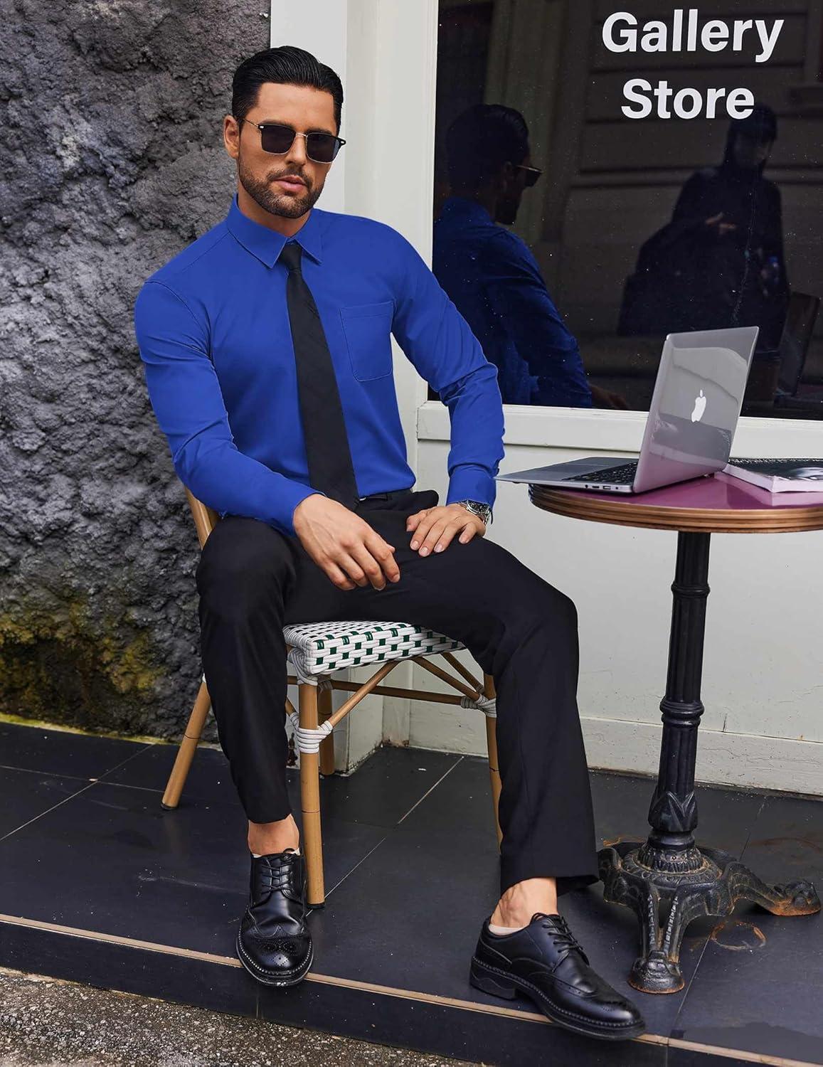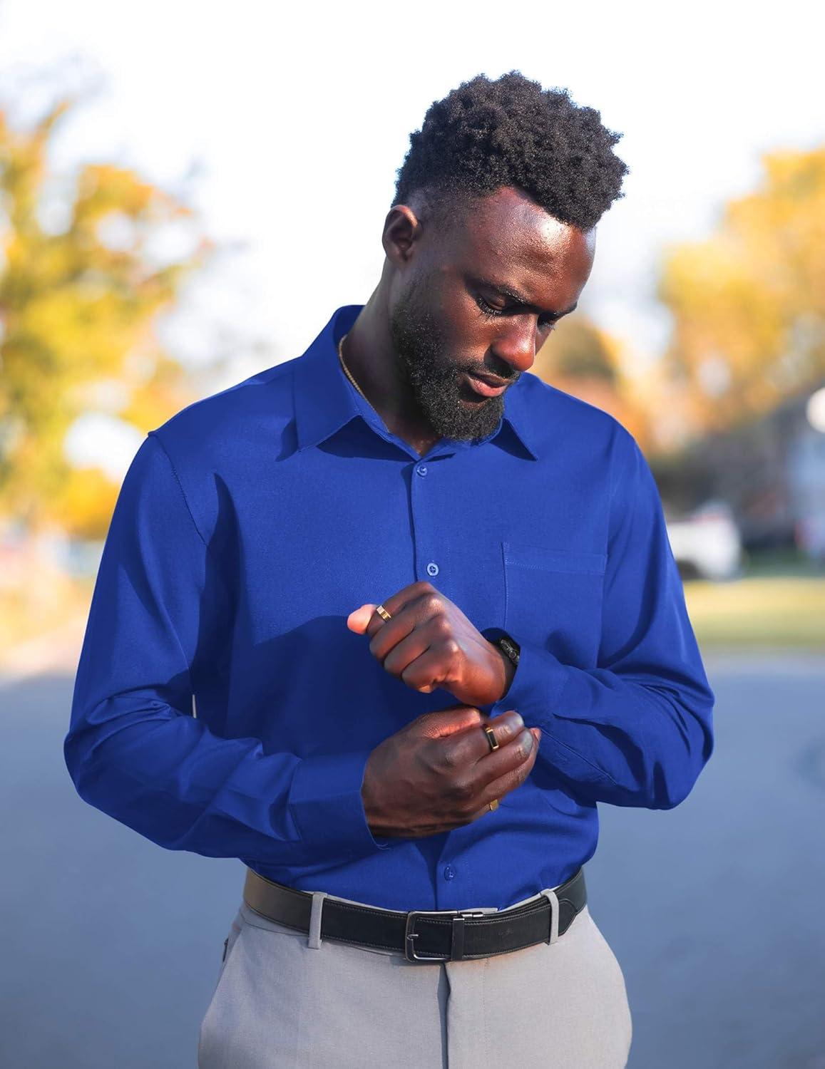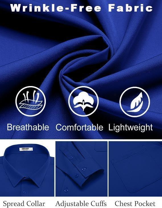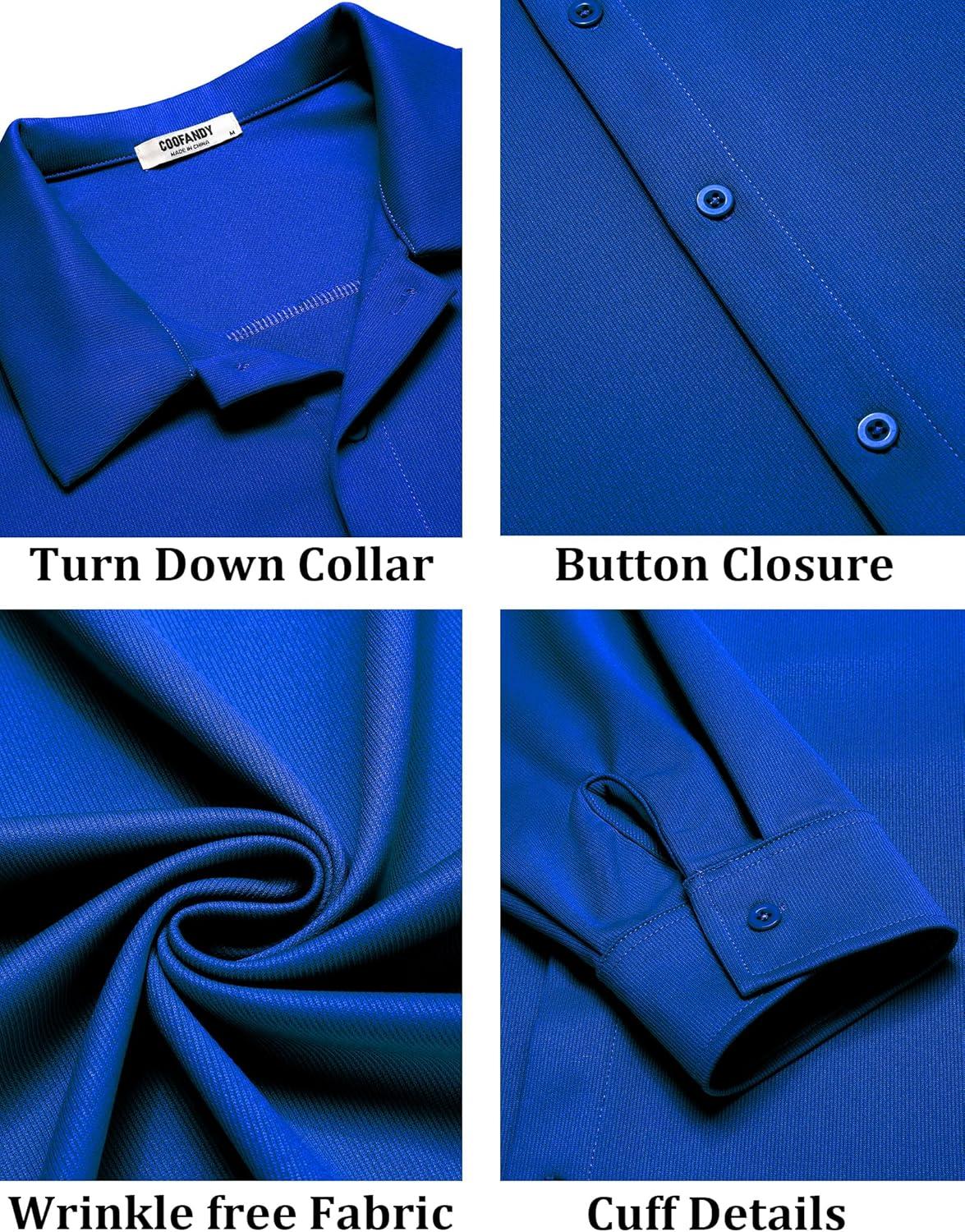 COOFANDY Mens Dress Shirts Wrinkle Free Long Sleeve Button Down Shirts Formal Business Shirt(Royal Blue)