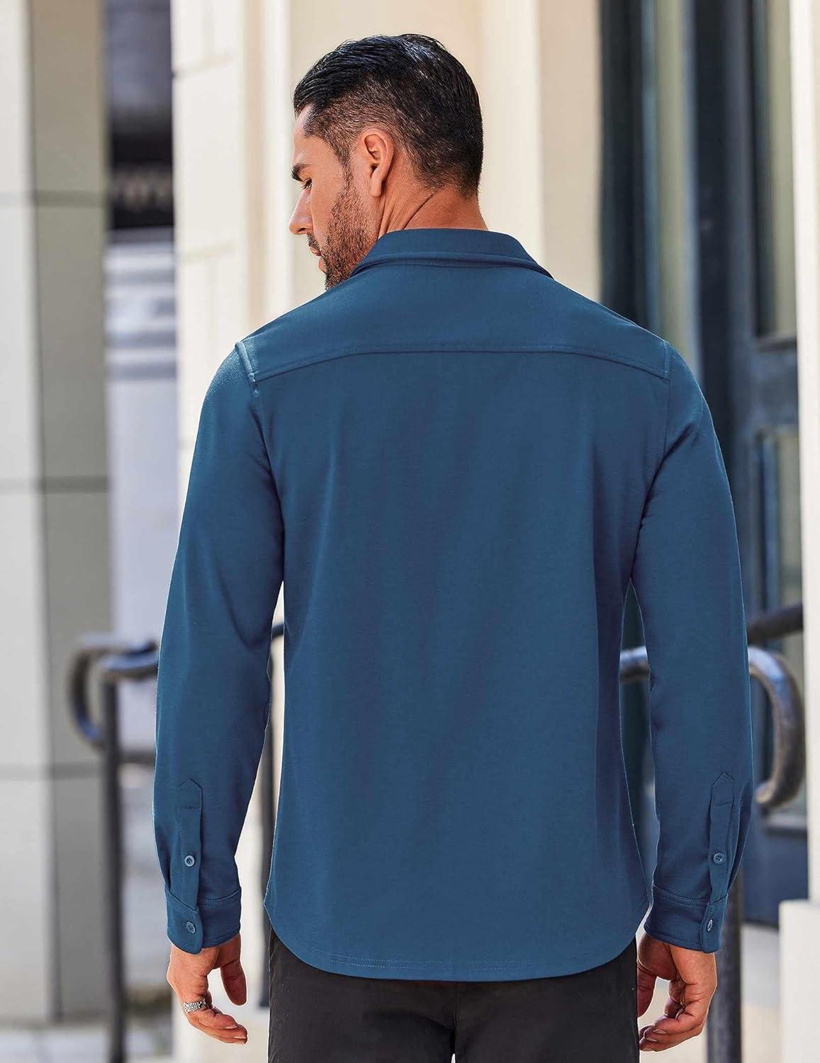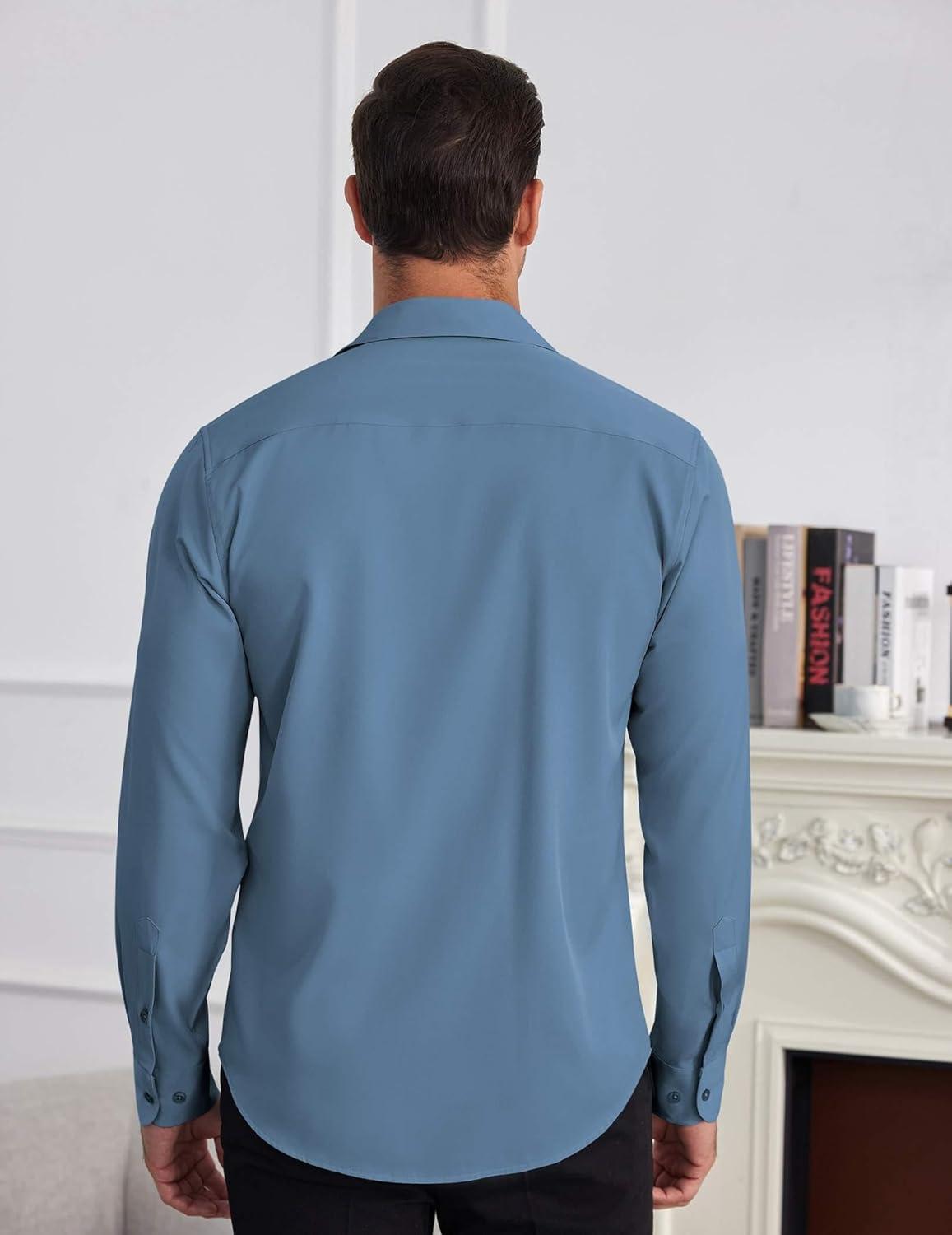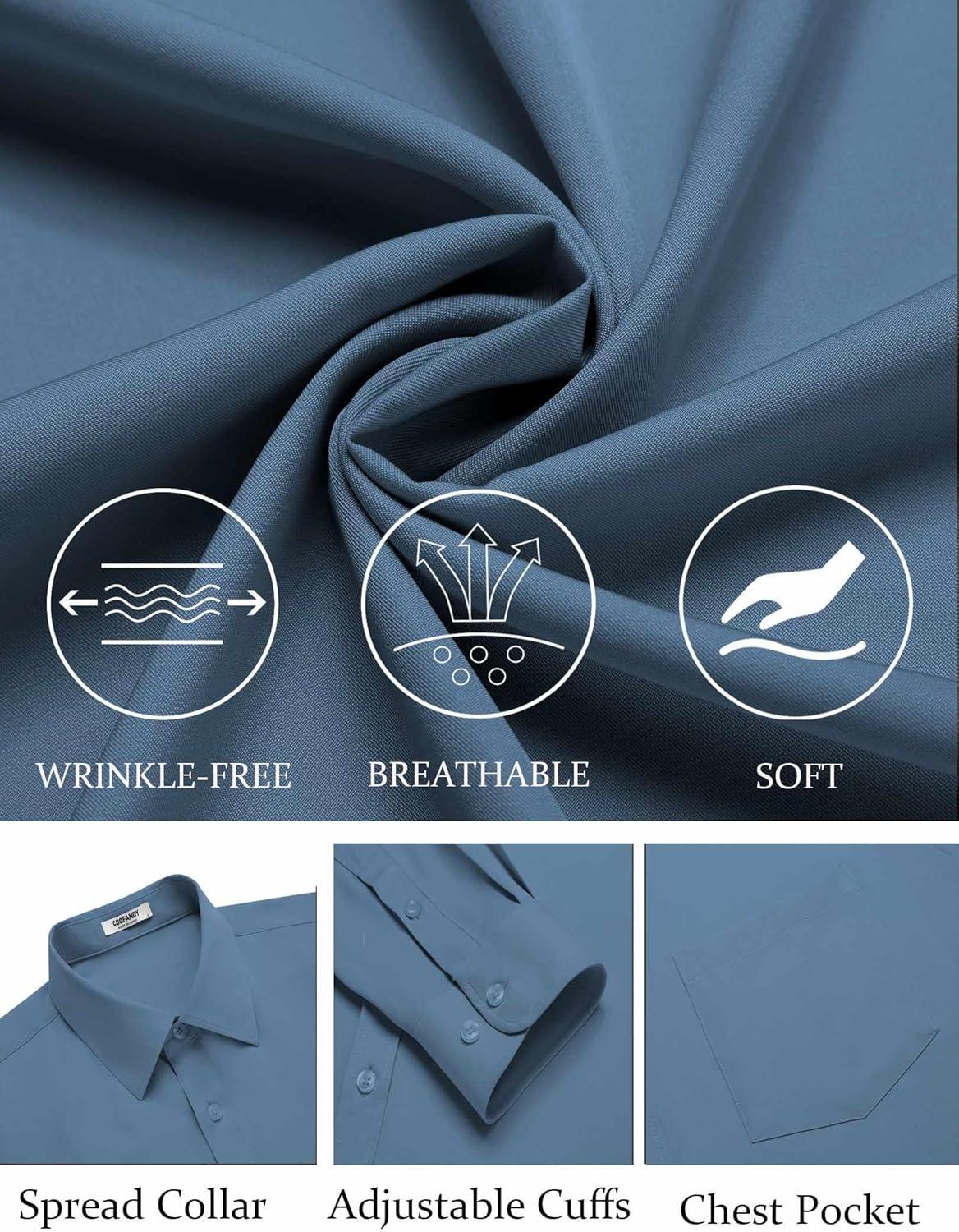COOFANDY Mens Dress Shirts Wrinkle Free Long Sleeve Button Down Shirts Formal Business Shirt(Slate Blue)