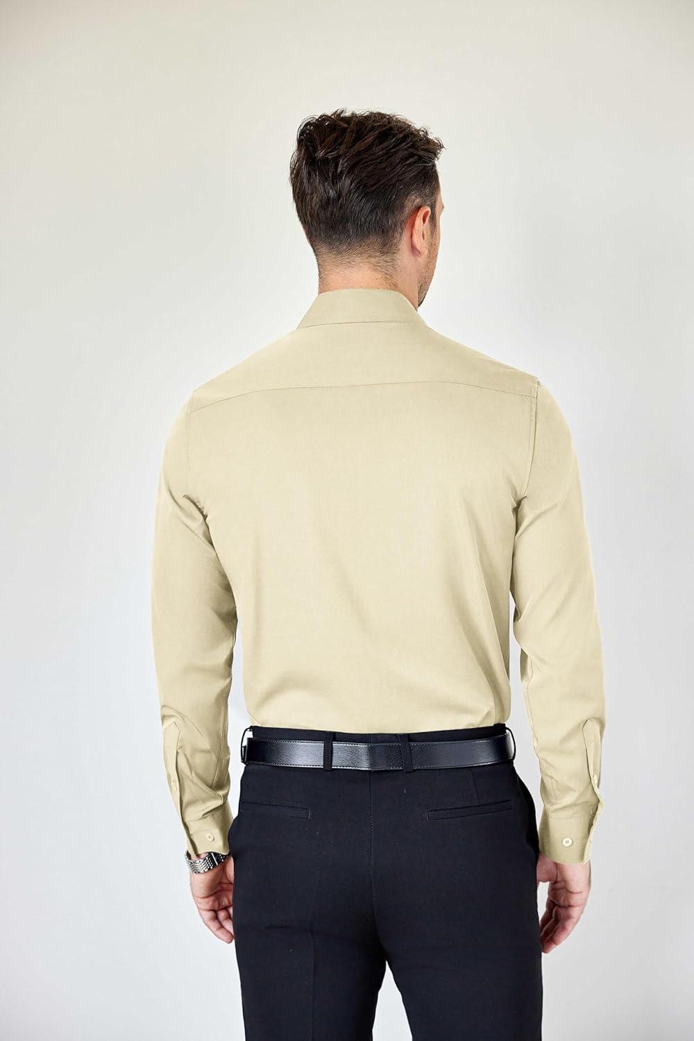 COOFANDY Mens Dress Shirts Wrinkle Free Long Sleeve Button Down Shirts Formal Business Shirt(Stone)