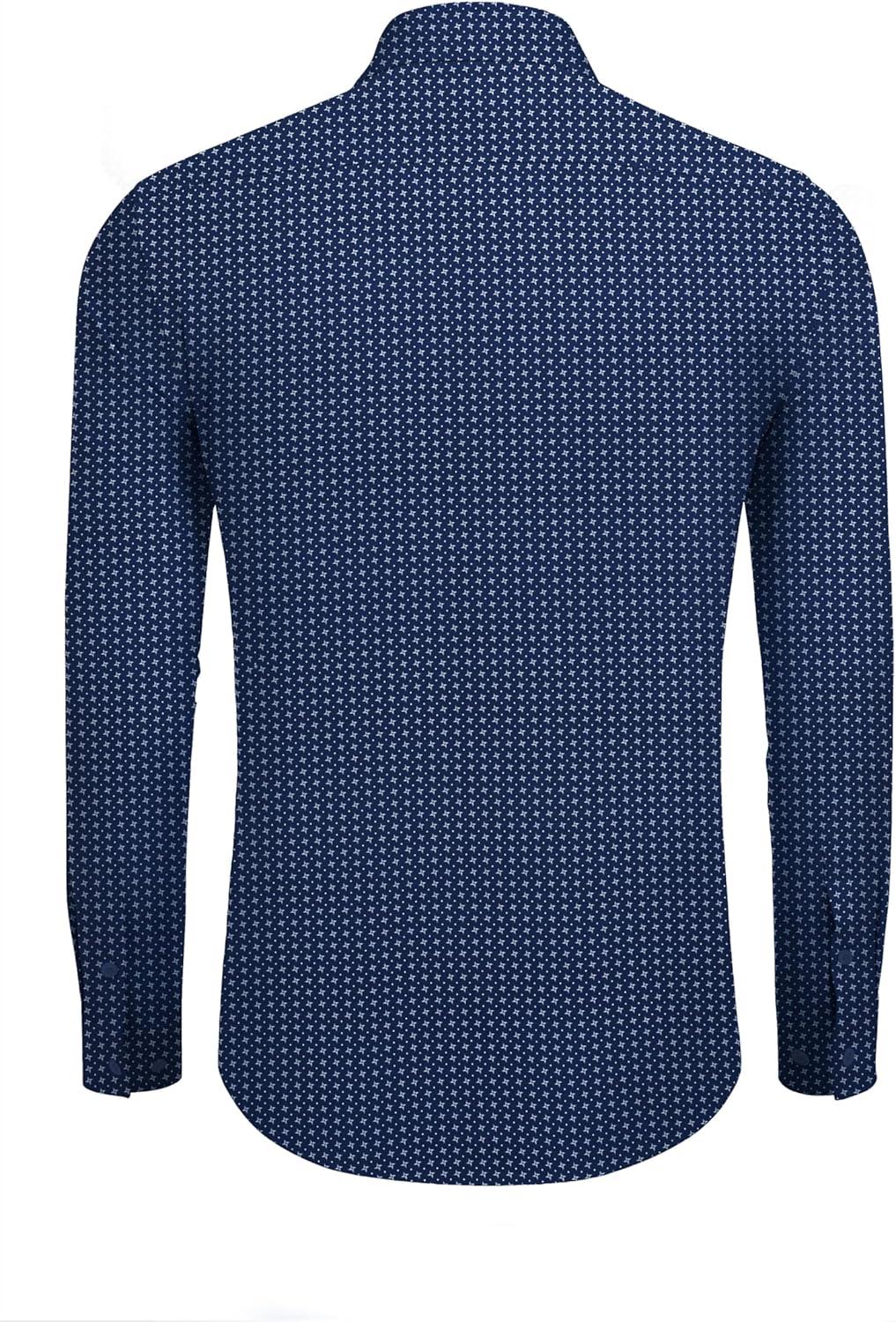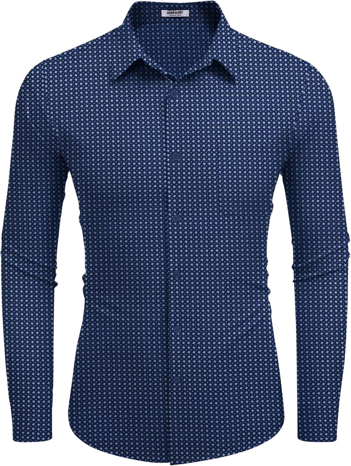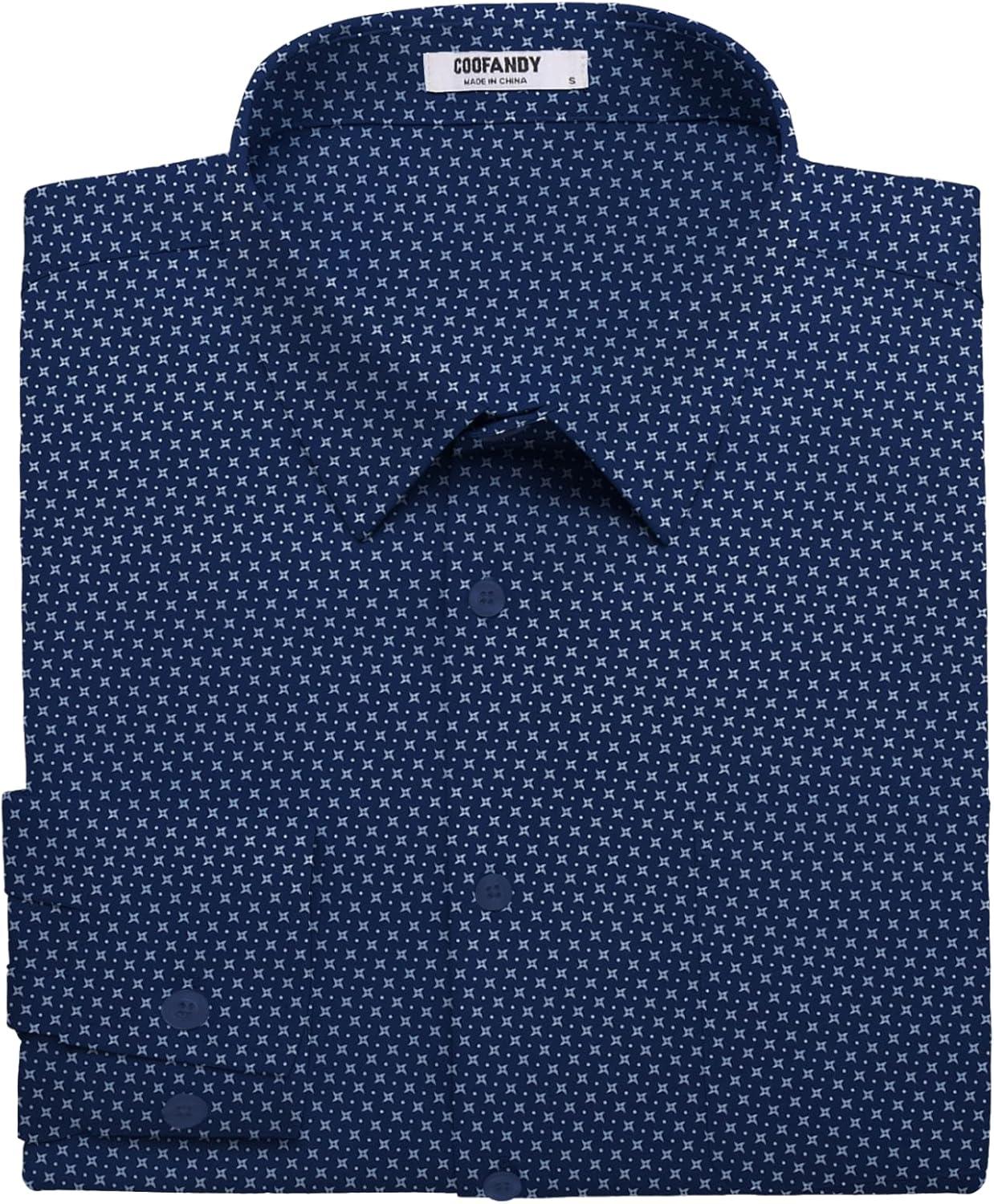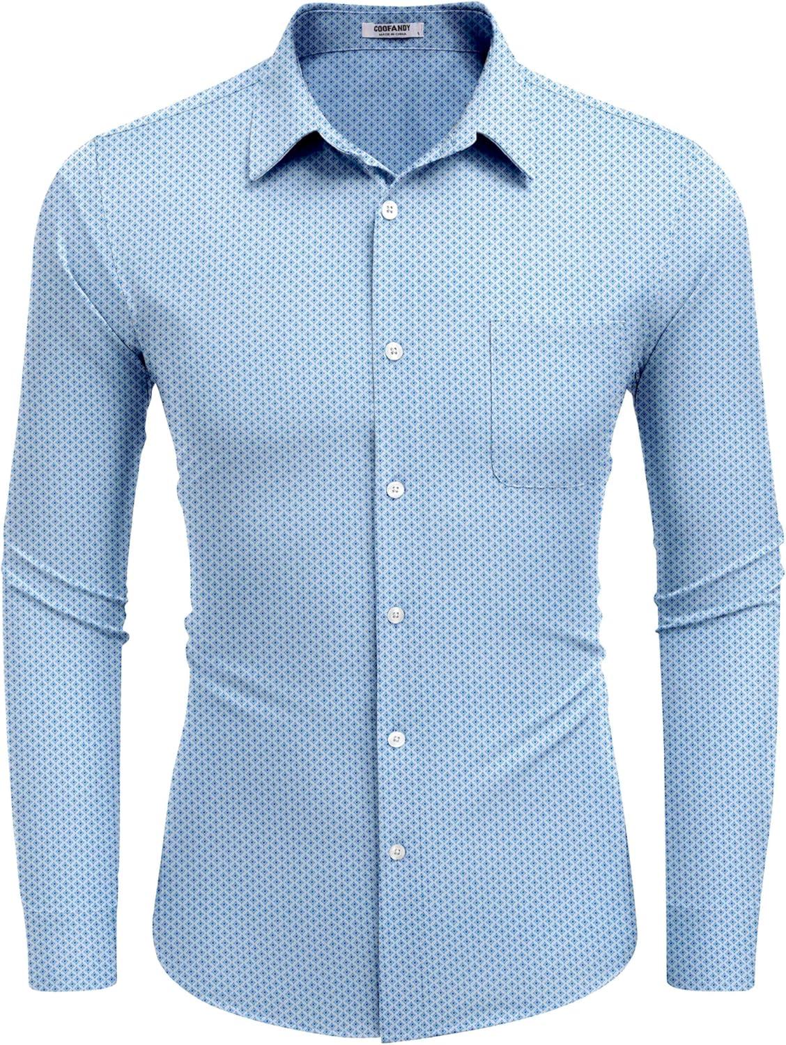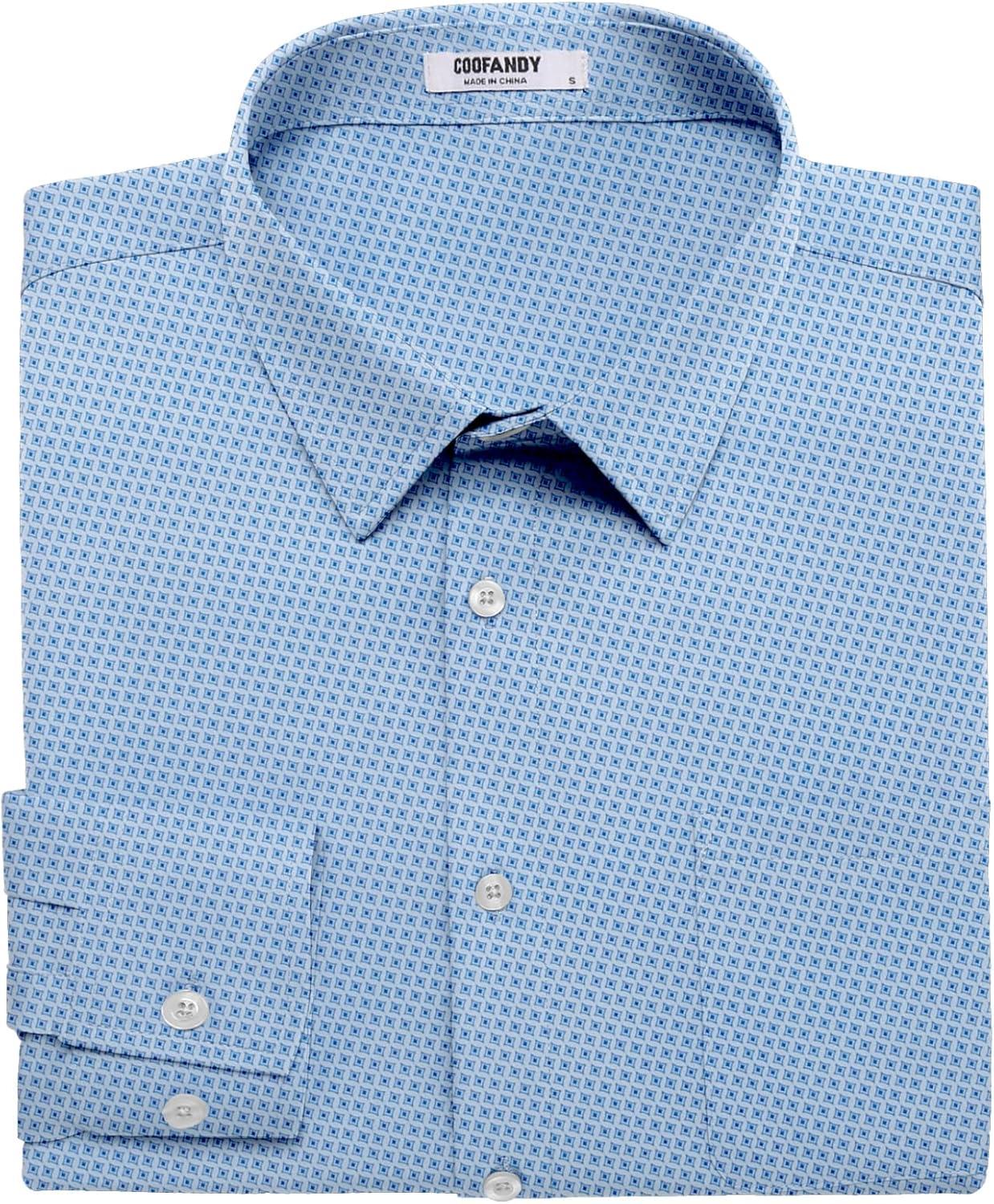COOFANDY Mens Dress Shirts Wrinkle Free Long Sleeve Button Down Shirts Formal Business Shirt(White Patterned Blue)