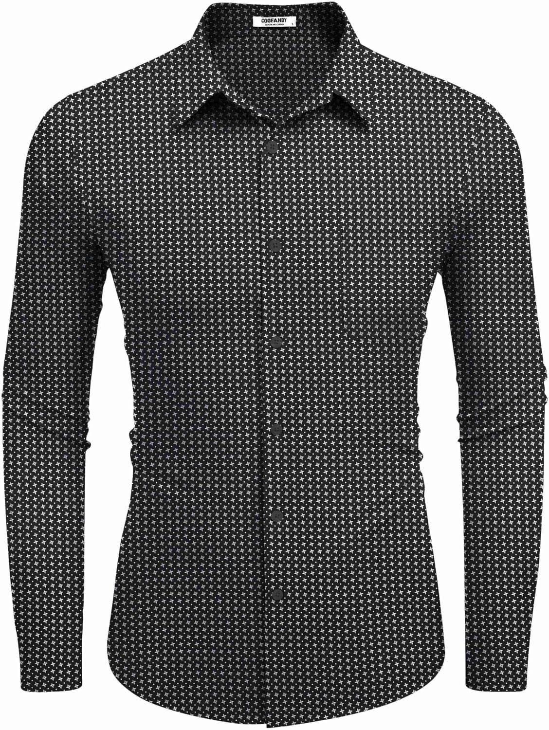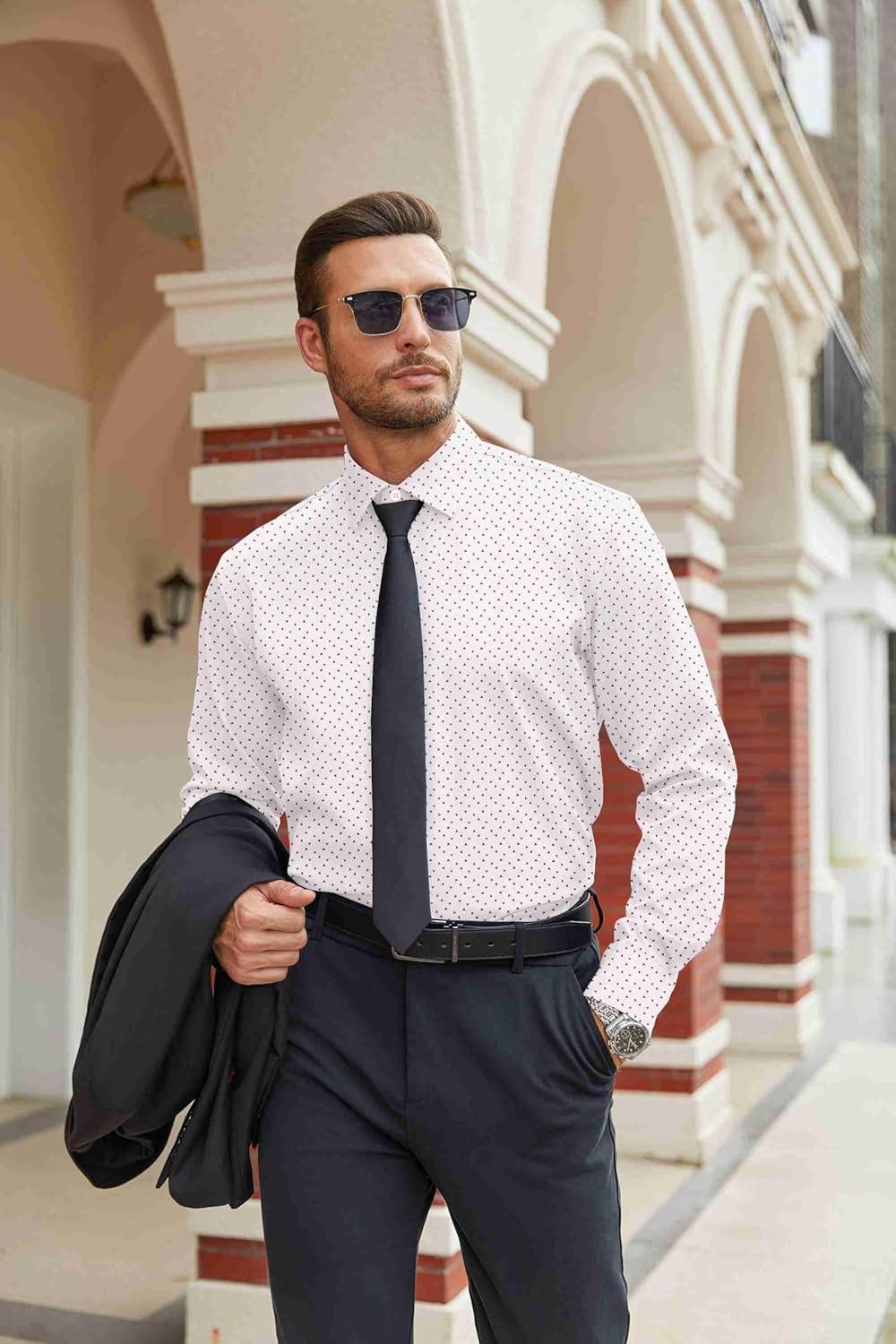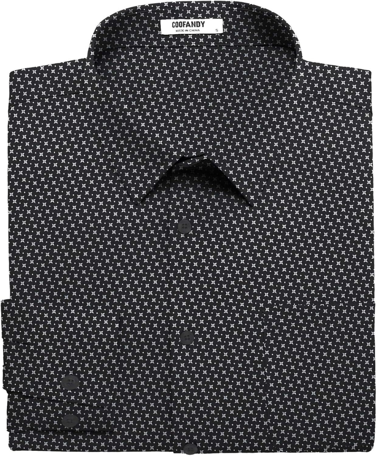 COOFANDY Mens Dress Shirts Wrinkle Free Long Sleeve Button Down Shirts Formal Business Shirt(White Patterned Black)