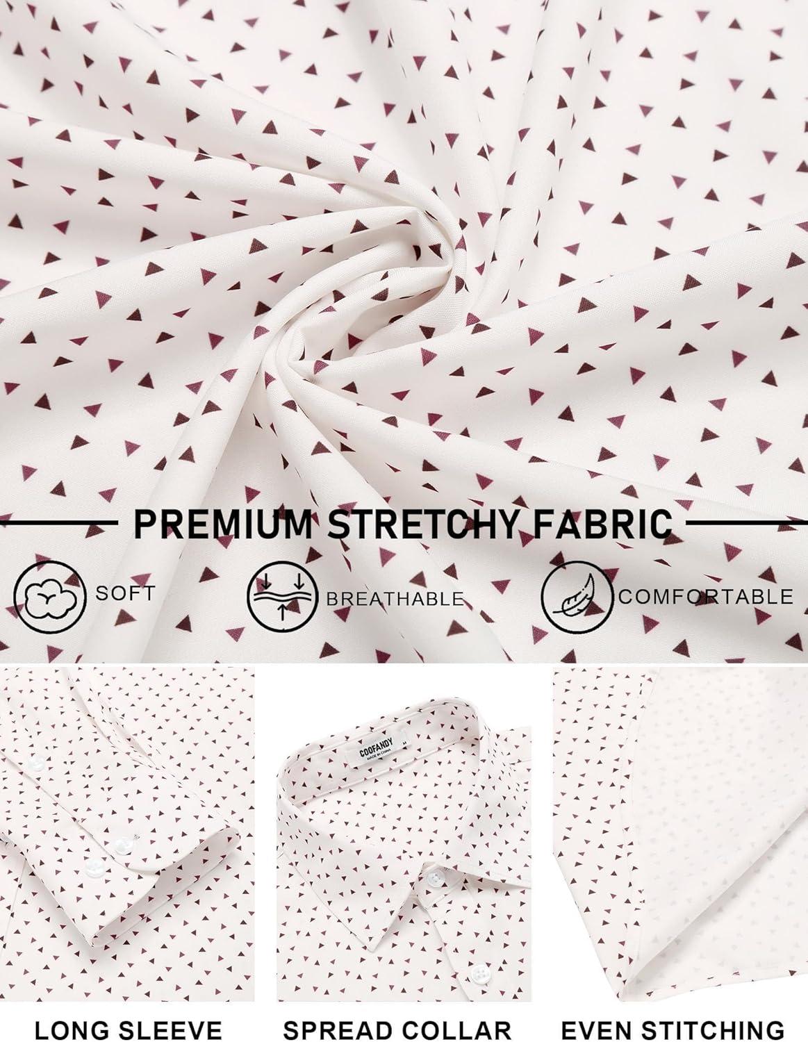 COOFANDY Mens Dress Shirts Wrinkle Free Long Sleeve Button Down Shirts Formal Business Shirt(White Geometric Patterns)