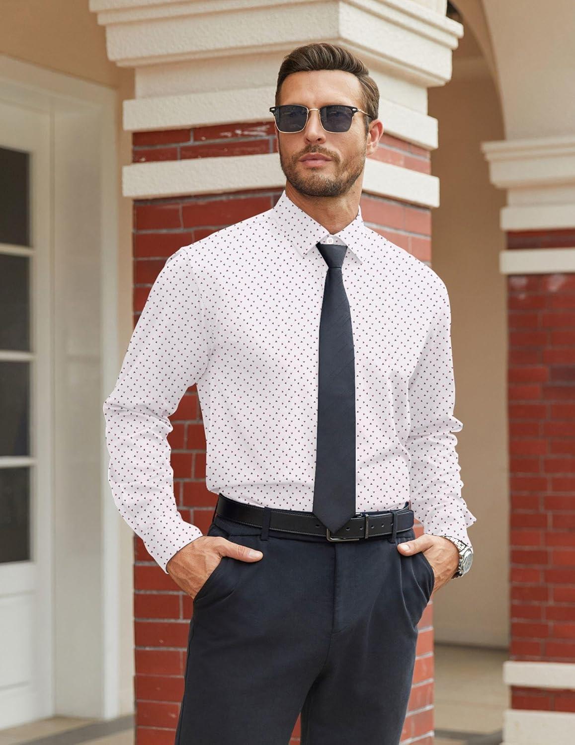 COOFANDY Mens Dress Shirts Wrinkle Free Long Sleeve Button Down Shirts Formal Business Shirt(White-geometric Patterns)