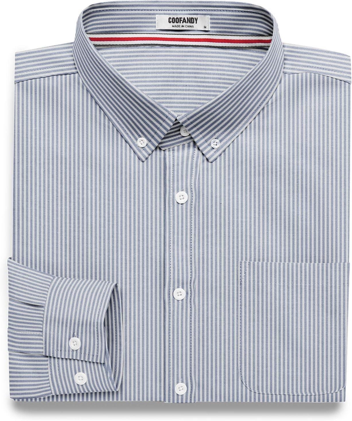 COOFANDY Mens Dress Shirts Wrinkle Free Long Sleeve Button Down Shirts Formal Business Shirt(White-blue Stripe)