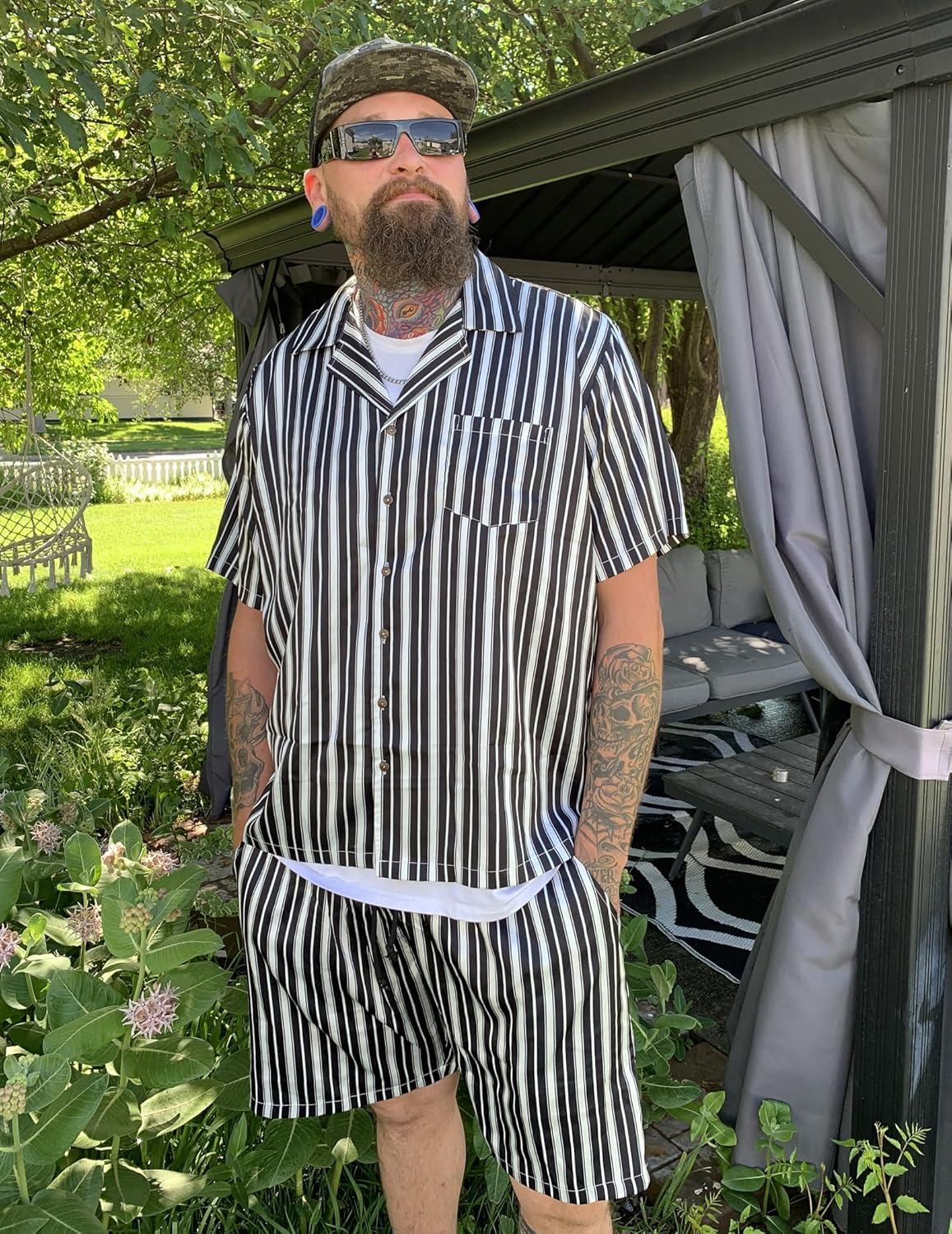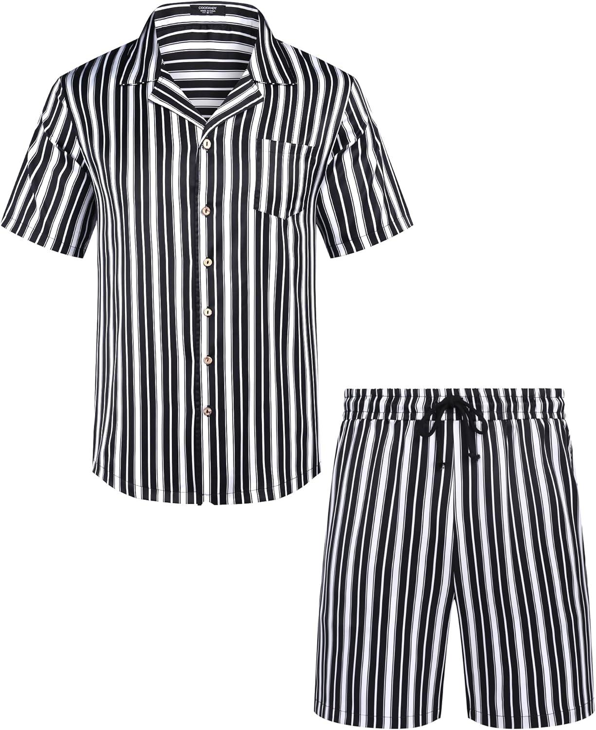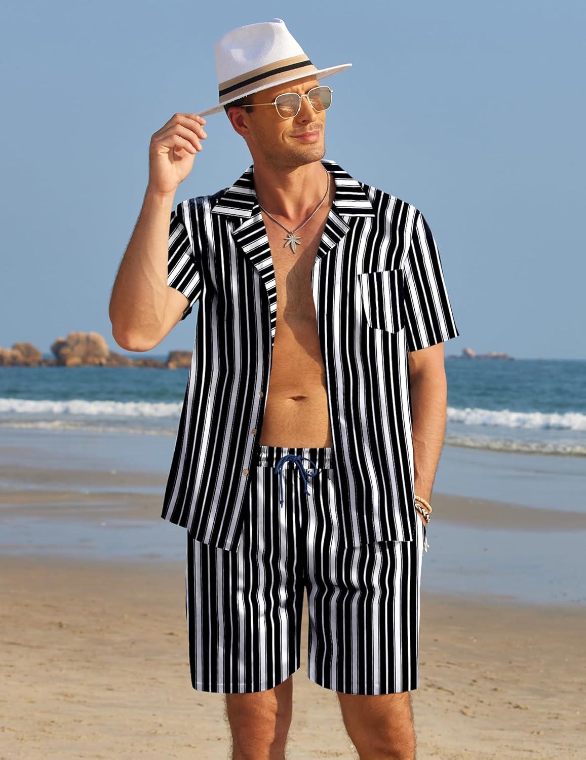 COOFANDY Mens Hawaiian Shirt and Shorts Set 2 Piece Vacation Outfits Floral Button Down Shirt(Black)
