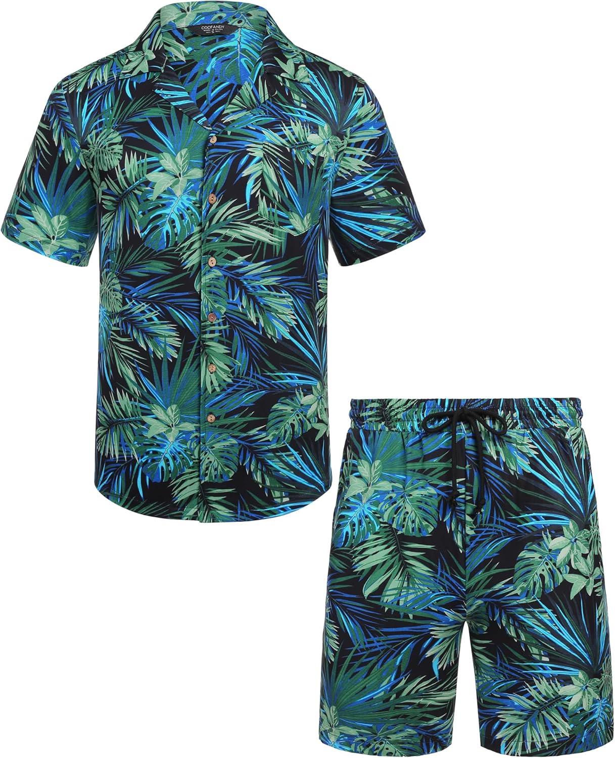 COOFANDY Mens Hawaiian Shirt and Shorts Set 2 Piece Vacation Outfits Floral Button Down Shirt(Multicolor-green)