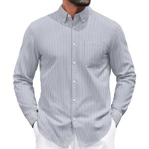 COOFANDY Mens Dress Shirts Wrinkle Free Long Sleeve Button Down Shirts Formal Business Shirt(White-navy Blue Stripe)