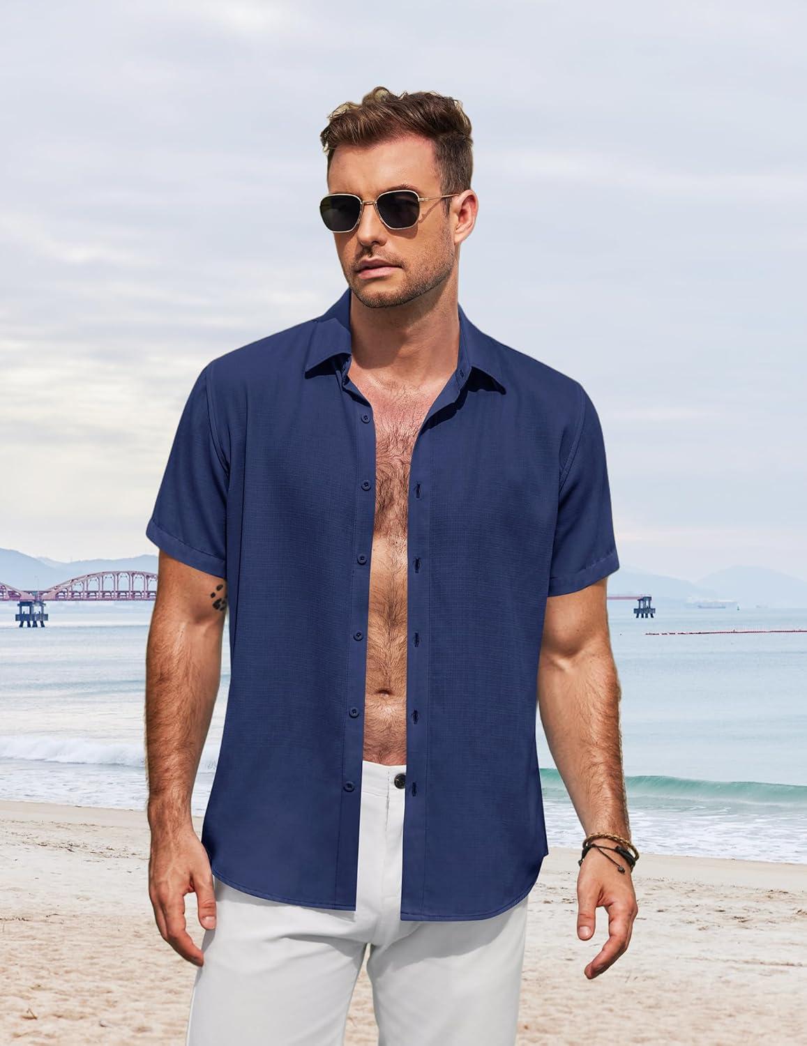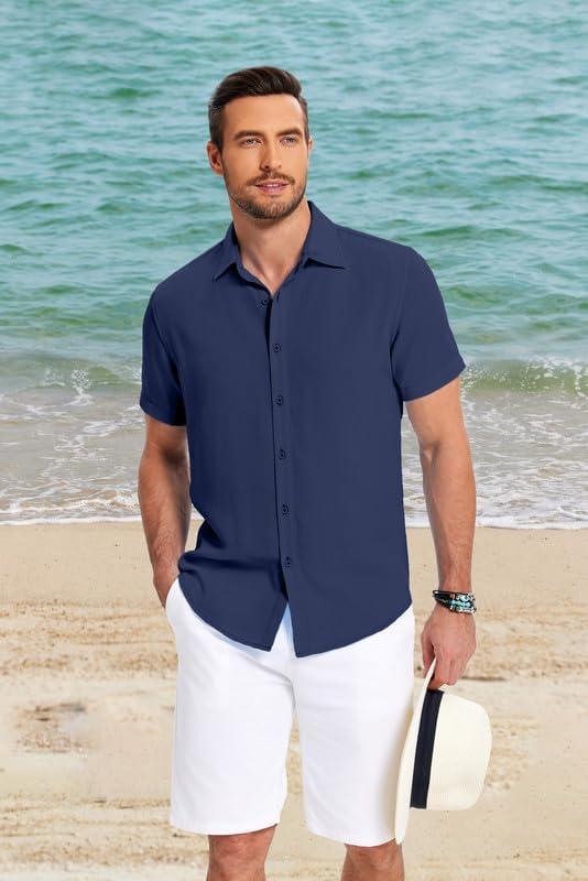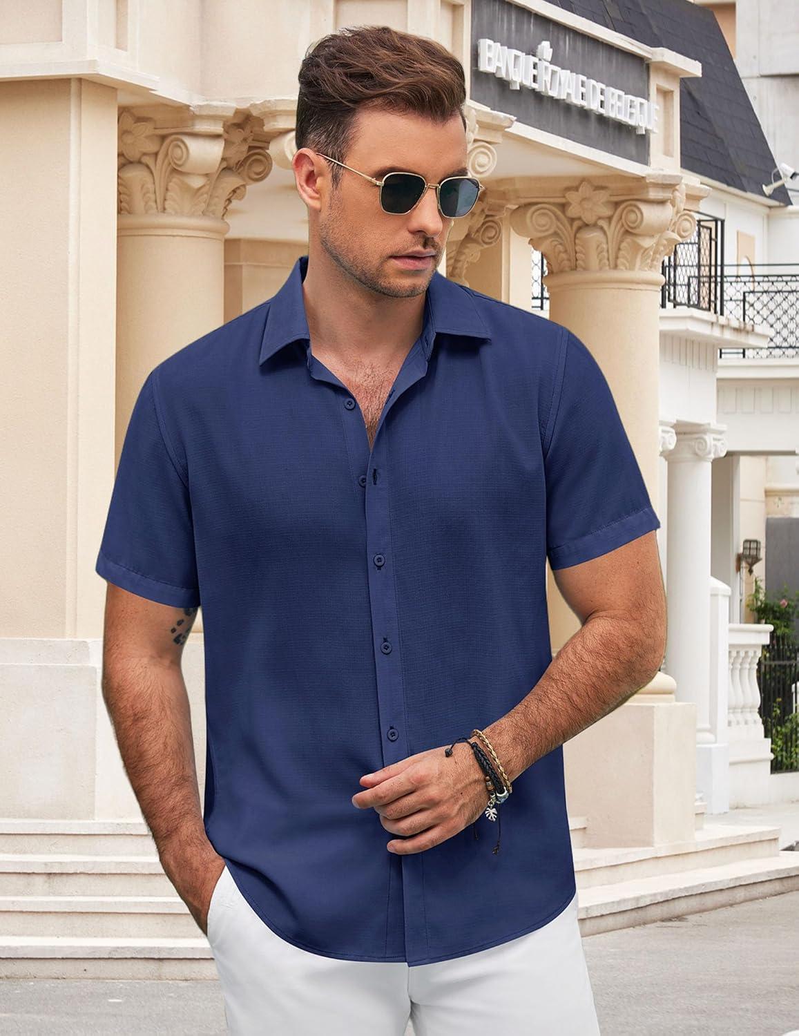 COOFANDY Men’s Button Down Shirt Short Sleeve Casual Shirts for Summer Beach Vacation Shirts