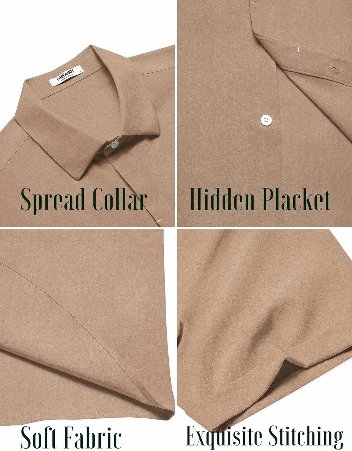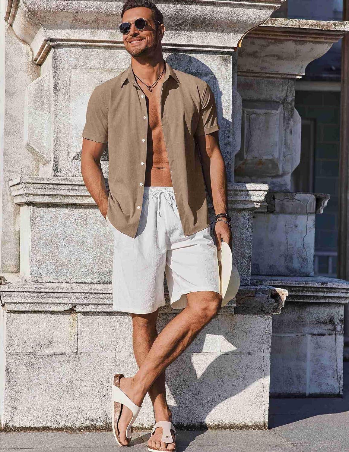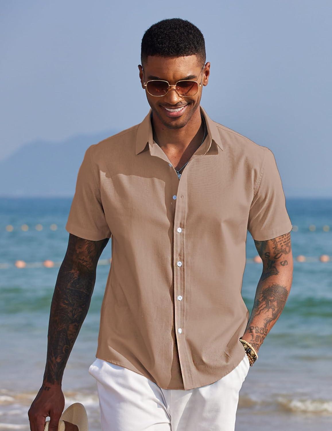 COOFANDY Mens Button Down Shirts Short Sleeve Casual Summer Beach Shirts for Men Vacation Wedding Linen Shirt(Khaki)