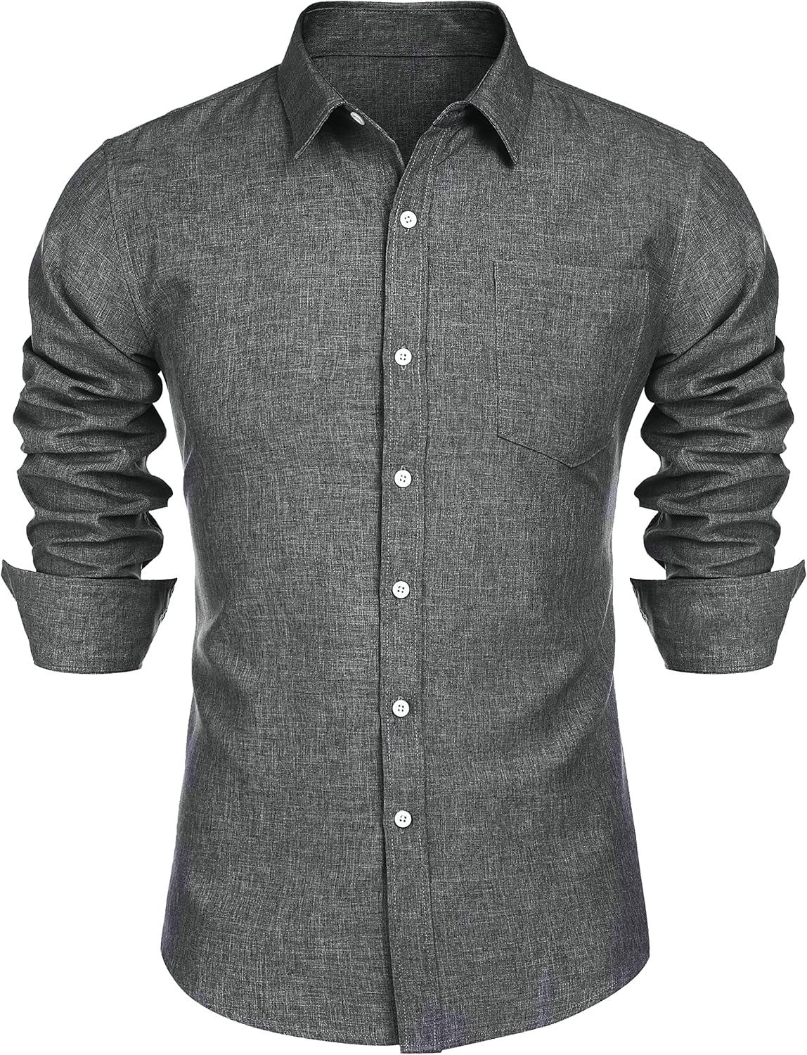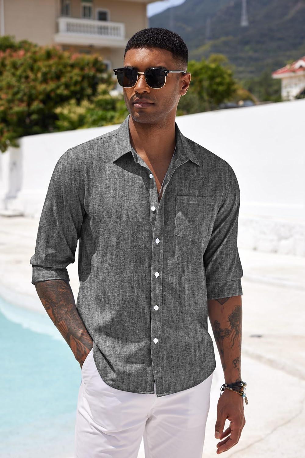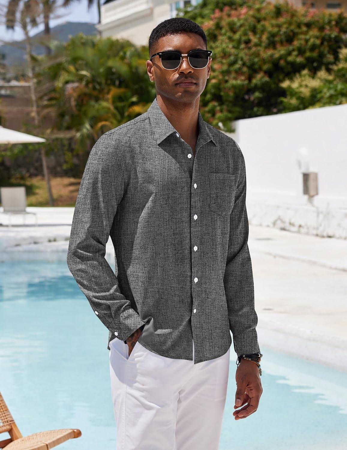 COOFANDY Mens Button Down Shirts Short Sleeve Casual Summer Beach Shirts for Men Vacation Wedding Linen Shirt(Dark Grey)