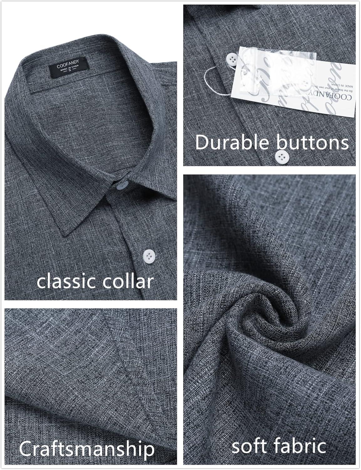 COOFANDY Mens Button Down Shirts Short Sleeve Casual Summer Beach Shirts for Men Vacation Wedding Linen Shirt(Dark Gray)