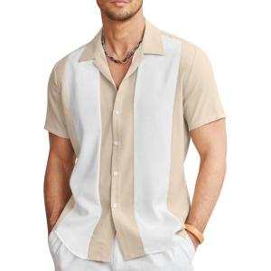 COOFANDY Mens Button Down Shirts Short Sleeve Casual Summer Beach Shirts for Men Vacation Wedding Linen Shirt(Khaki White)