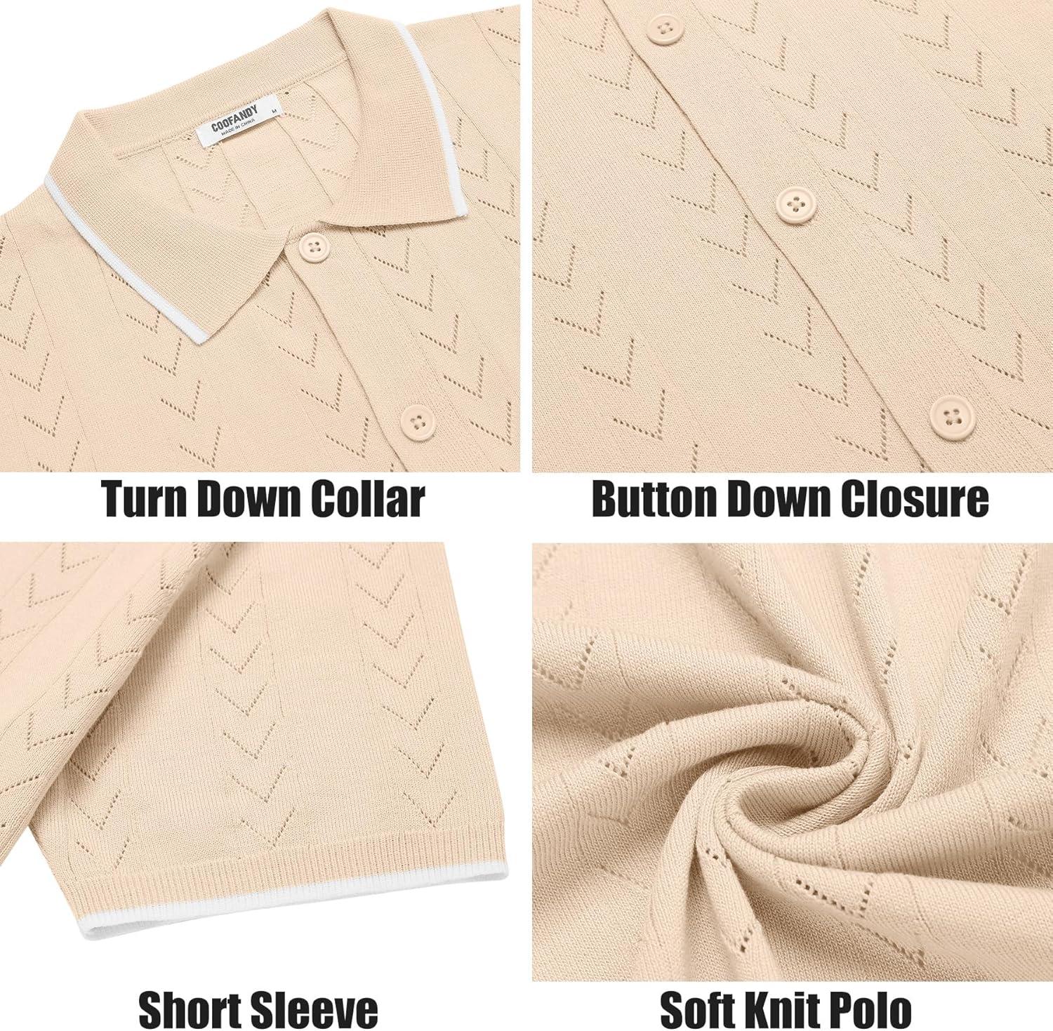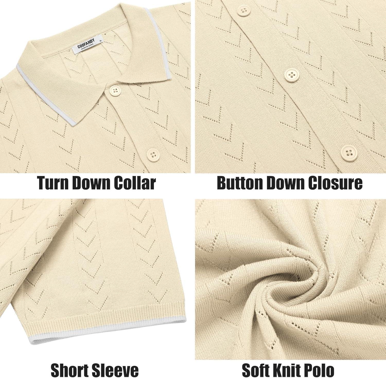 COOFANDY Mens Knit Polo Shirts Button Down Short Sleeve Shirt Summer Casual Beach Vacation Tops(Cream)