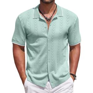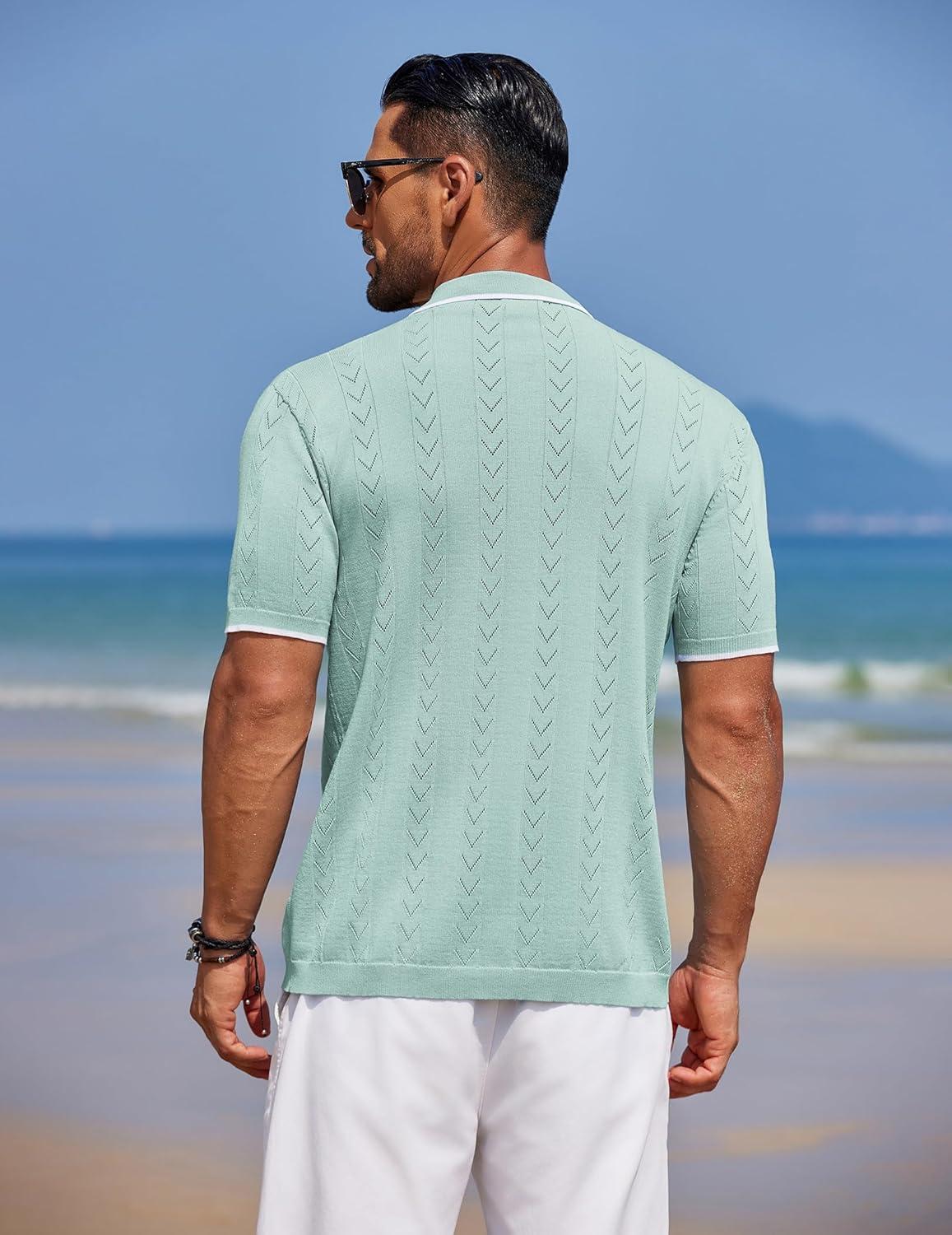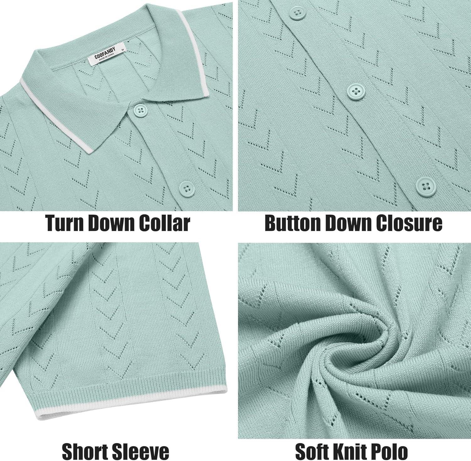 COOFANDY Mens Knit Polo Shirts Button Down Short Sleeve Shirt Summer Casual Beach Vacation Tops(Light Green)